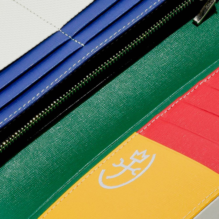 内装には細かいエンボス加工を施した牛革を使用し、カステルバジャックカラーである4色をインパクトのあるブロック状のコンビネーションで使用しています。