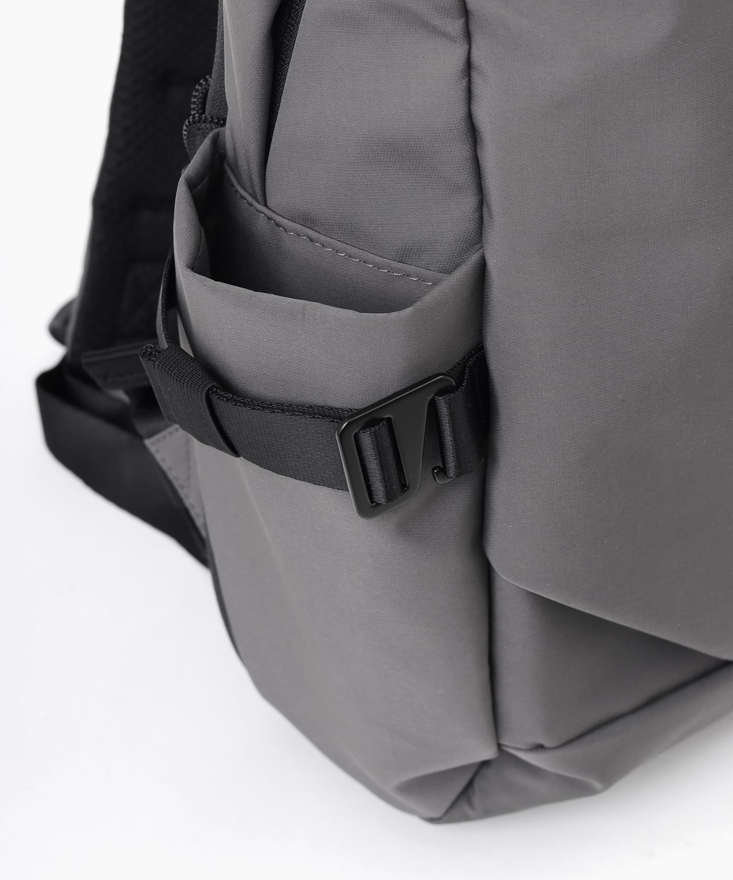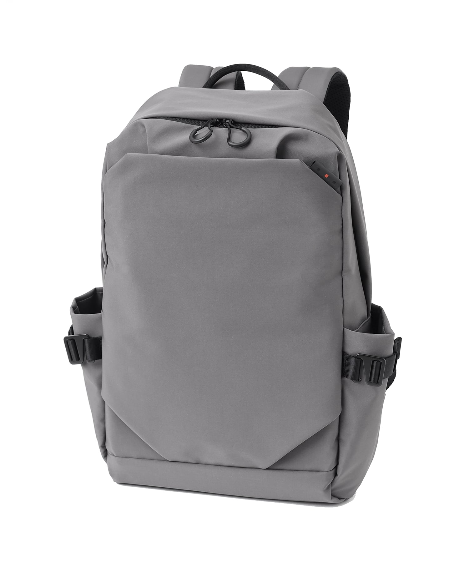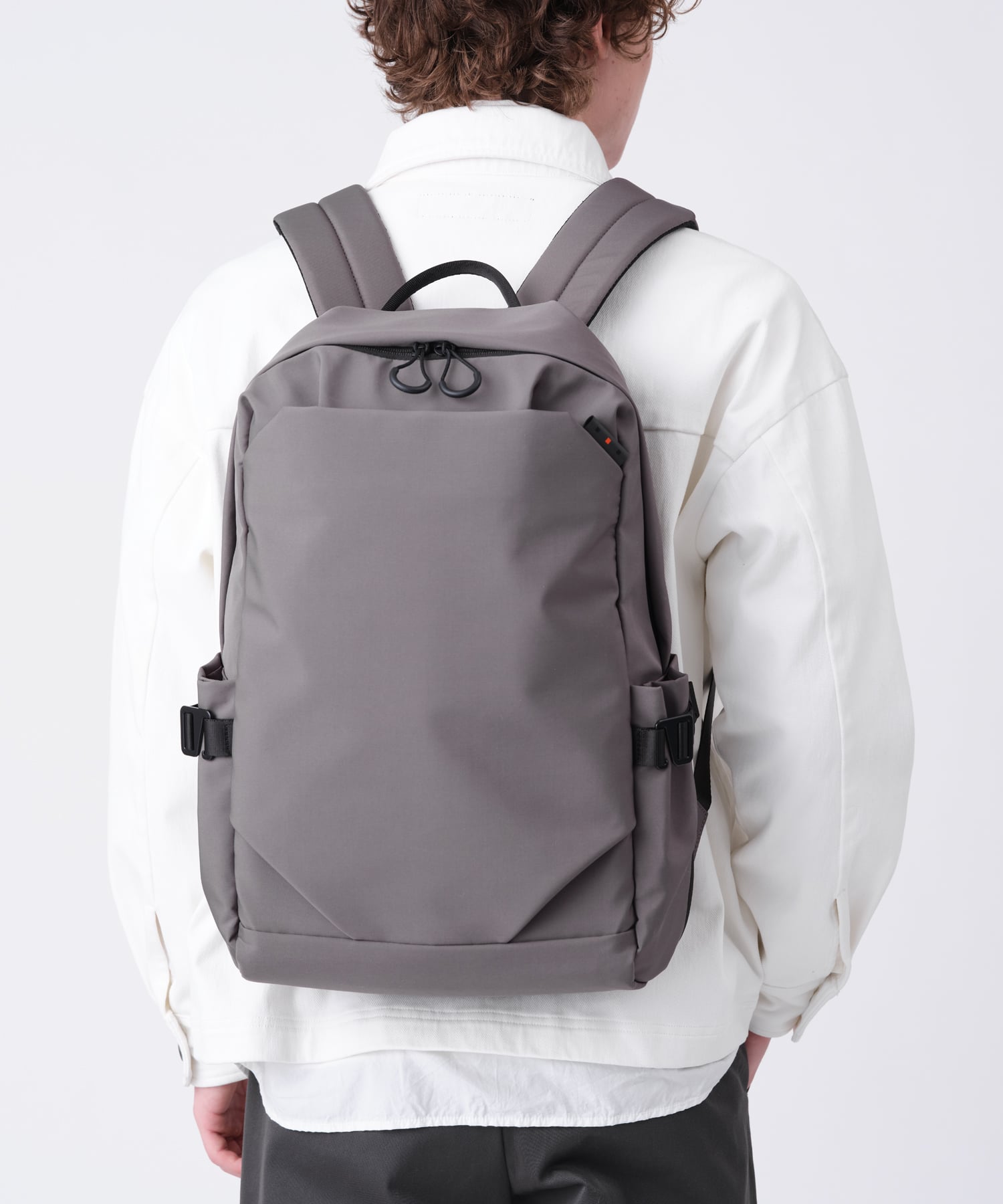 本体の素材には、撥水素材のシワになりにくく、ふんわりとした質感のポリエステルを使用しており、撥水性のあるコイルファスナーを採用しています。このため、雨の日でも安心してお使いいただけます。ソフトで軽やかな印象を保ちながら、ステッチなどの装飾を表に出さず、シンプルで洗練されたデザインに仕上げています。立体的なフォルムと、シンプルながらも優れた機能性を兼ね備えたこのリュックは、日常使いにぴったりのカジュアルなアイテムです。