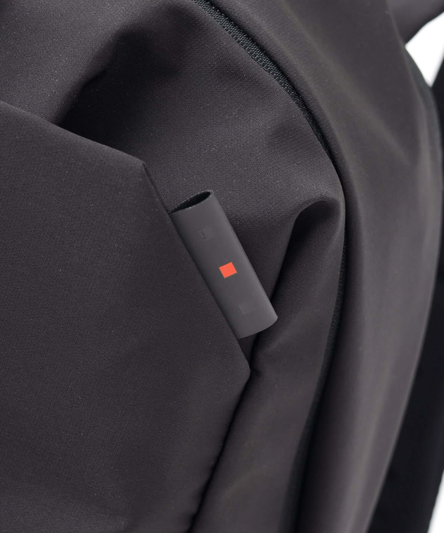 リュックのベルト部分には、スマートフォンがぴったりと収まるサイズのスマホポーチが付属しています。服のポケットにスマートフォンを入れておくのは不安だけど、リュックの中にしまってしまうとすぐに取り出すのが難しい…そんな悩みを解消するのがこのポーチです。カラビナを使用しており、簡単に着脱ができるため、使い勝手も抜群です。さらに、ポーチがぶらつかないように、背面にはマジックテープが備わっており、ショルダーベルトにしっかりと巻きつけることができます。この工夫により、移動中でもスマートフォンをスムーズに取り出せるようになります。
