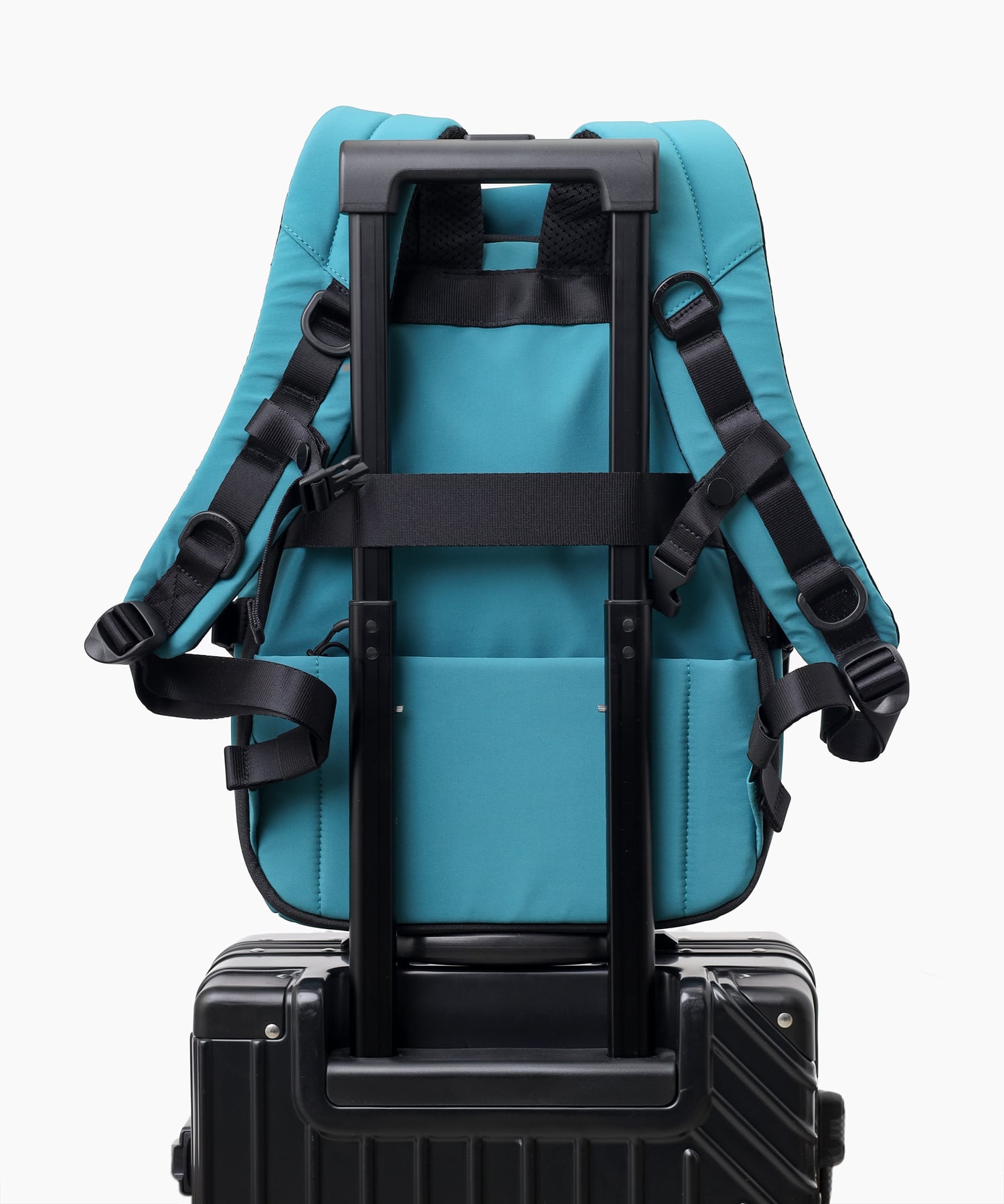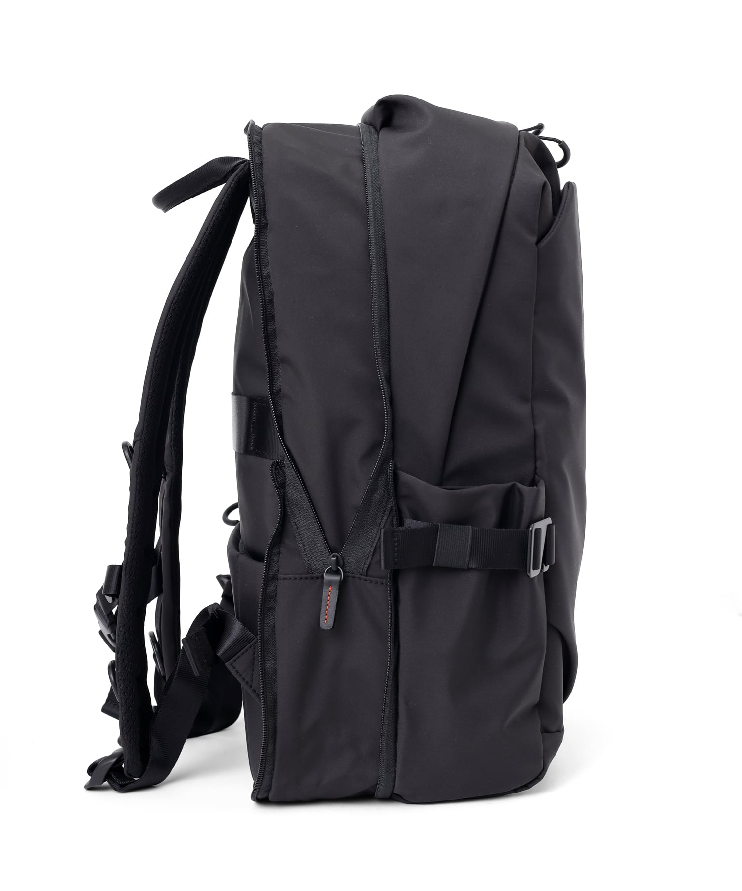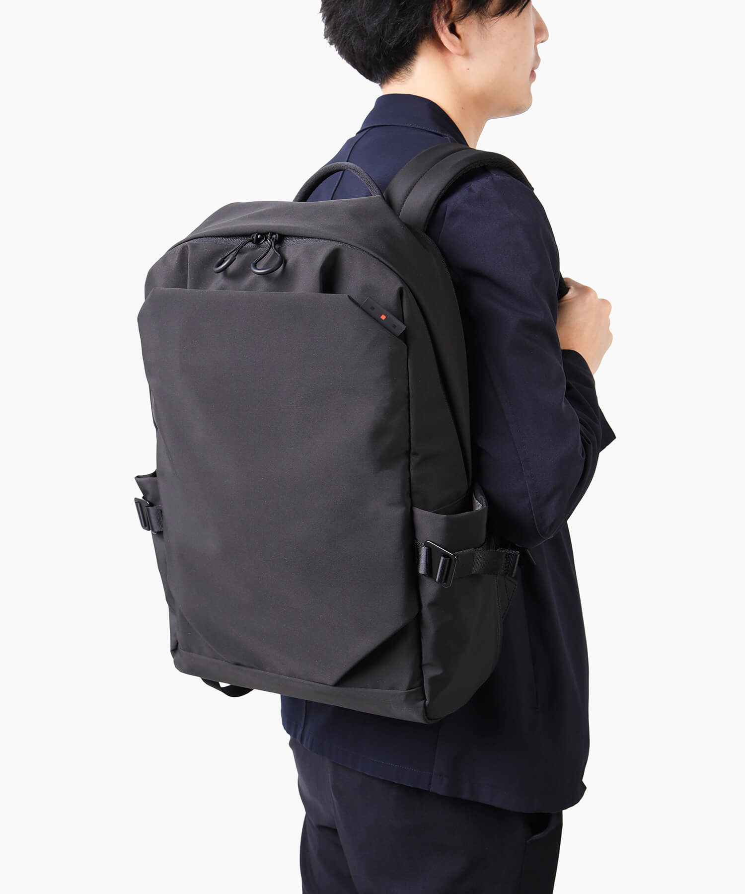 このリュックは、必要な物がすぐに取り出せるよう、外側に充実したポケットを配置しています。これにより、頻繁に使用するアイテムを手軽に取り出すことができ、非常に便利です。また、体にフィットするように設計されたチェストベルトも搭載されており、移動中にリュックがぶれることを防ぎ、快適な使用感を提供します。さらに、背面にはキャリーオン機能対応のベルトが装備されており、ビジネスシーンでの出張や旅行時にも活躍する、多機能で実用的なリュックです。
