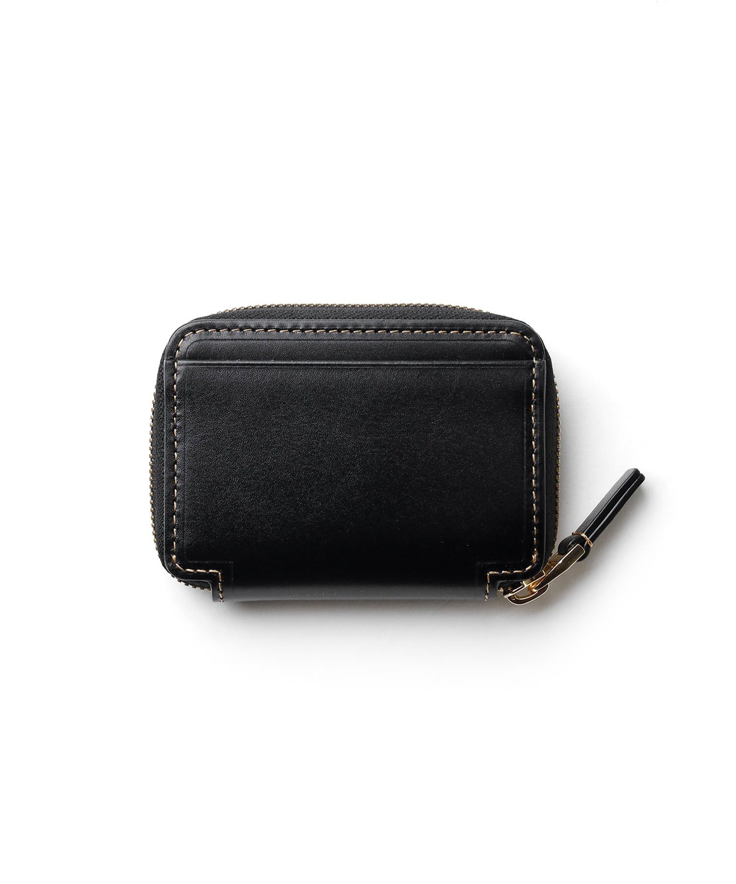 本体には、ヘビタンでじっくりと鞣された密度の高いスムースレザーを使用。タンナー独自の特殊な製法により、顔料のような人工的な光沢ではなく、自然で上質な艶感を実現しています。断面に繊細な傾斜をつけた極小サイズのゴールドブローチは、控えめながらも存在感のある輝きを放ち、太番手のステッチが全体を美しく引き締めます。