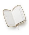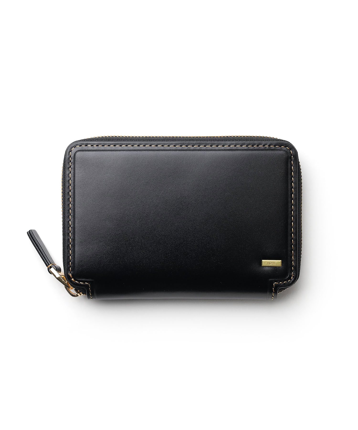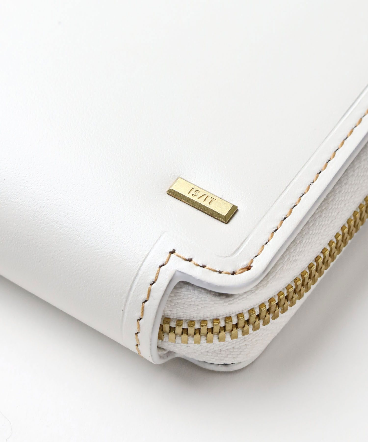 シャープで上品な艶感が魅力のスムースレザーを使用した、高級感あふれるイズイットのセミ長財布。自然で上質な艶をまとった革は、持つ人の品格を引き立てます。ゴールドのミニブローチがアクセントとなり、シンプルながらも華やかな印象を与えます。