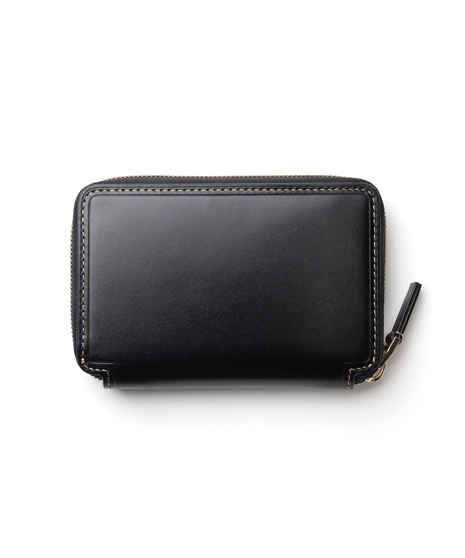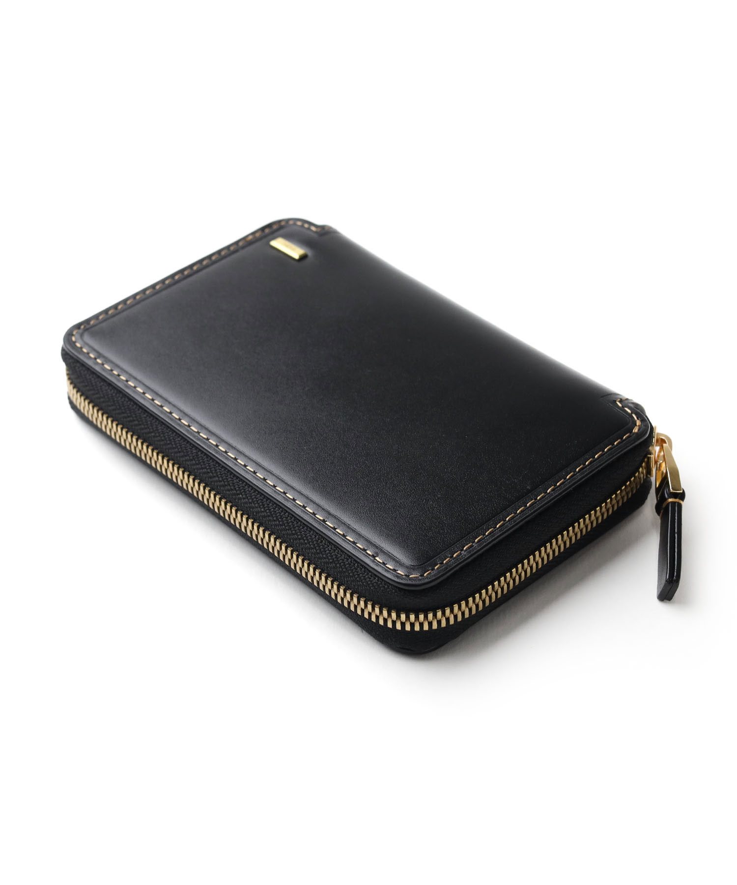 本体には、ヘビタンでじっくりと鞣された密度の高いスムースレザーを使用。タンナー独自の特殊な製法により、顔料のような人工的な光沢ではなく、自然で上質な艶感を実現しています。断面に繊細な傾斜をつけた極小サイズのゴールドブローチは、控えめながらも存在感のある輝きを放ち、太番手のステッチが全体を美しく引き締めます。
