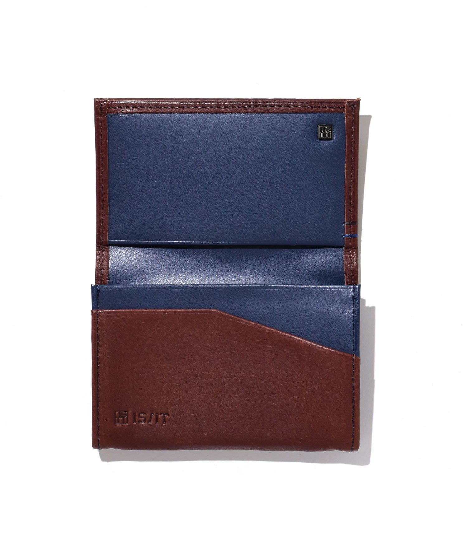 ソフトな質感を生かした作りのシンプルベーシックなイズイットの名刺入れです。カードなど中身を入れてもかさ張りにくく、手に馴染む風合いが魅力です。素材感の良さを生かし、あえて外側にブランドロゴを出さないベーシックなデザインは幅広い年代の方にお使いいただけます。
