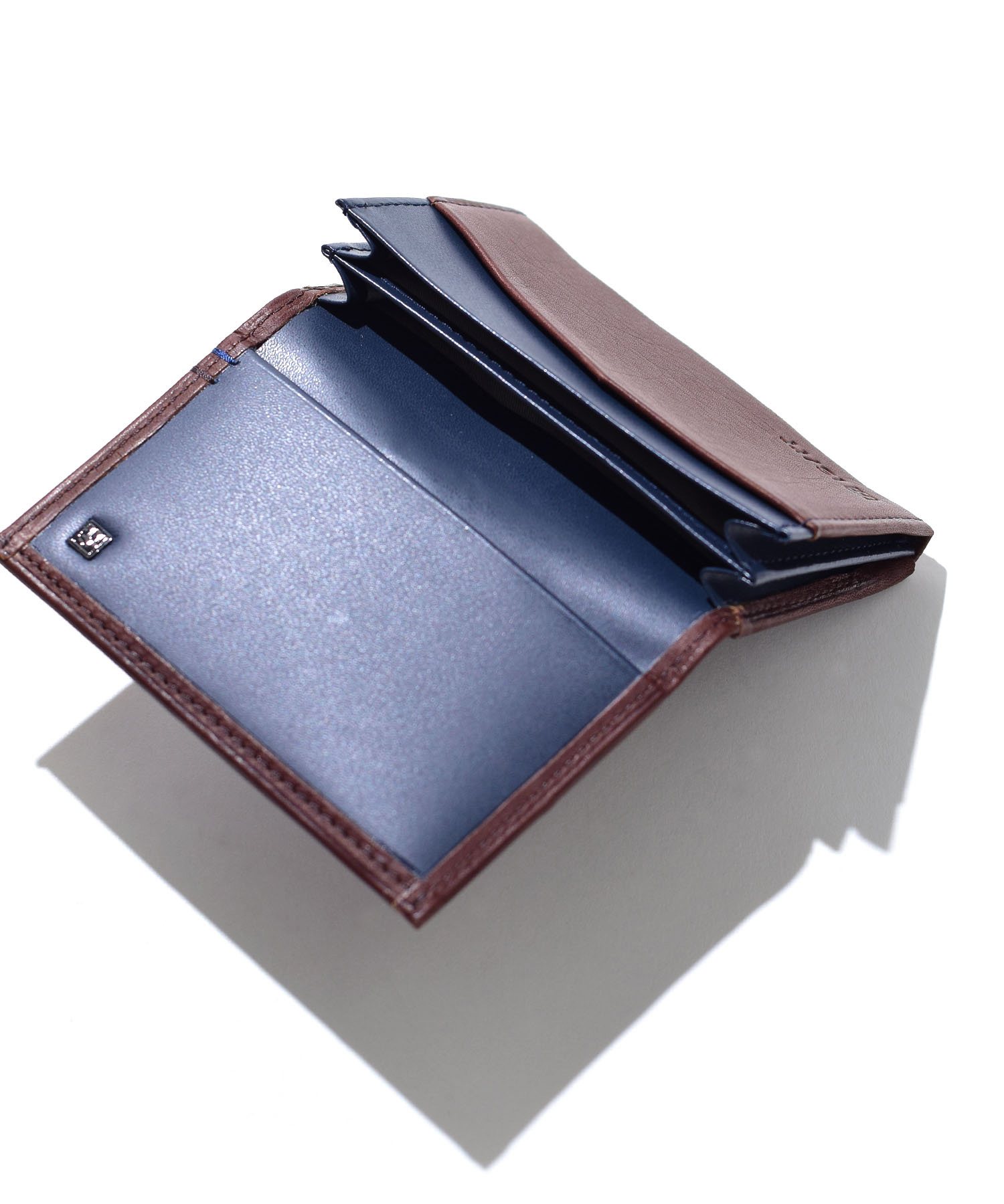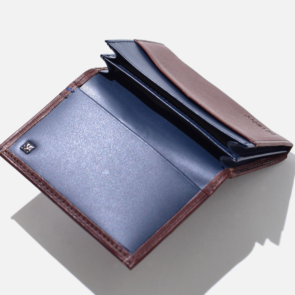 薄マチでコンパクトな名刺入れ。メインルームは二層に分かれているため、種類別で収納可能です。背面とメインルームにそれぞれフリーポケットがあります。