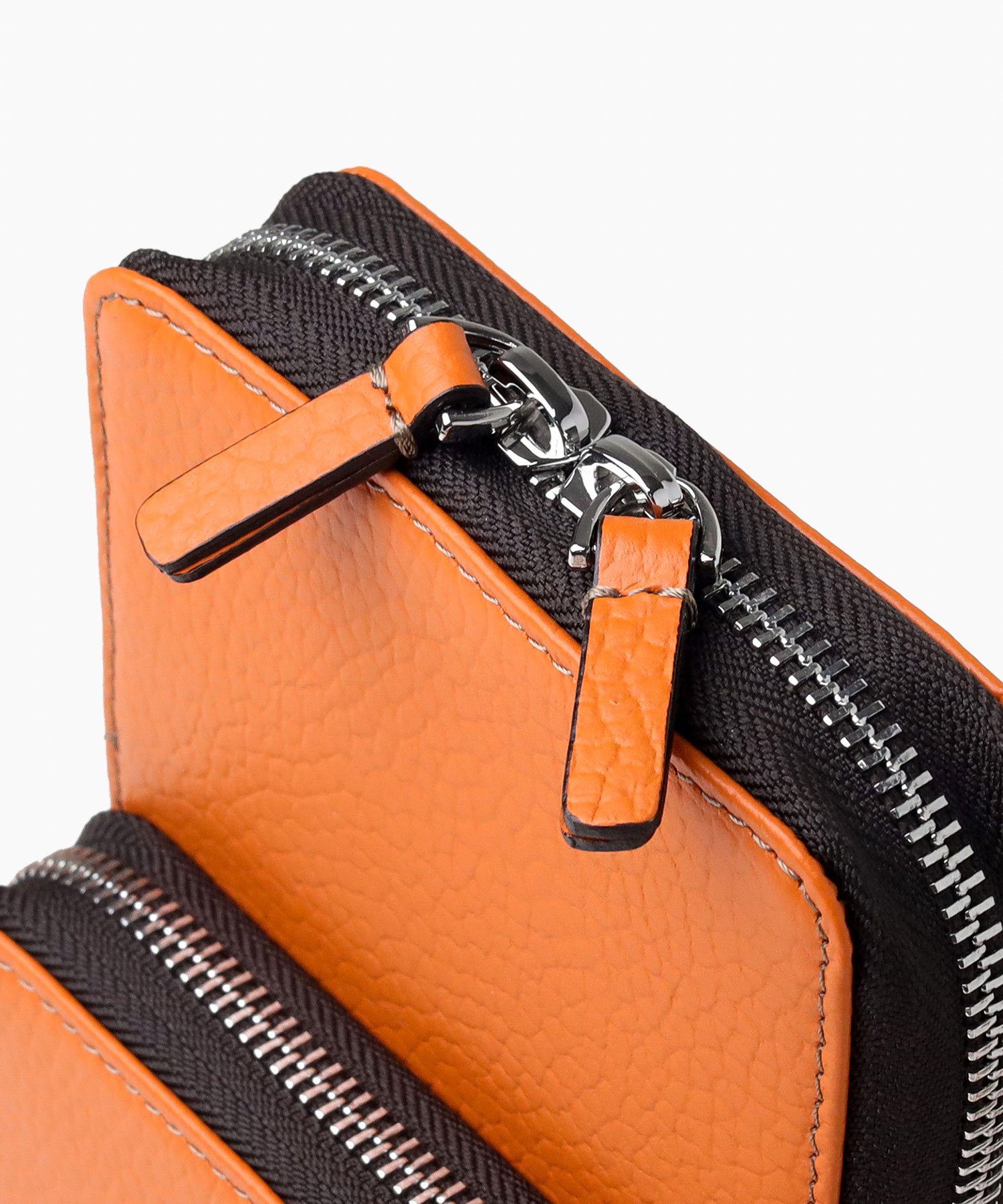 カードや小銭などが安心して収納できるお財布機能を搭載した、IS/ITのレザースマホショルダーバッグです。これ1つでお出かけができるようにデザインされており、カード段や小銭を入れるファスナーポケットを備えています。スマートフォンを安全に収納するために、内装生地にはソフトな起毛素材を採用しています。身軽で出かけたい方やキャッシュレス派の方にもおすすめです。
