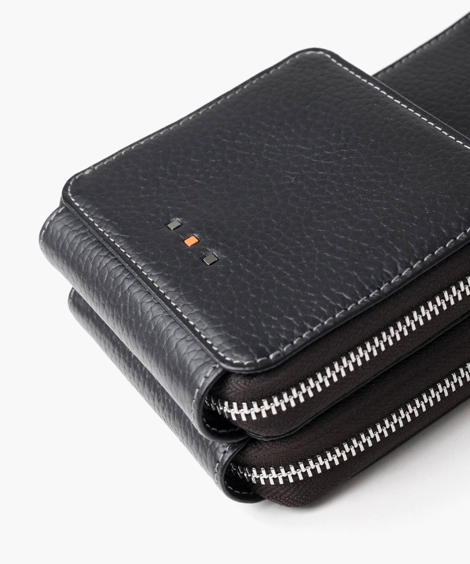 ナチュラルなエンボスシュリンクレザーながらも、高温・高圧力のアイロン加工により、フラットでシャープなデザインに仕上げました。