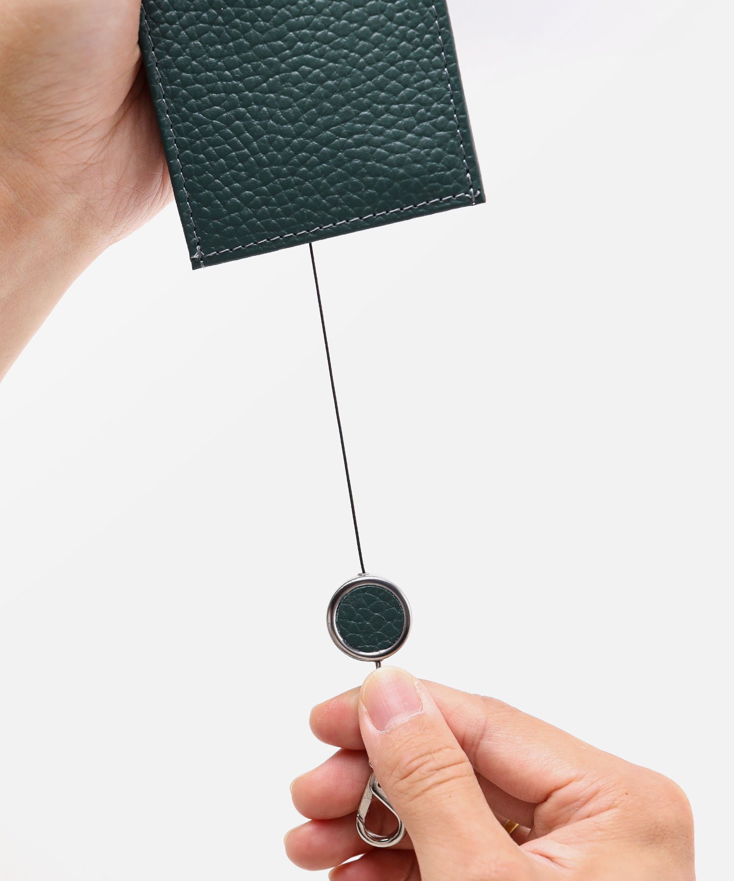パスケースを引っ張るとリール付きパスケース。キーリングを引っ張るとリール付きキーケース。2WAYでお使いいただけます。カードがきれいに入るサイズ感です。鞄などに着脱可能のため、改札を通る時や、お出かけ時にも手間取りません。様々なシーンで便利に活躍するアイテムです。