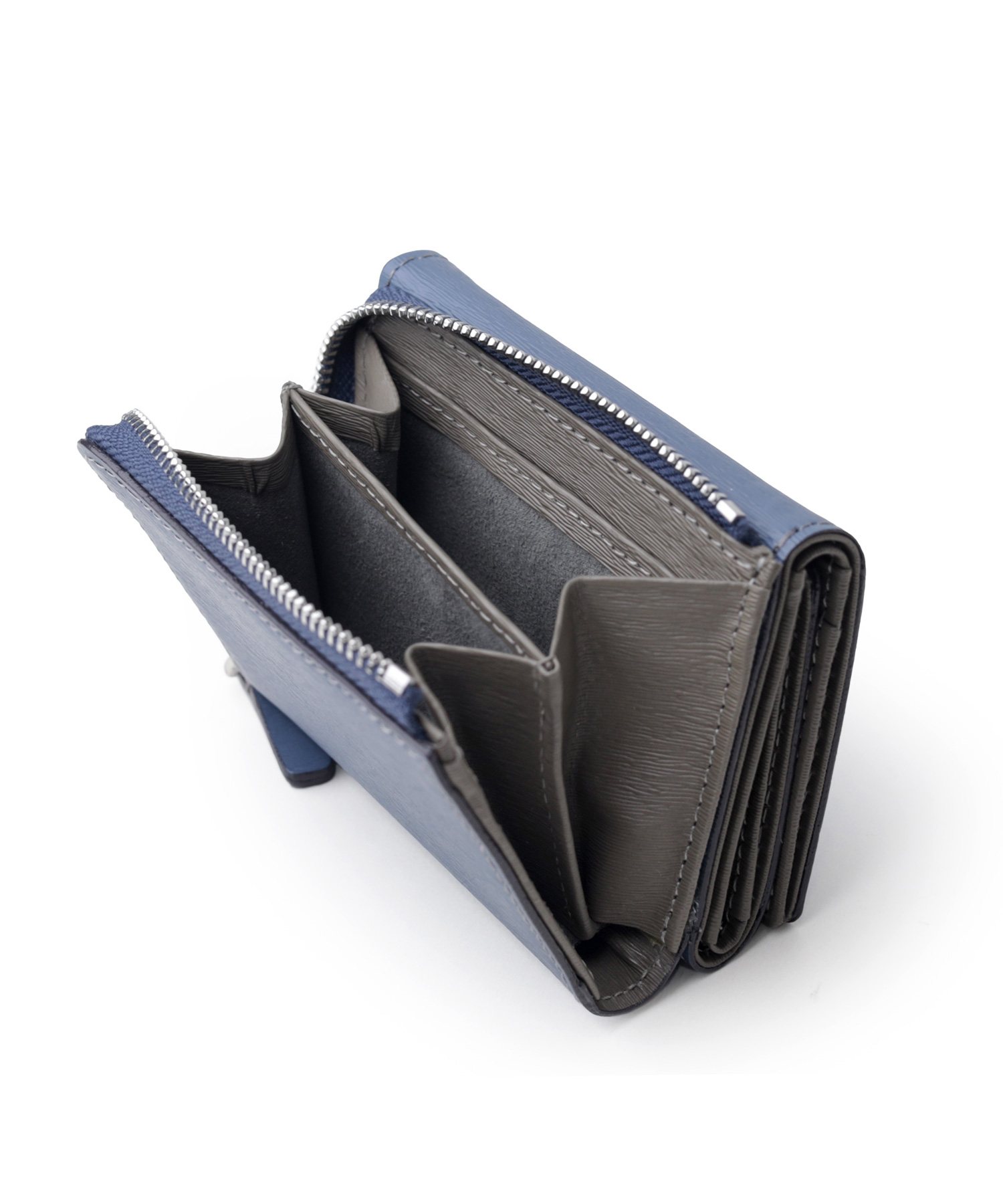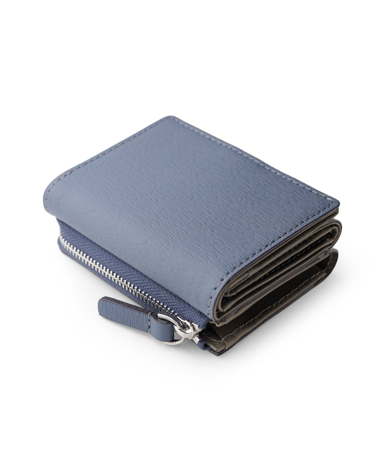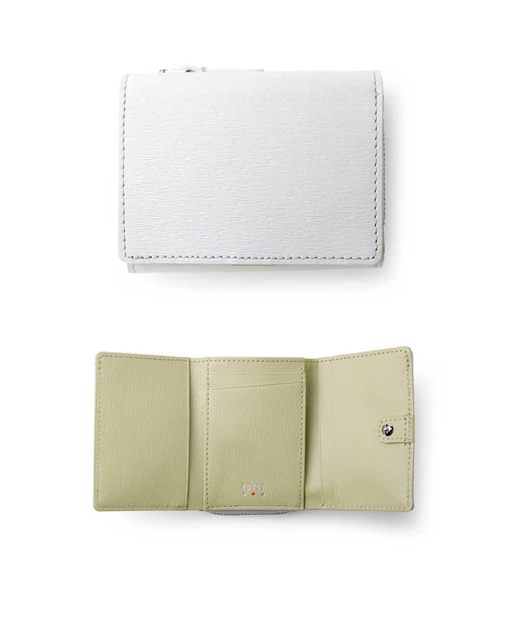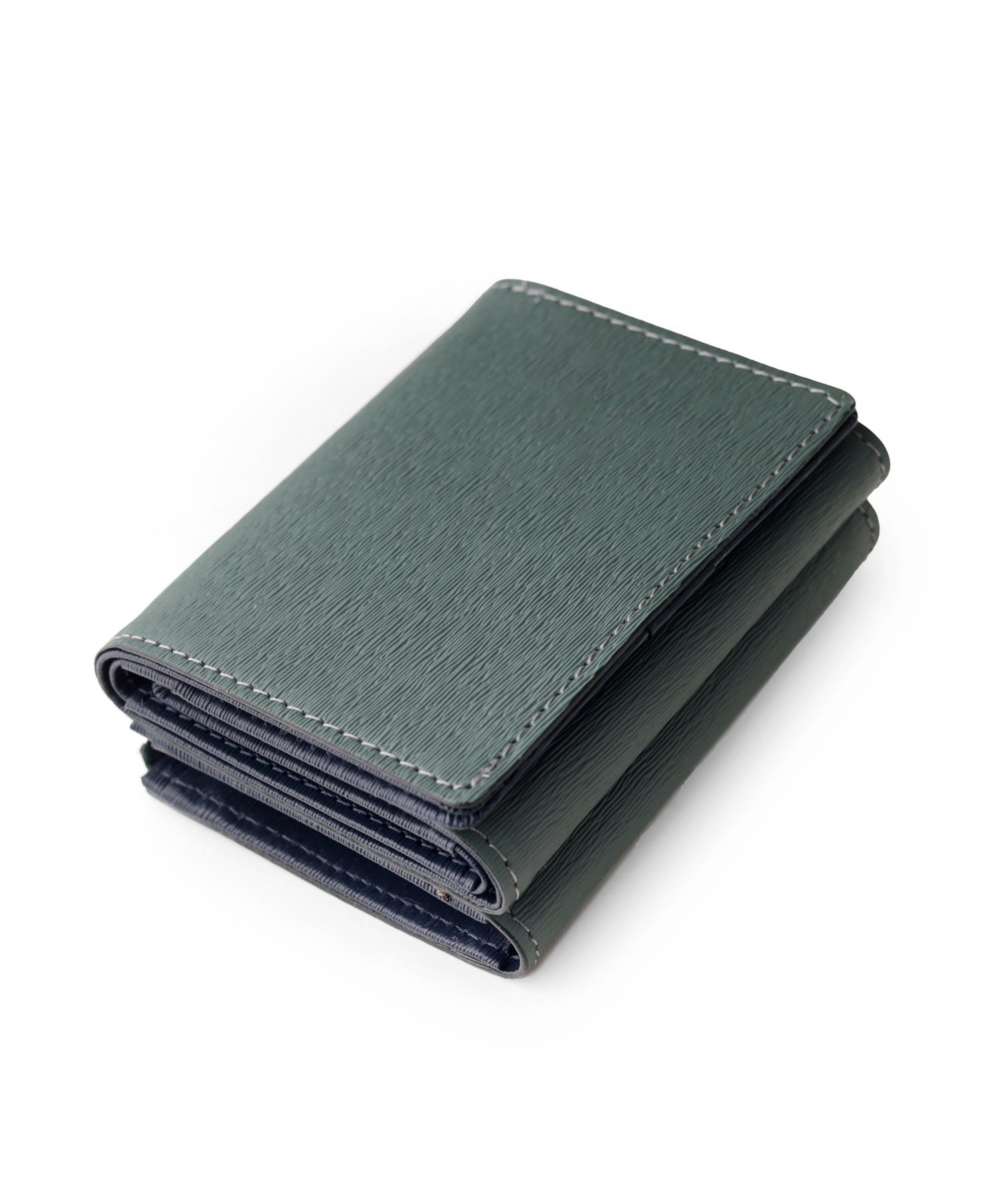 スモーキーなカラーコンビが魅力の三つ折り財布。エンボスレザーを贅沢に使用し、その特徴的な質感が際立ちます。さらに、優れた耐久性を持ち、傷が目立ちにくいので、長く愛用いただけます。ジェンダーレスなデザインとカラーコンビは、男女を問わず幅広い方にお楽しみいただけます。