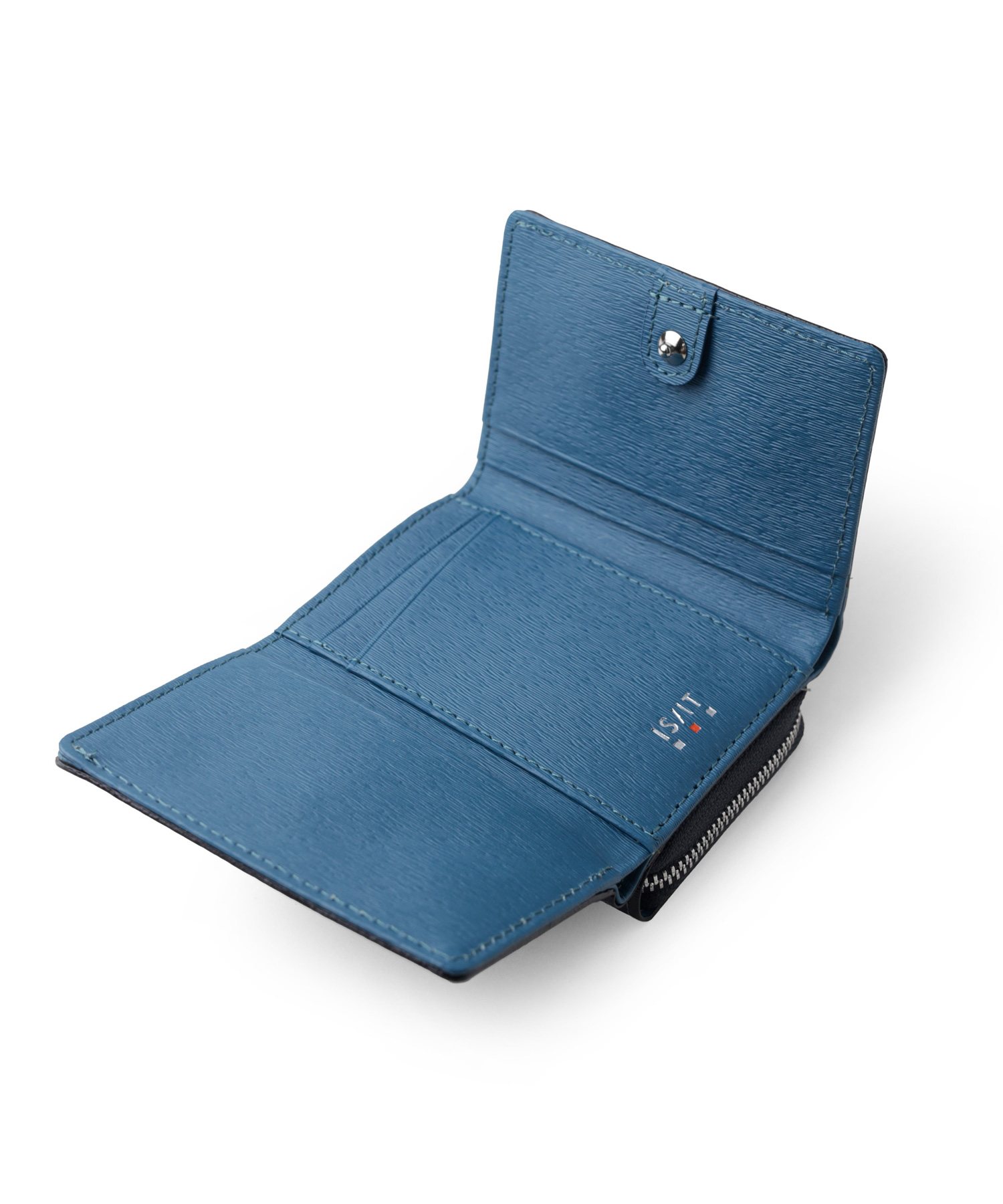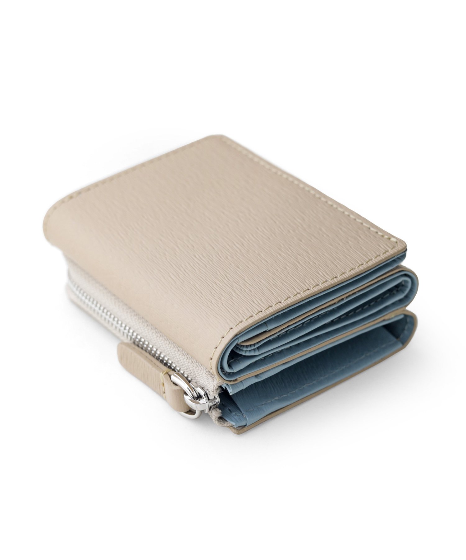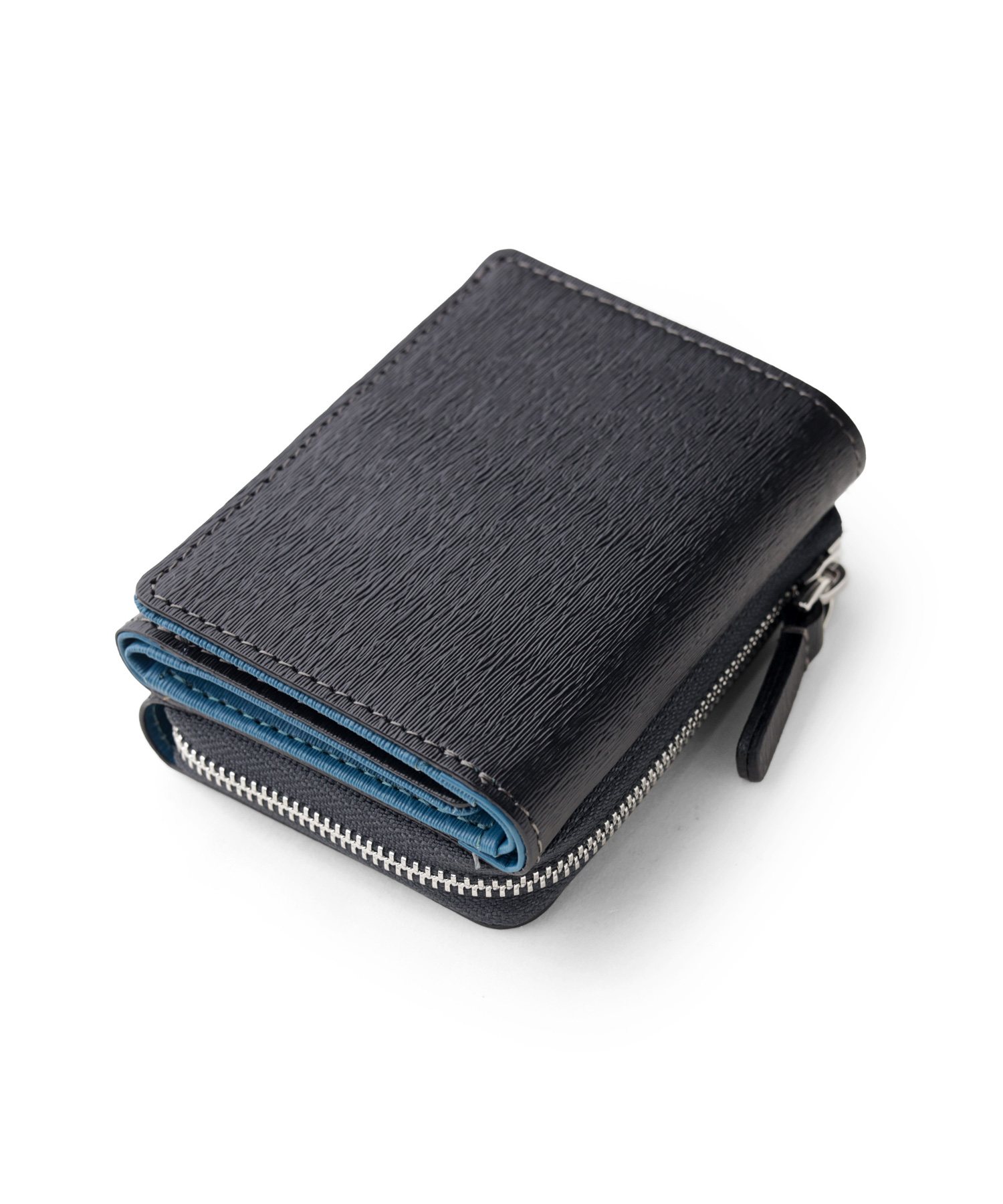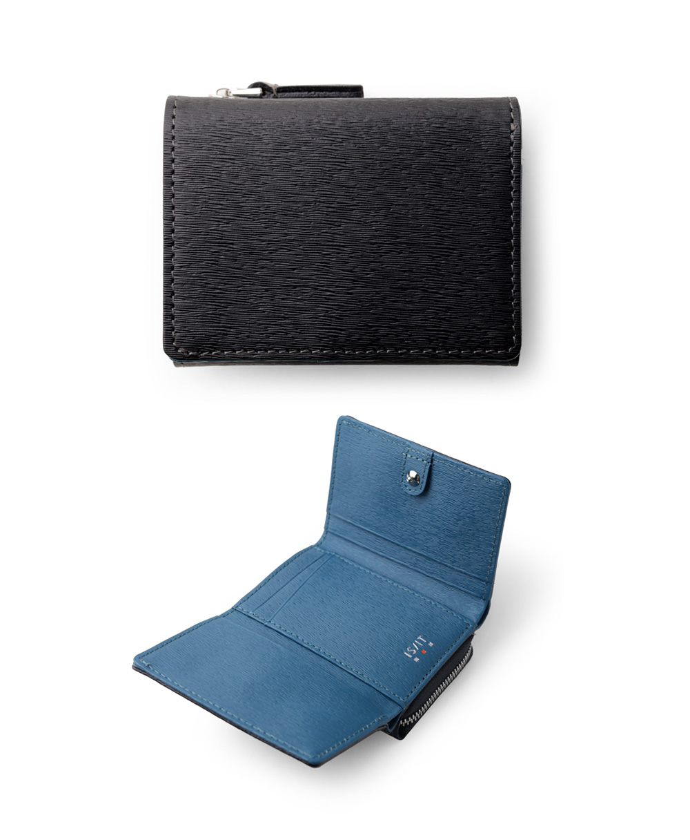 エンボスレザーを使用 カラーコンビが魅力の三つ折り財布