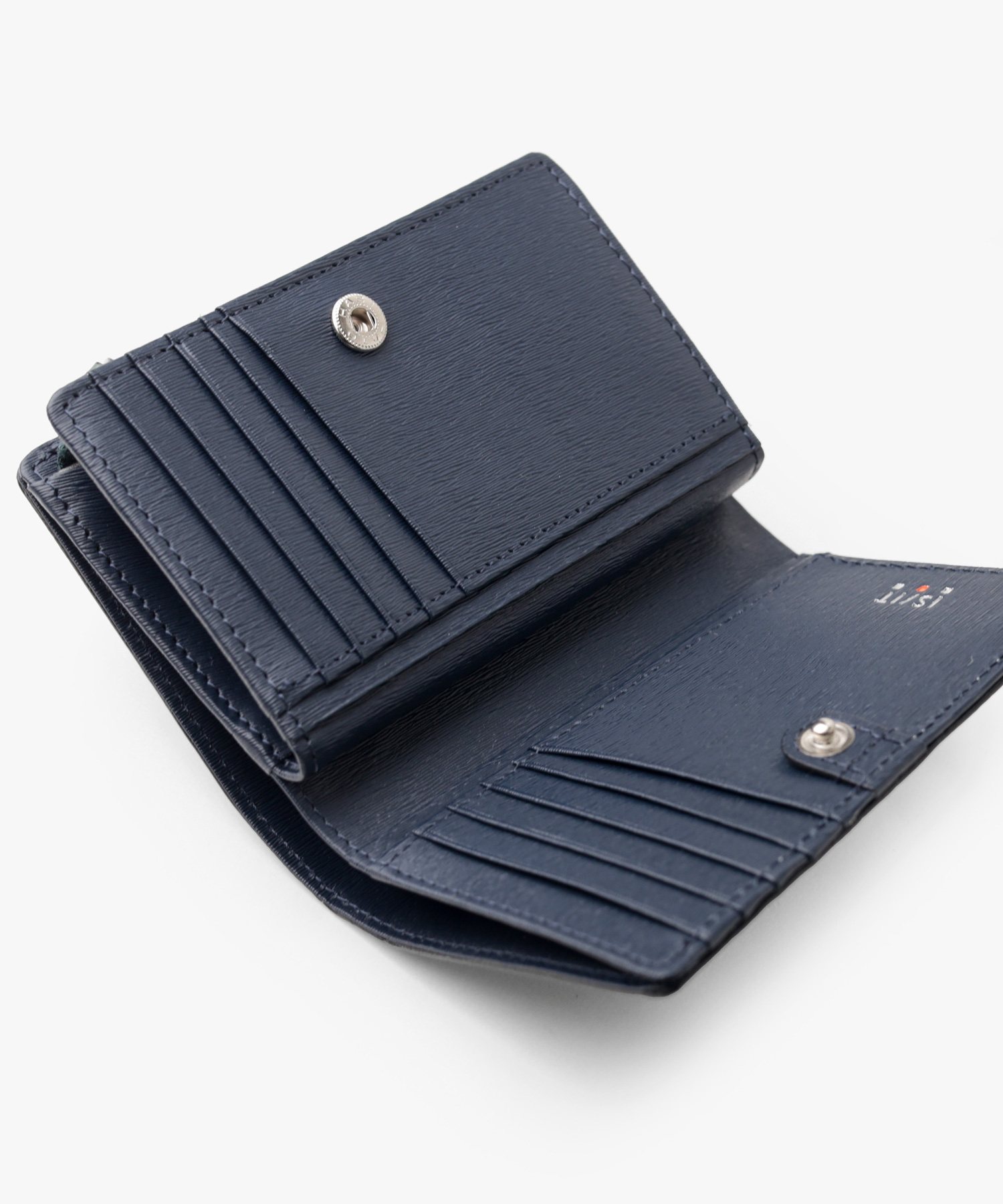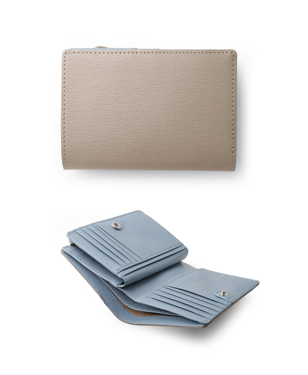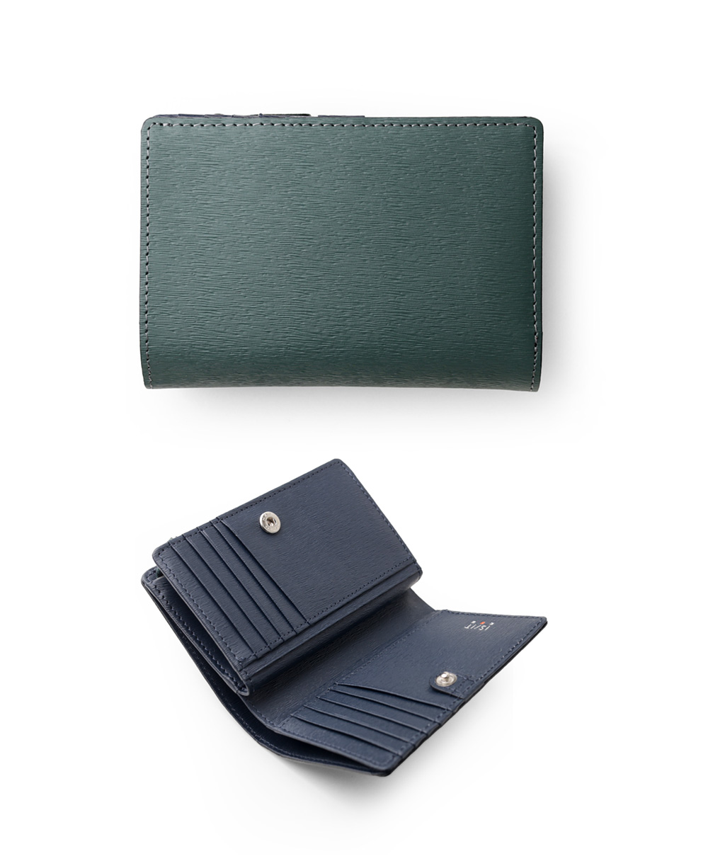 エンボスレザーを使用 カラーコンビが魅力の二つ折り財布