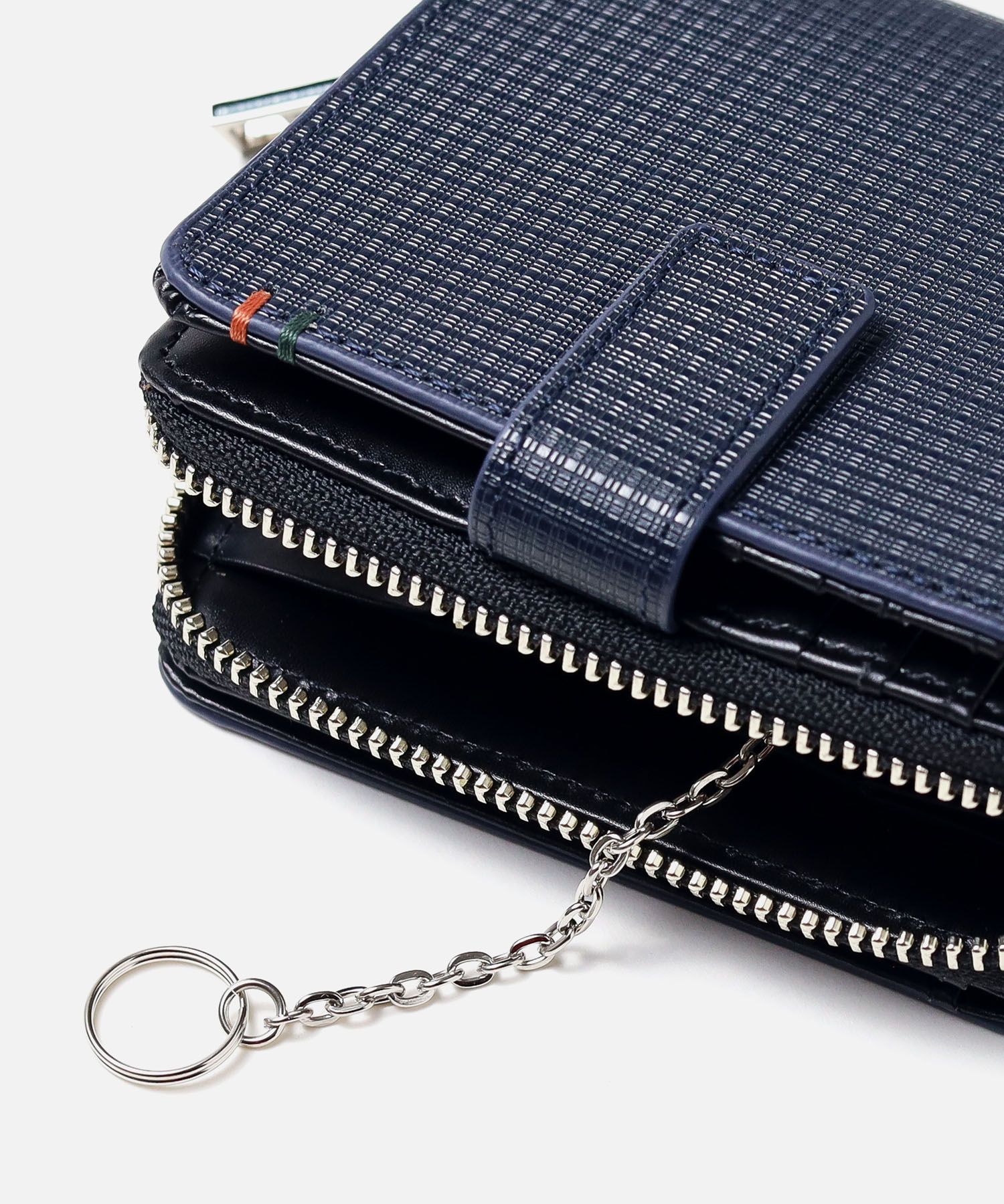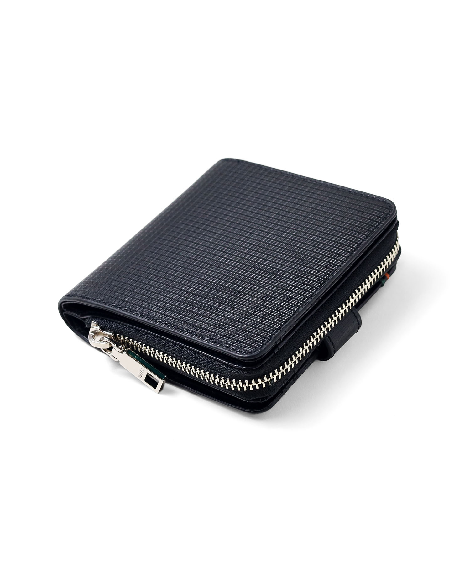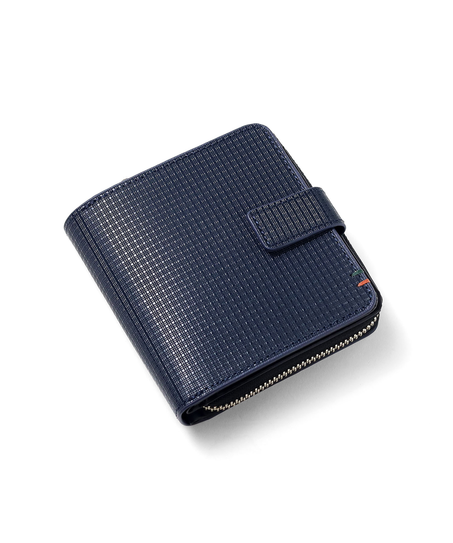 エンボス加工で表現した「ピンチェック」柄に、プラスアルファの機能を設けることで、デザイン・機能性共に使いやすいIS/ITの二つ折り財布です。二つ折り財布には珍しい3室構造になっており、カードだけでなく小銭も十分収納できますので、現金派だけど長財布は大きいと思う方にぴったりです。
