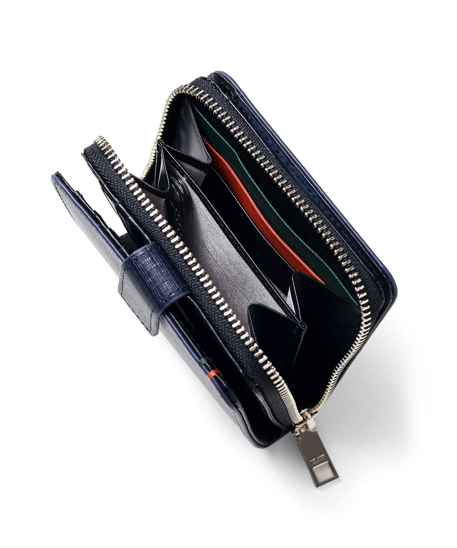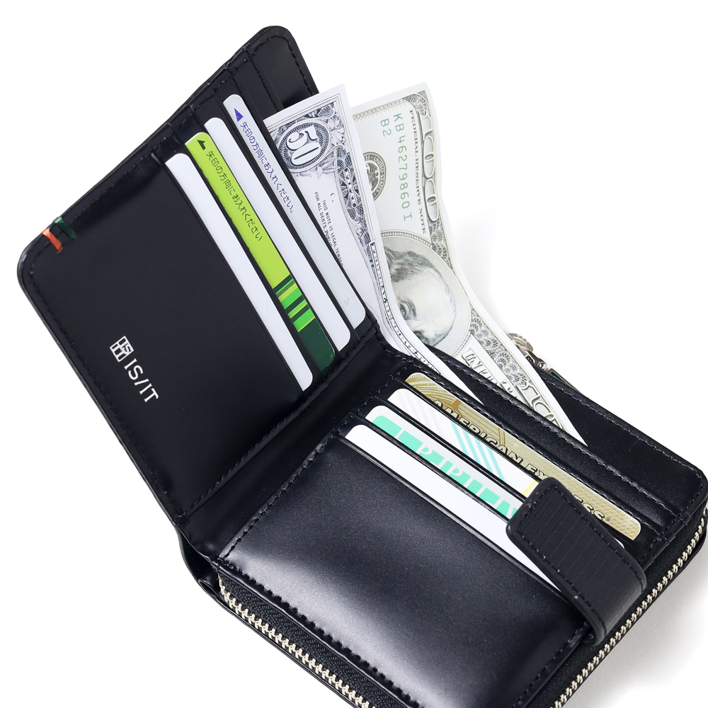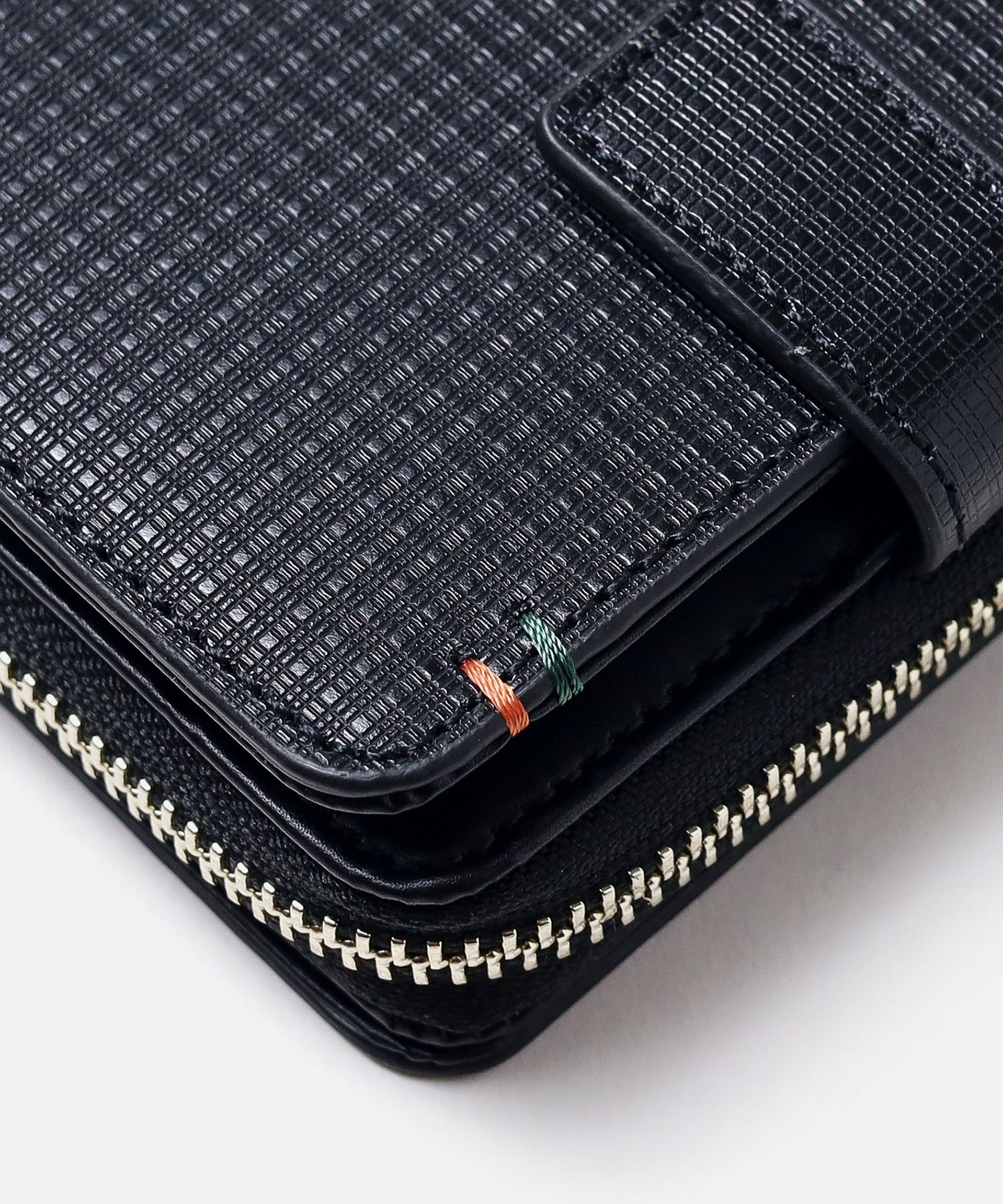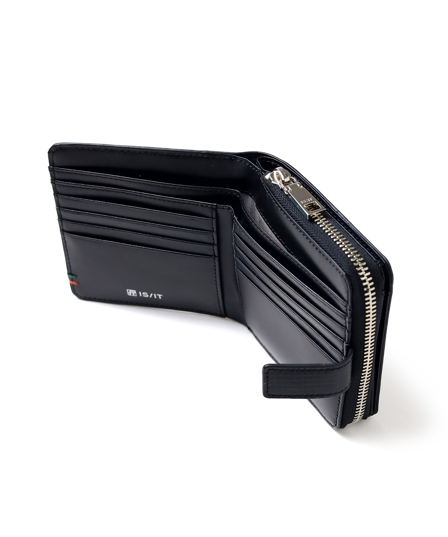 エンボス加工で表現した「ピンチェック」柄に、プラスアルファの機能を設けることで、デザイン・機能性共に使いやすいIS/ITの二つ折り財布です。二つ折り財布には珍しい3室構造になっており、カードだけでなく小銭も十分収納できますので、現金派だけど長財布は大きいと思う方にぴったりです。