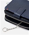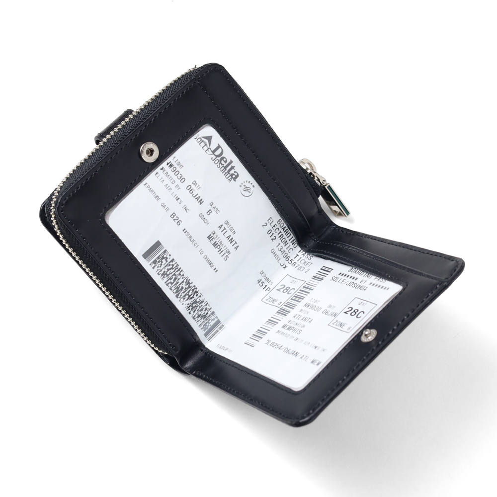 カード段 カード段が8段と多くのカードが収納可能です。札入れは2ルーム仕様になっているので、お札や領収書を分けて収納できます。 小銭入れ 小銭入れは仕切りがあるので小銭を分けて収納できます。さらにカード段が2段とキーチェーンが付いています。 窓付きポケット 窓付きのポケットには、チケットや搭乗券、乗車券の収納に便利な仕様になっております。透明になっているので財布から取り出さずともチケットの内容を確認することができます。