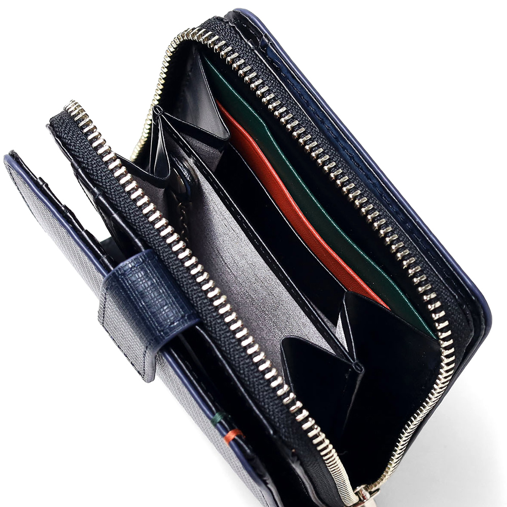 内装は3つの構造に分かれているので、より多くのカードや小銭を収納できます。更に、大きな窓付きポケットにはチケットなどの収納におすすめです。