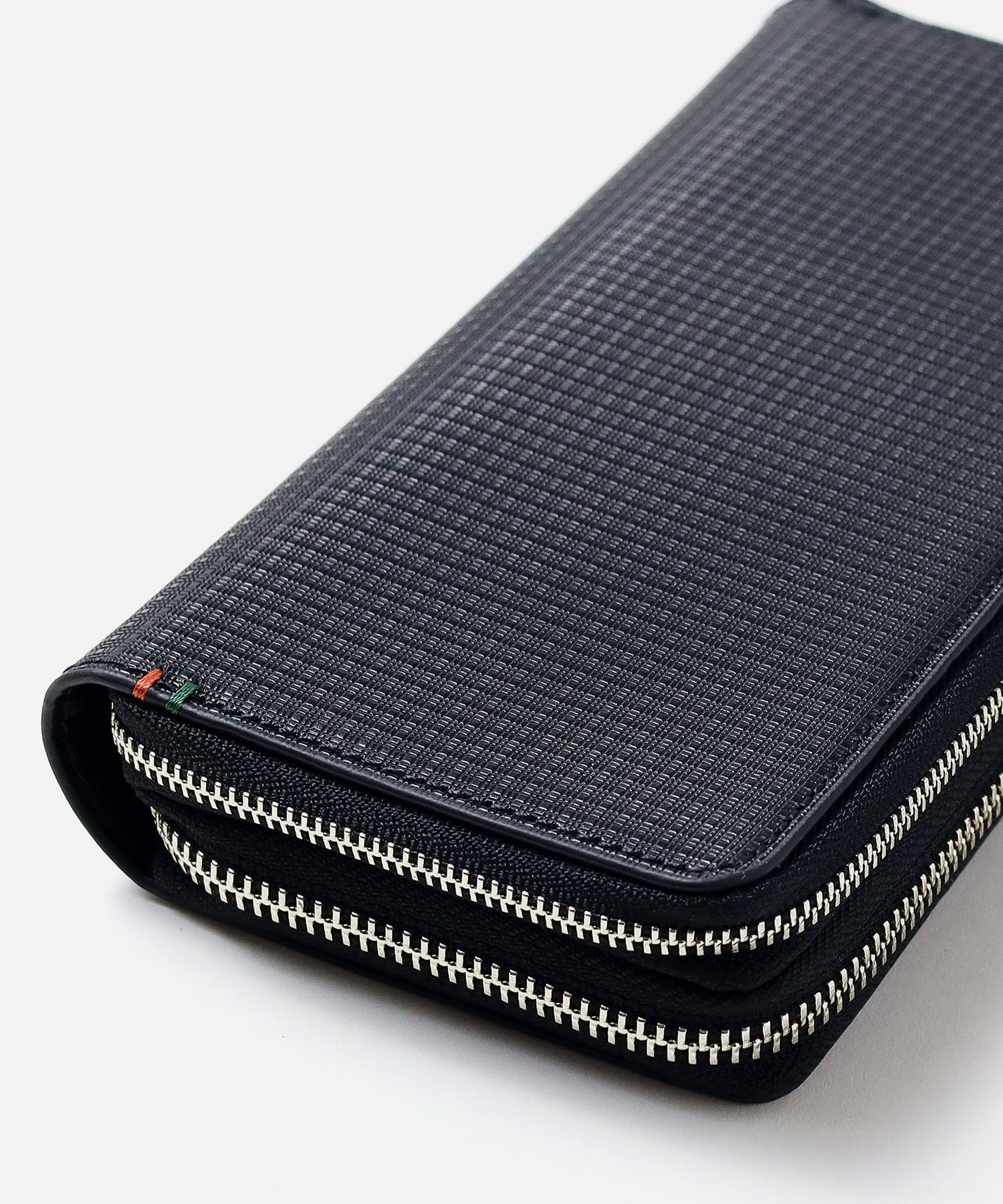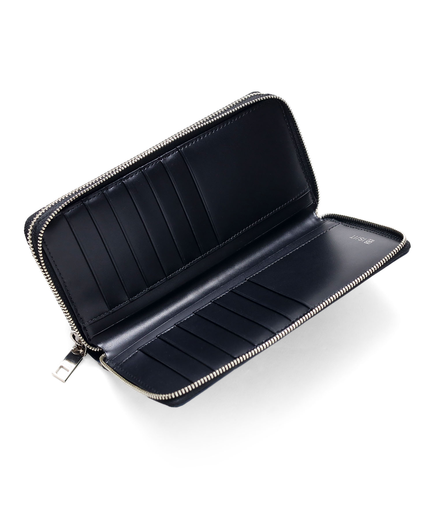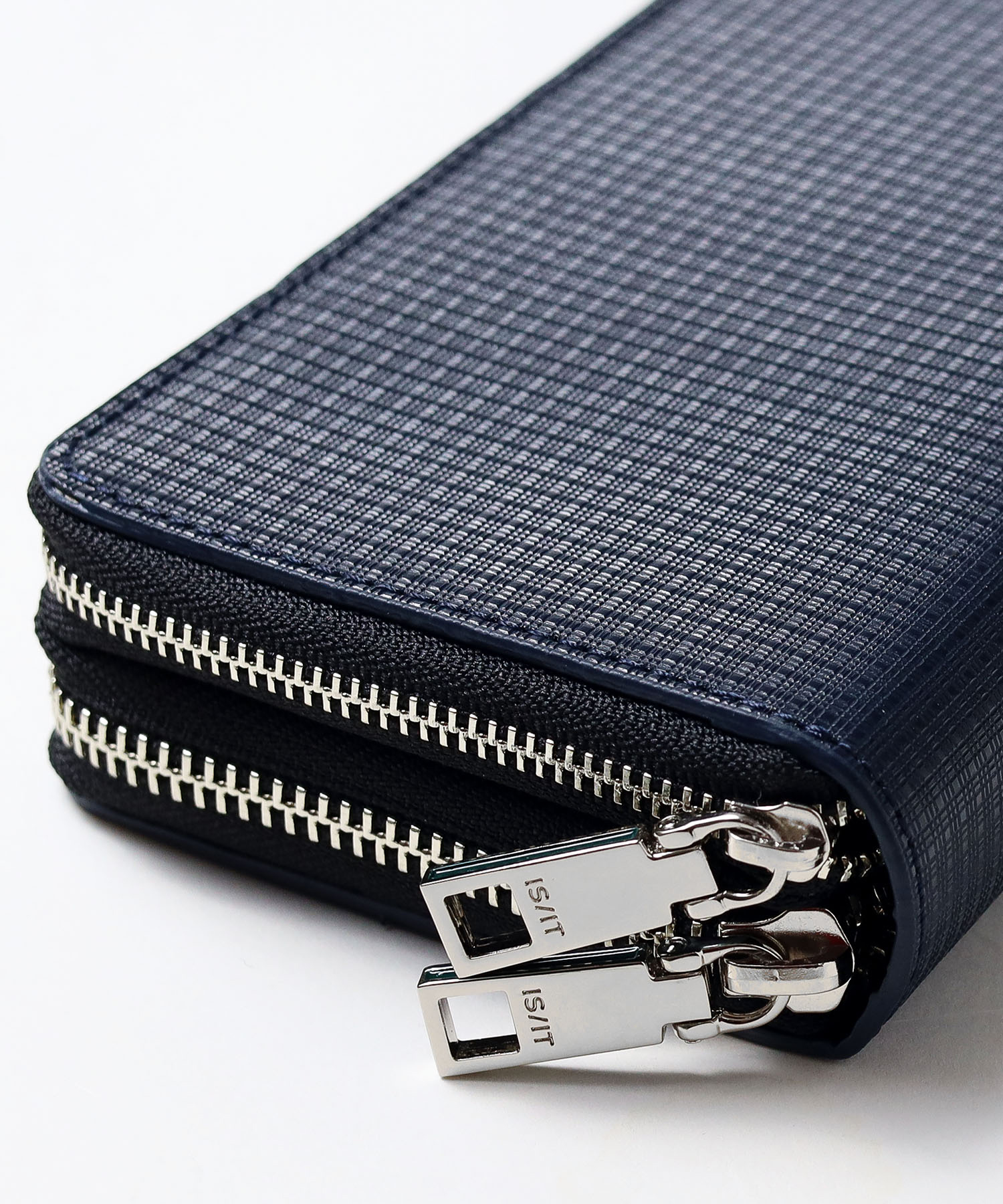 エンボス加工で表現した「ピンチェック」柄に、プラスアルファの機能を設けることで、デザイン・機能性共に使いやすいIS/ITのラウンドファスナー型長財布です。ダブルルーム仕様になっているので、より多くのカードが収納できます。カードが入りきらず、カードケースを別に持ち歩いている方に是非おすすめしたいお財布です。
