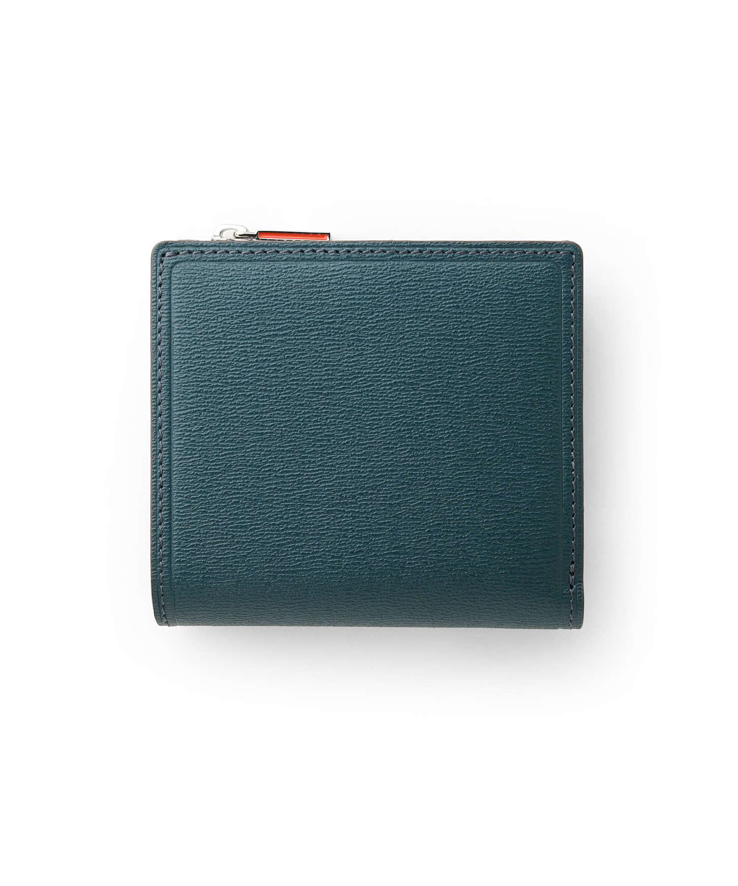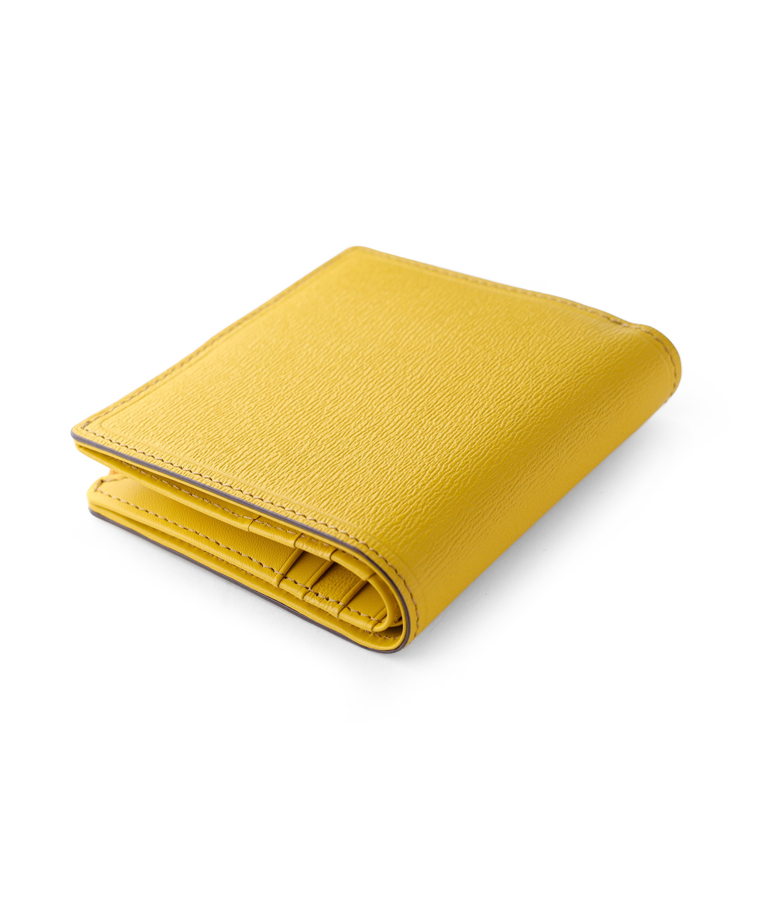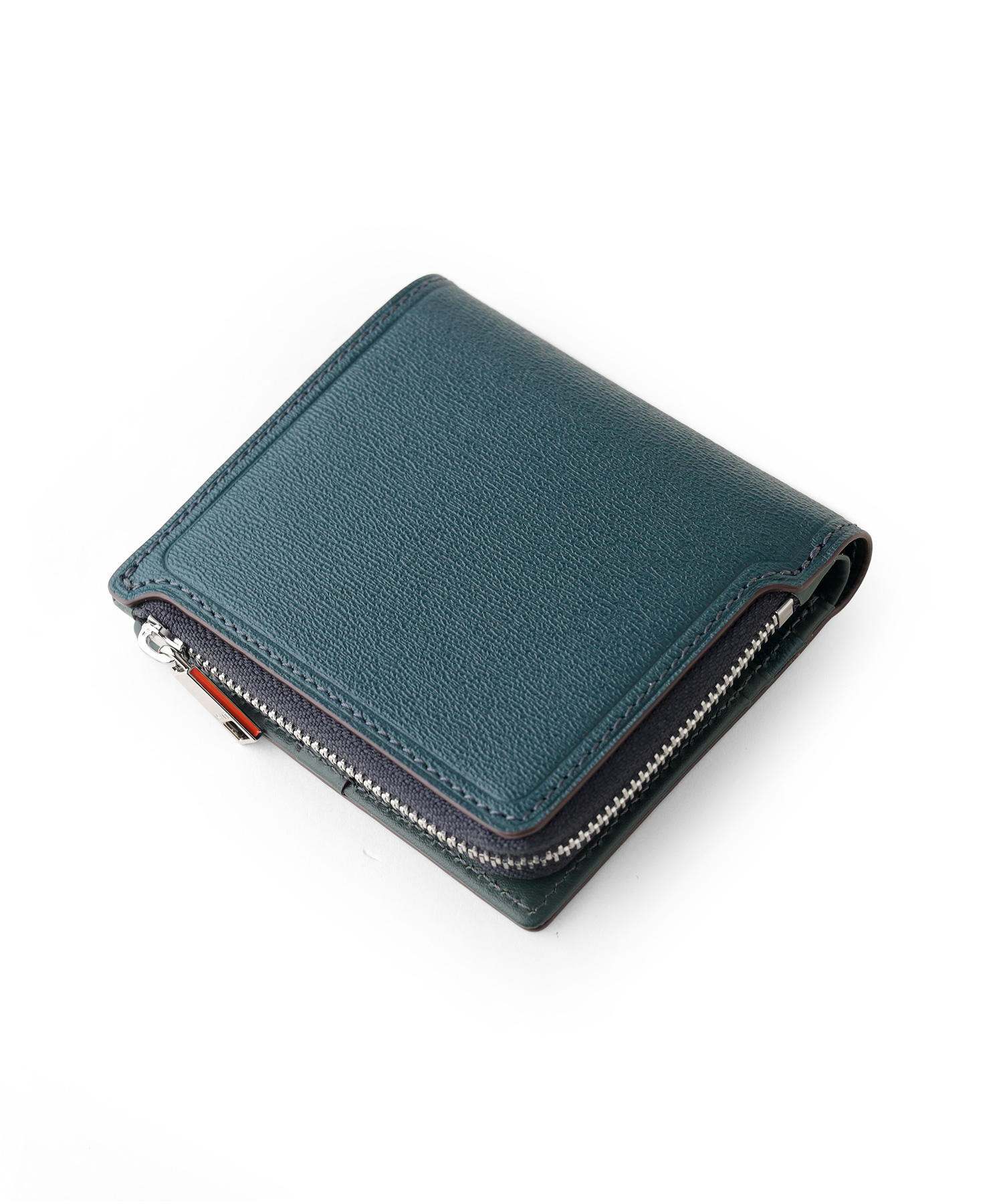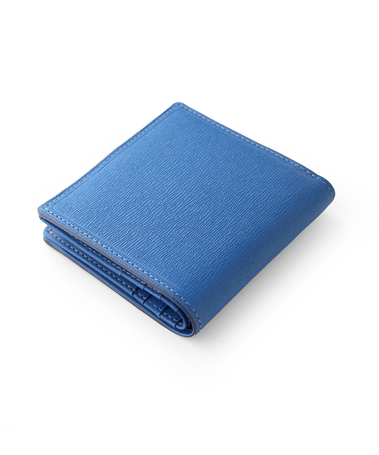 発色の美しいイタリアンレザーを参考にした、鮮やかなカラー展開が魅力のコンパクトなサイズ感の二つ折り財布。ジェンダーレスなデザインを意識し、個性的で汎用性の高いダブルエンボスレザーを使用しています。