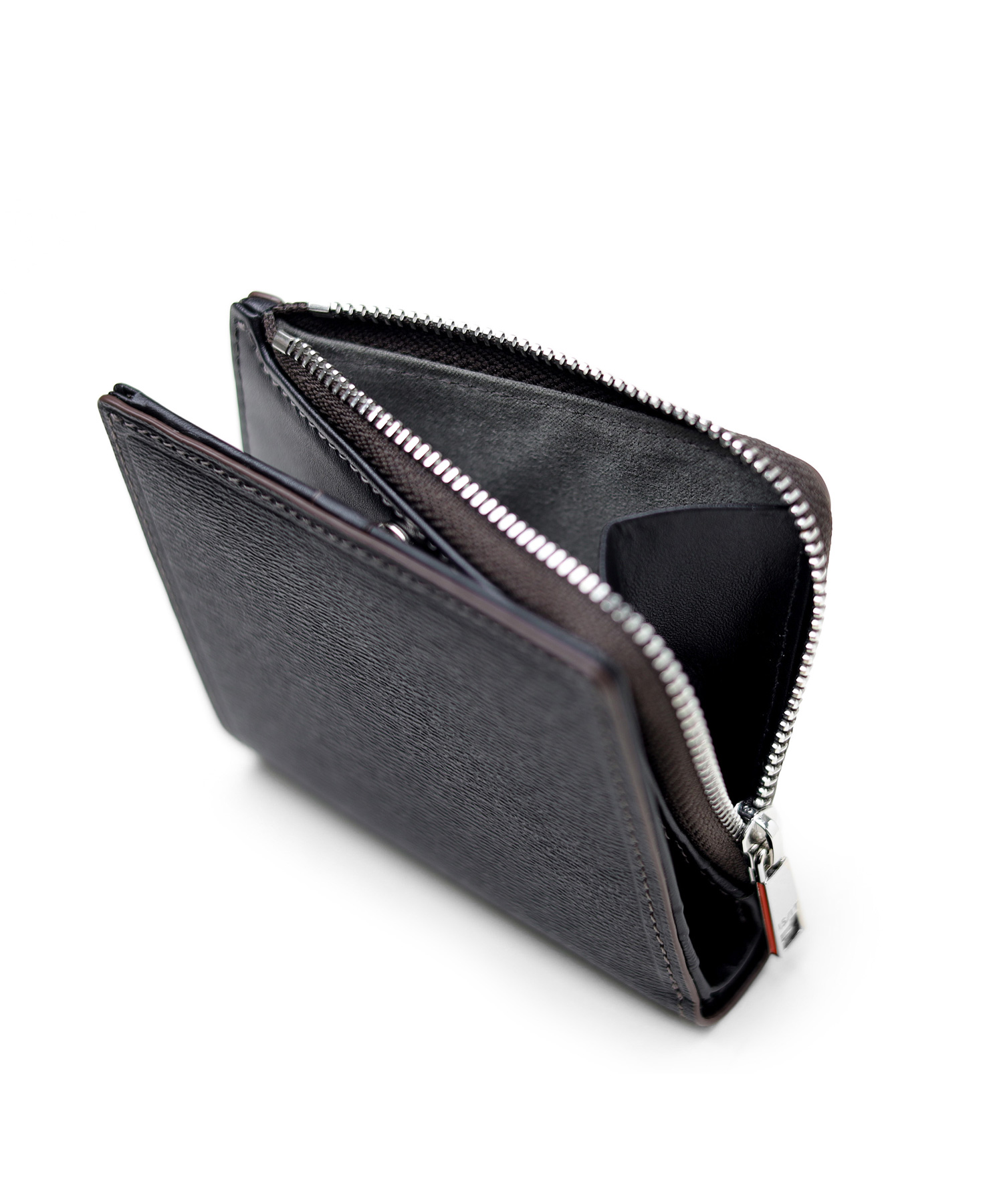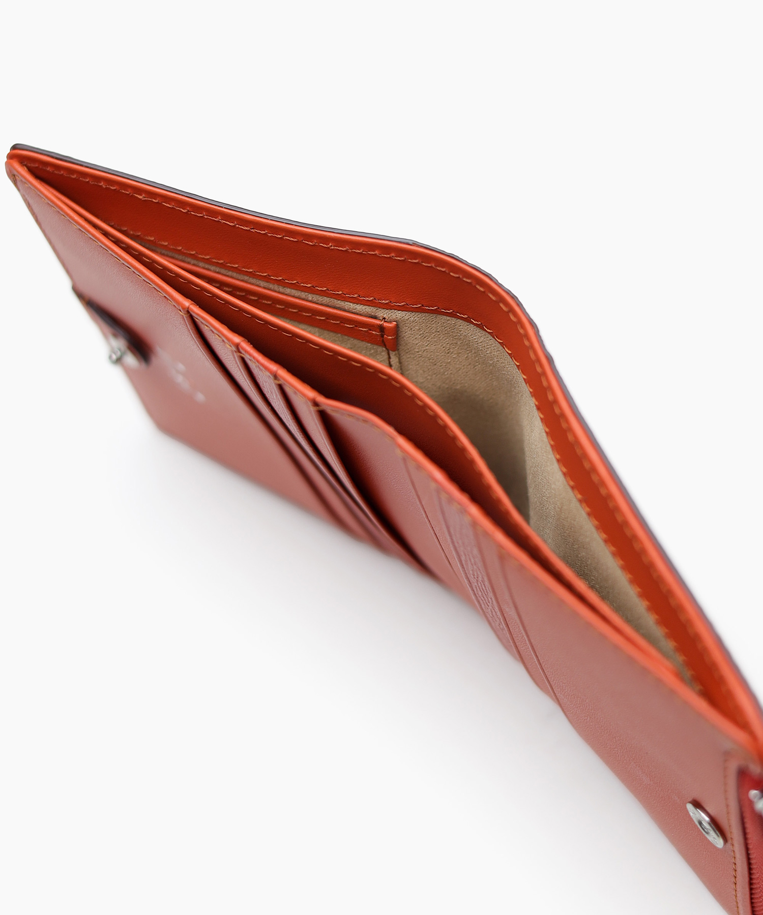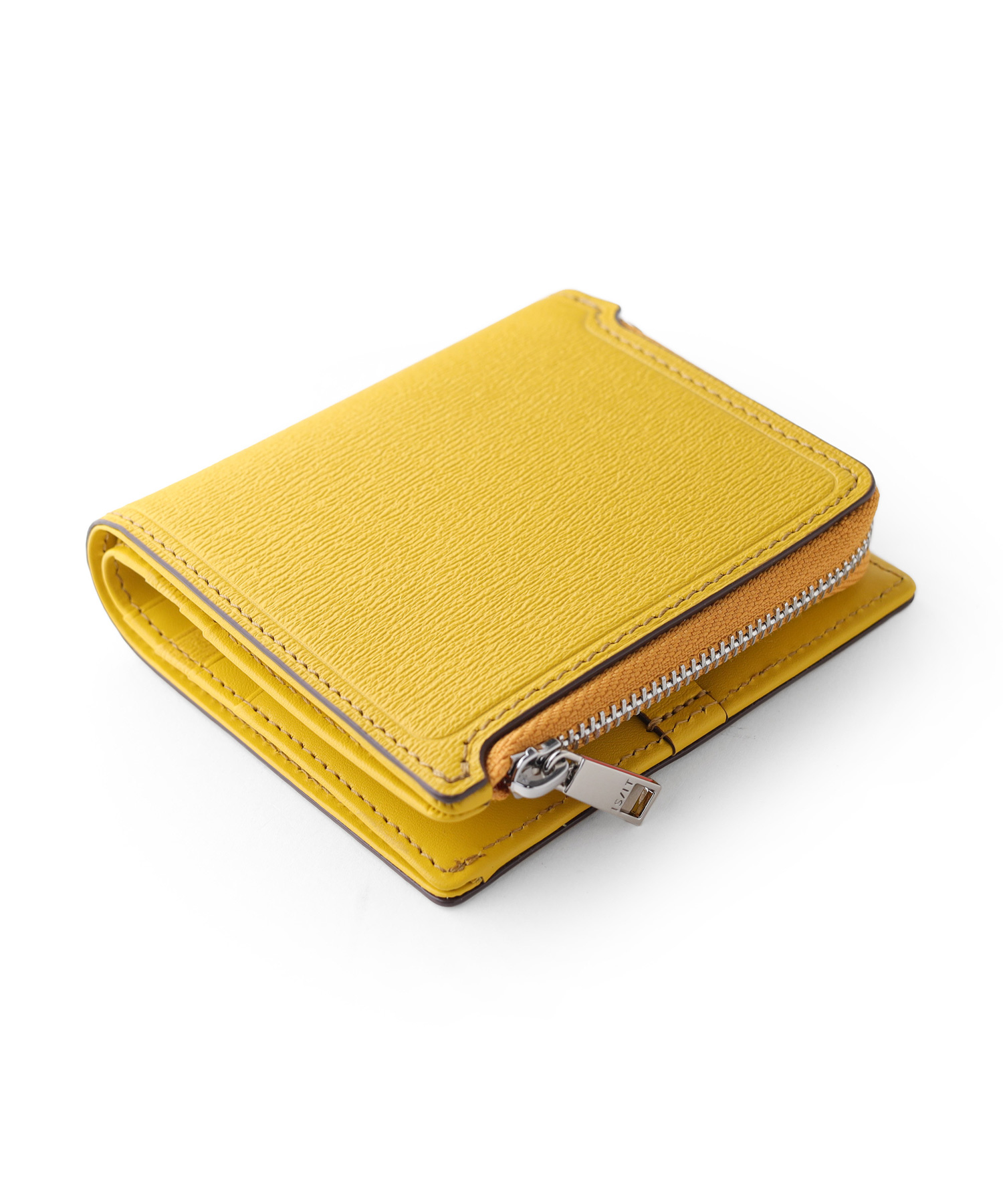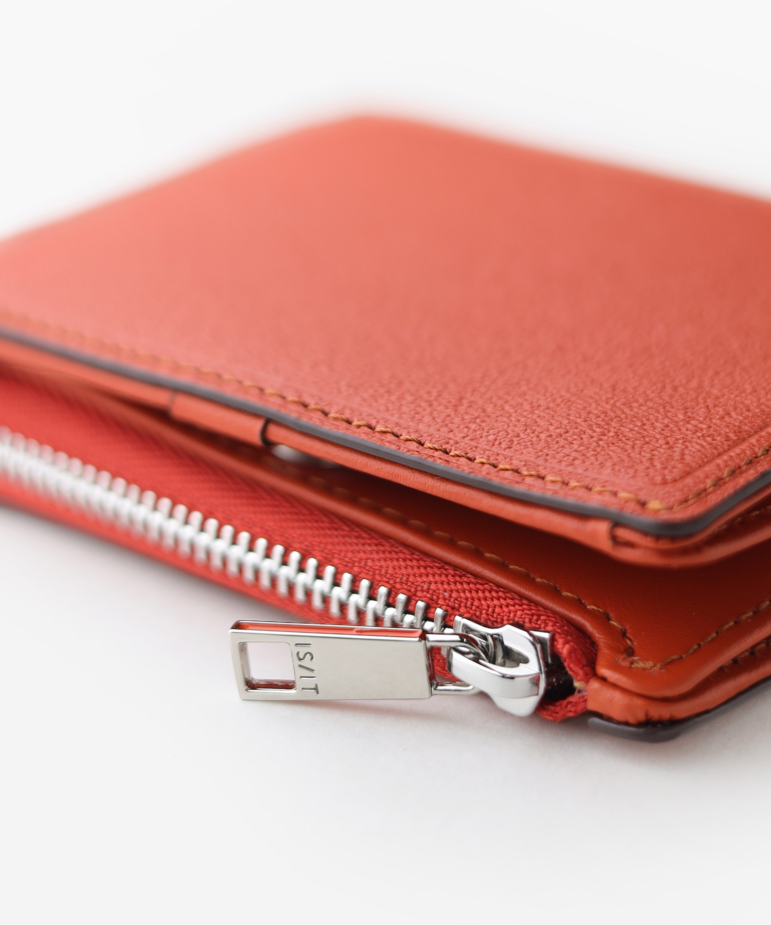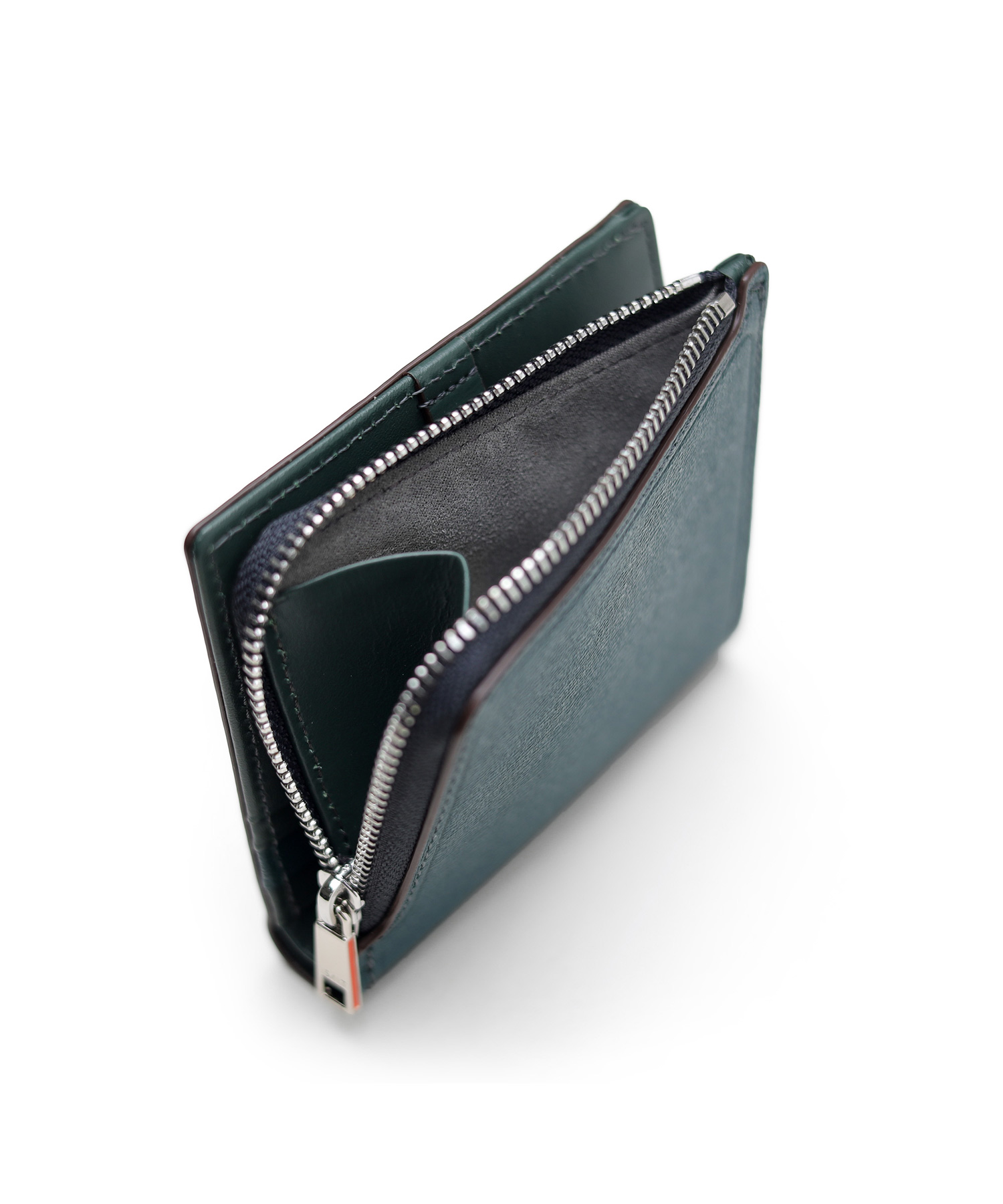 発色の美しいイタリアンレザーを参考にした、鮮やかなカラー展開が魅力のコンパクトなサイズ感の二つ折り財布。ジェンダーレスなデザインを意識し、個性的で汎用性の高いダブルエンボスレザーを使用しています。