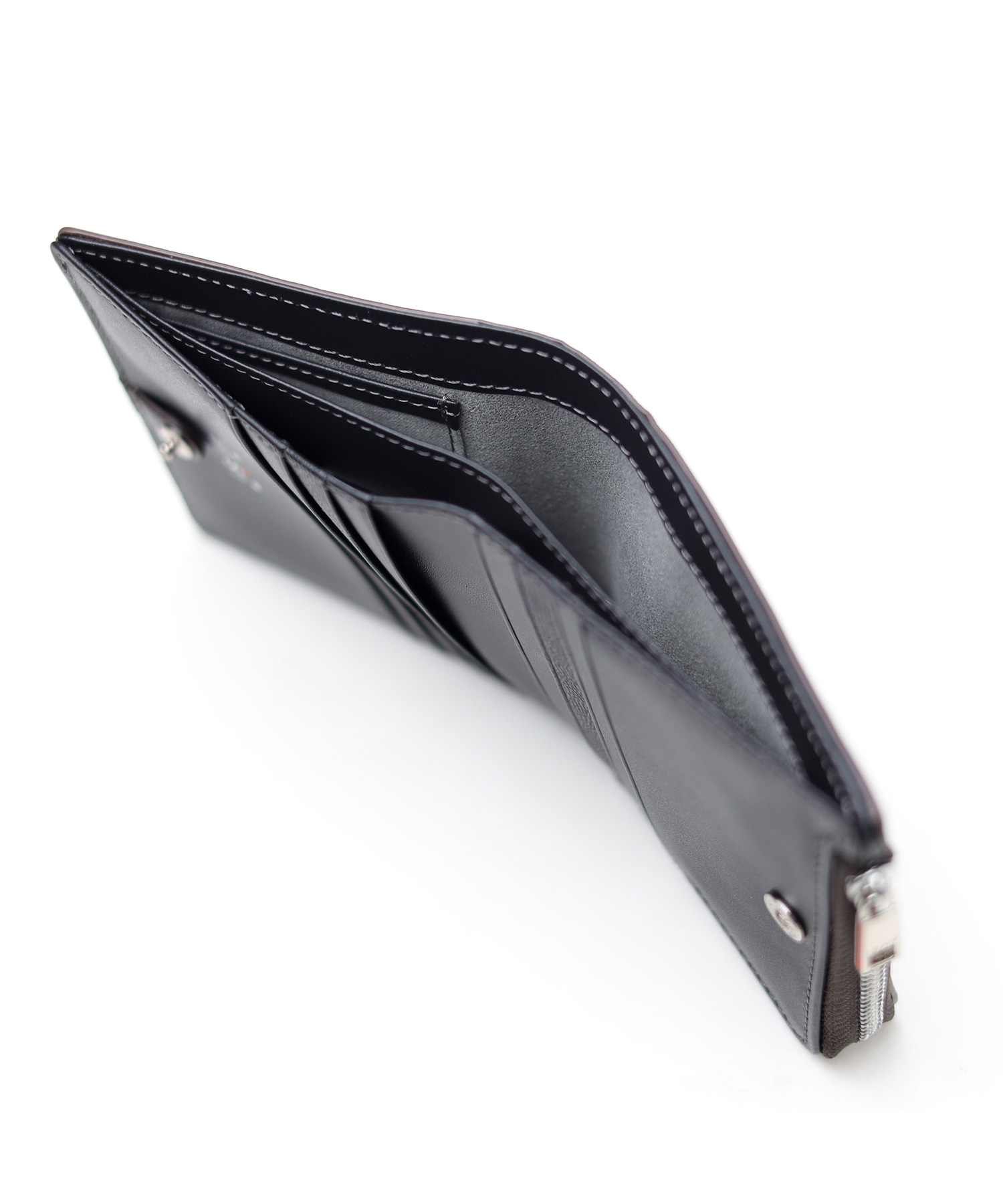 札入れの内側にはカード段が1つあります。ファスナー小銭入れはで外側に装備されており、利便性に優れた仕様です。カード段は8つあります。