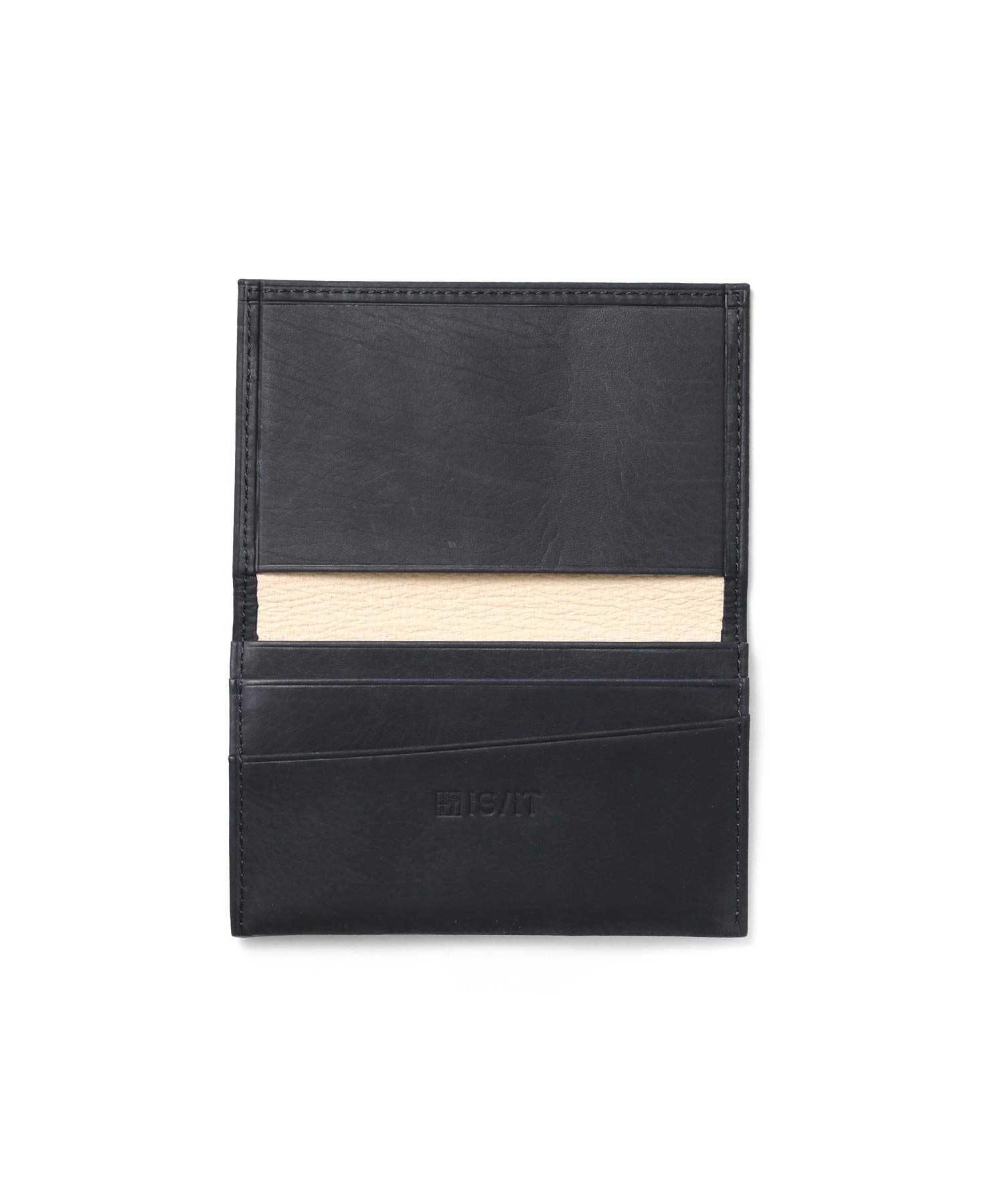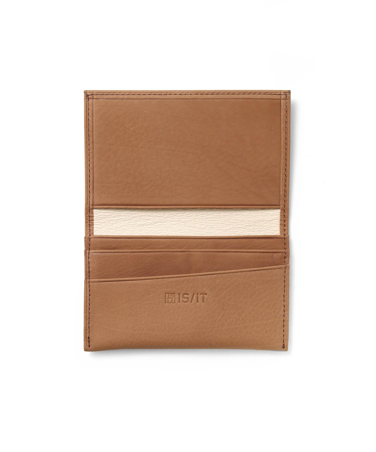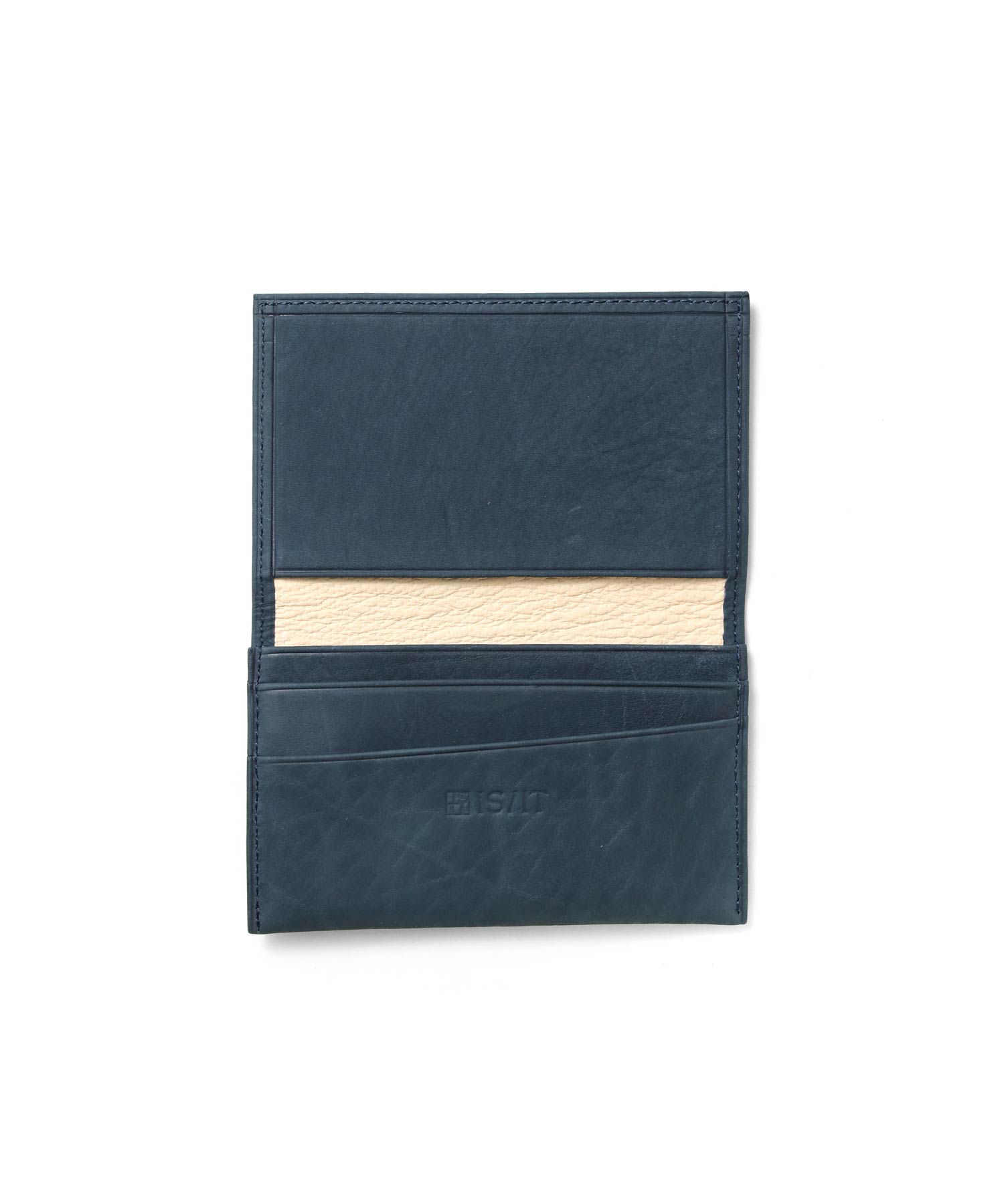 薄くスッキリとした、イズイットの名刺入れ。高級感ある大人の紳士革小物。スーツの内ポケットに収まるスリムな薄マチ名刺入れです。
