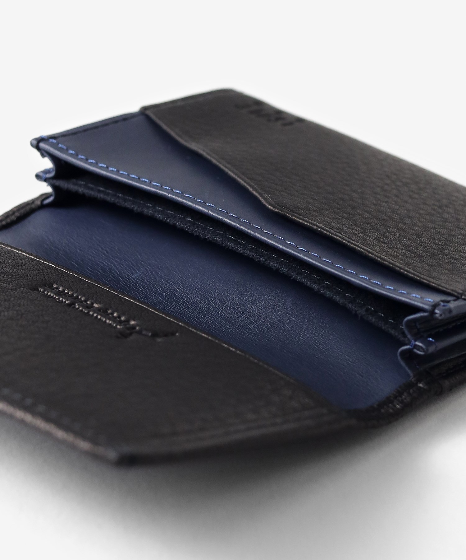 メインコンパートメントは仕切りがある2室仕様になっており、名刺は30枚収納可能です。また内装にカードポケットが2つ、背面にもカードポケットがあるので名刺以外の収納にも優れています。