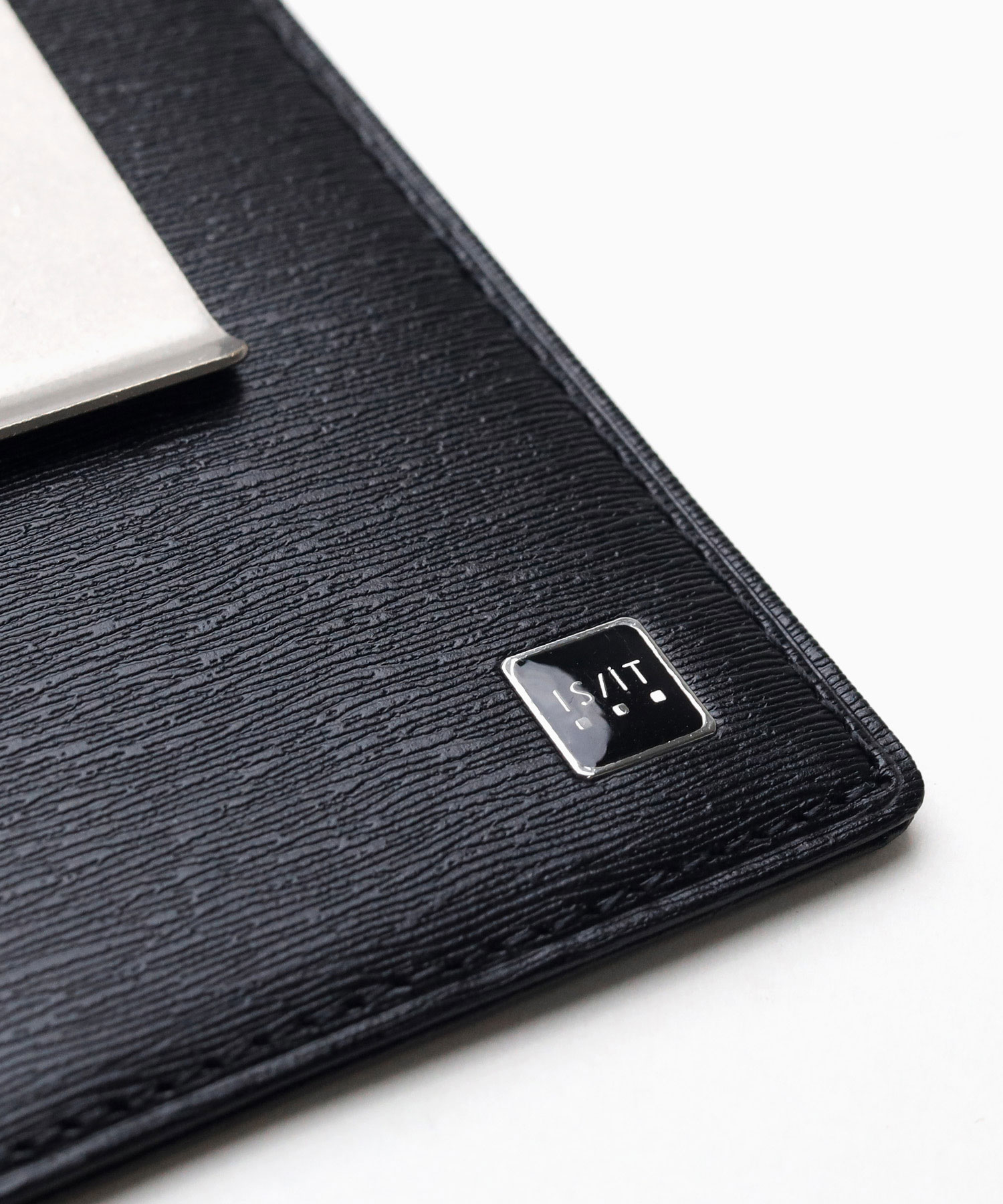 上品なエンボスレザーを使用した、IS/ITのシンプルベーシックなマネークリップ。落ち着いた雰囲気とシンプルで汎用性の高いルックスがポイントとなっています。外装・内装をトーン・トーン配色で仕上げており、落ち着いた大人の雰囲気を演出します。