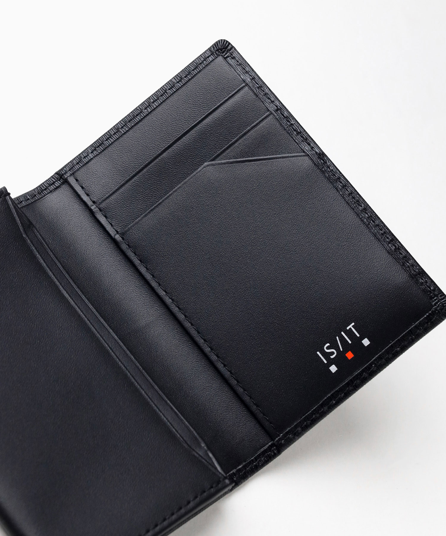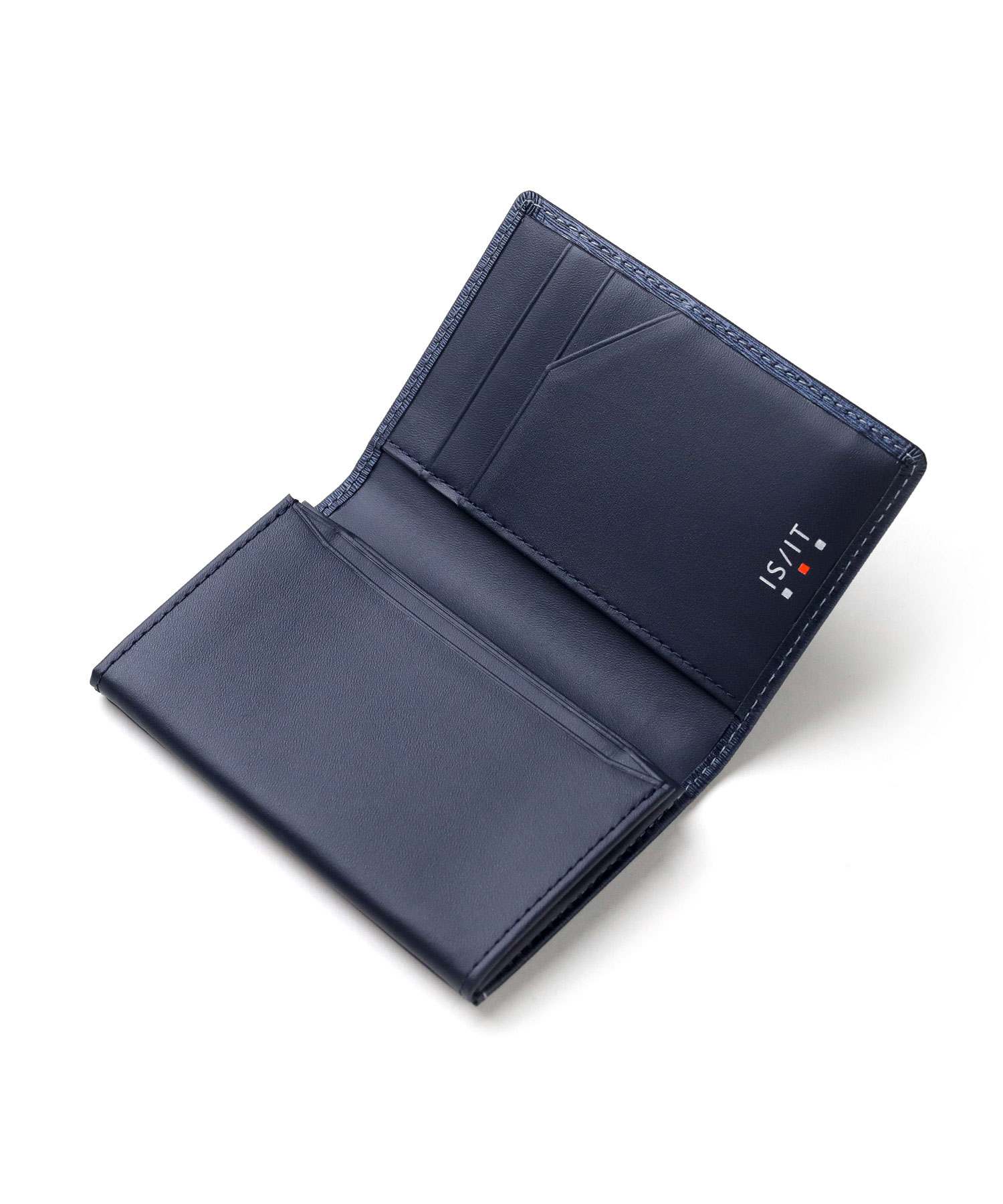 上品なエンボスレザーを使用した、IS/ITのシンプルベーシックな名刺入れ。落ち着いた雰囲気とシンプルで汎用性の高いルックスがポイントとなっています。外装・内装をトーン・トーン配色で仕上げており、落ち着いた大人の雰囲気を演出します。