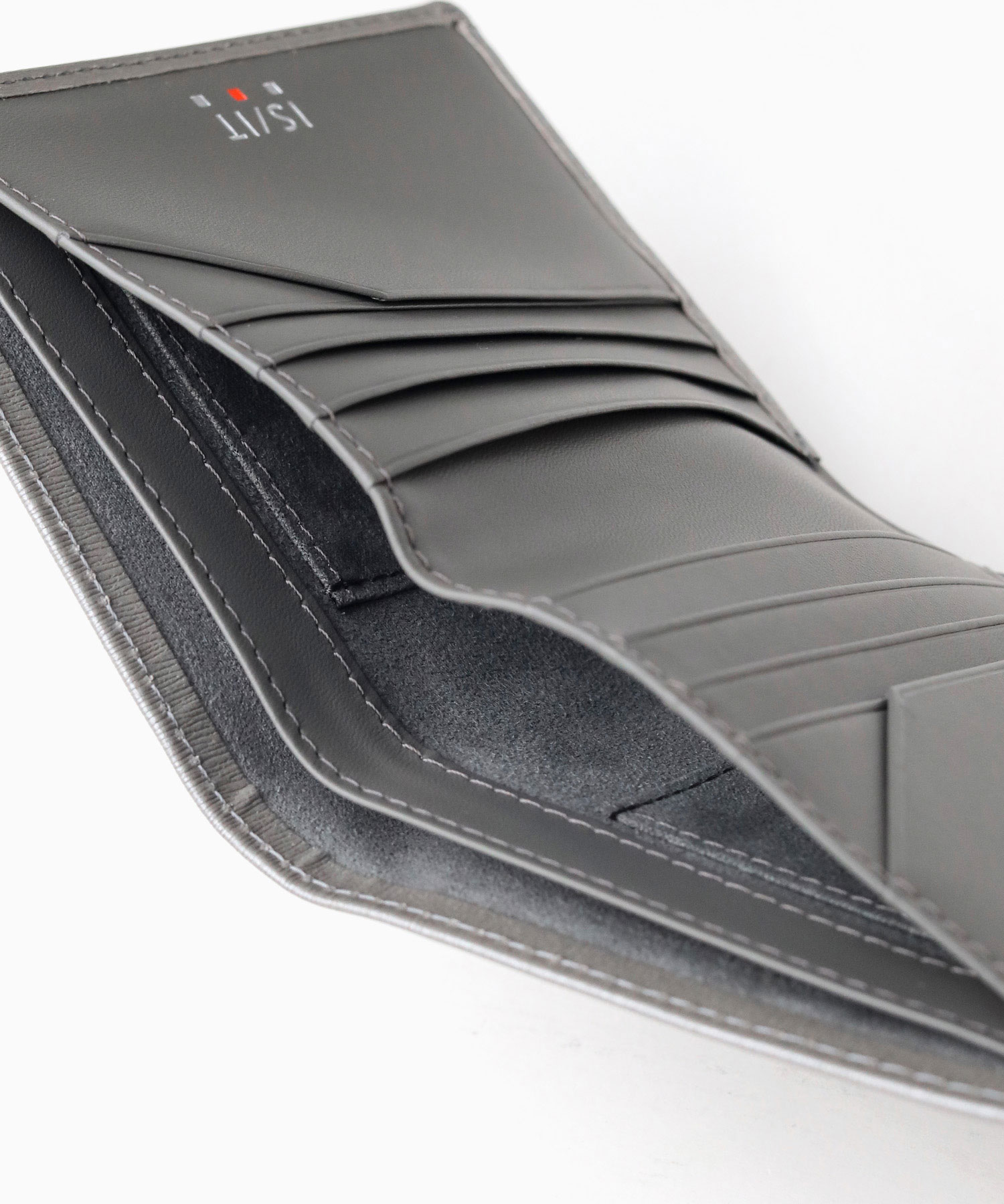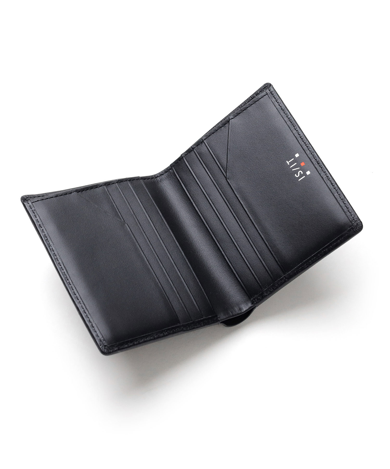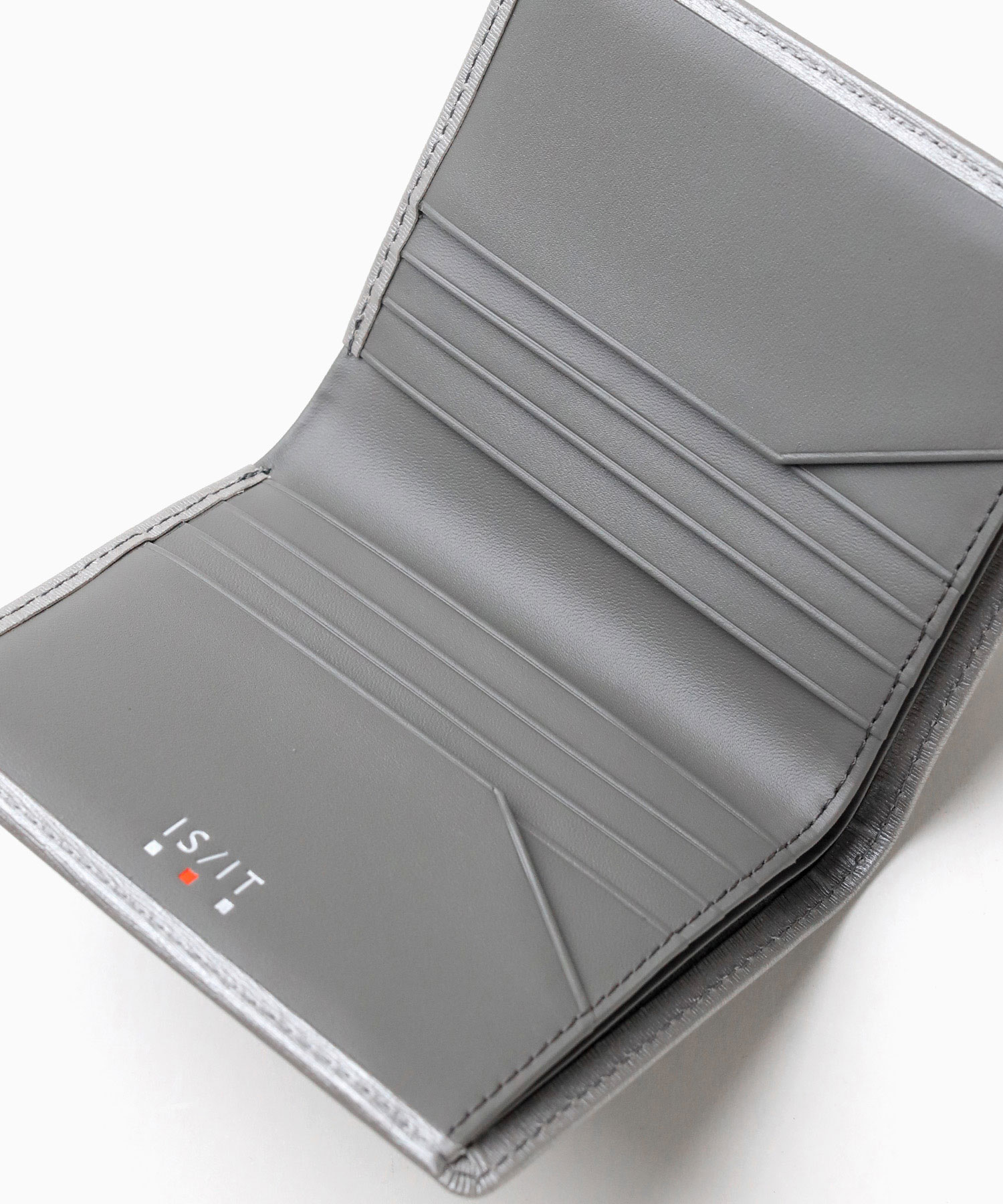 上品なエンボスレザーを使用した、IS/ITのシンプルベーシックな純札タイプの二つ折り財布。落ち着いた雰囲気とシンプルで汎用性の高いルックスがポイントとなっています。外装・内装をトーン・トーン配色で仕上げており、落ち着いた大人の雰囲気を演出します。