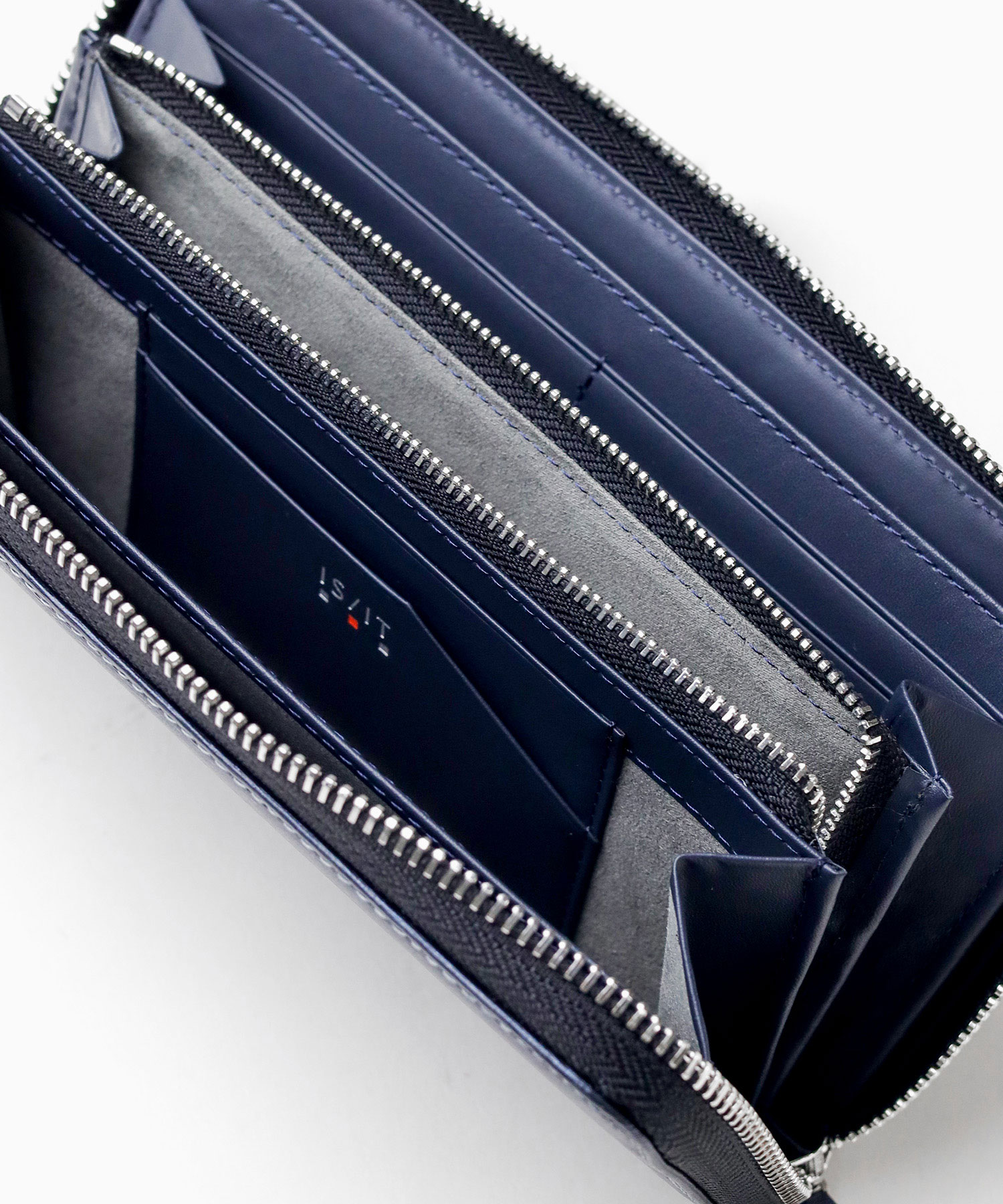 上品なエンボスレザーを使用した、IS/ITのシンプルベーシックなラウンドファスナー型の長財布。落ち着いた雰囲気とシンプルで汎用性の高いルックスがポイントとなっています。外装・内装をトーン・トーン配色で仕上げており、落ち着いた大人の雰囲気を演出します。