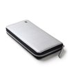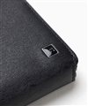 本体素材には、美しい繊細な水シボエンボス加工が施されたレザーを使用しており、水が流れた跡のような上品な模様が特徴です。また、傷や汚れが付きにくく多少の水気にも強い性質を持っているため、日常使いにも安心してお使いいただけます。内装には本体と同色のスムースレザーが使われており、トーン・トーン配色が落ち着いた大人の雰囲気を演出しています。