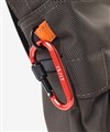 本体素材には強度に優れた「ナイロン66」の2本の糸を1本に撚糸した糸を、高密度で織りあげた高強度素材の1680Dコーデュラーバリスティックナイロンを使用しています。表面は弱撥水加工、裏面はPU加工が施され、耐引裂性、耐摩耗、耐熱性、擦り切れに強い強靭なマテリアルです。