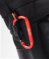 本体素材には強度に優れた「ナイロン66」の2本の糸を1本に撚糸した糸を、高密度で織りあげた高強度素材の1680Dコーデュラーバリスティックナイロンを使用しています。表面は弱撥水加工、裏面はPU加工が施され、耐引裂性、耐摩耗、耐熱性、擦り切れに強い強靭なマテリアルです。