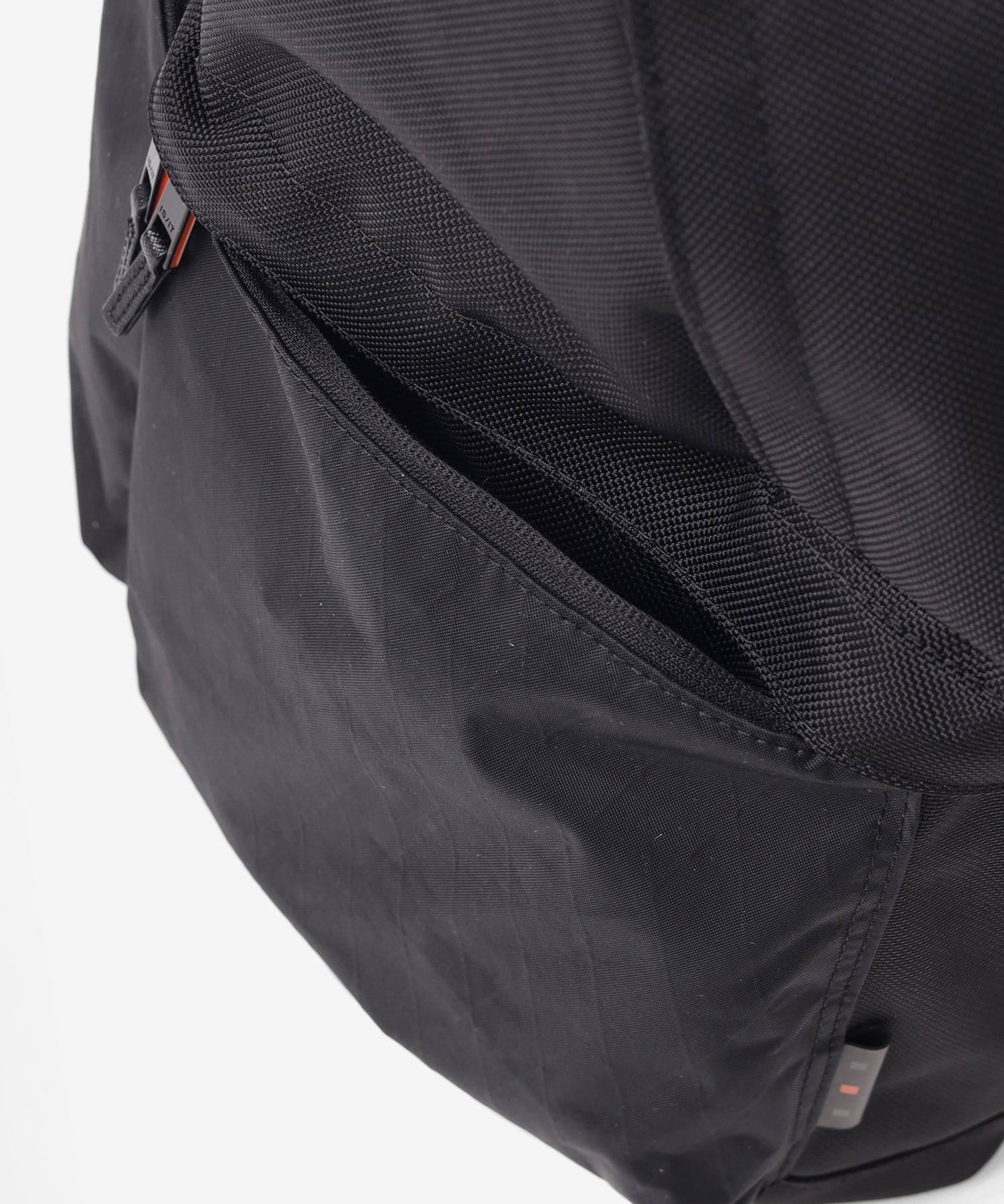 前面ポケットには、セイルクロスでシェア世界一を誇るアメリカの『DIMENSION-POLYANT社』が開発した、「表生地」+「X-PLY(ファイバー)」+「裏生地」という3種類の素材を特殊な方法で貼り合わせた3層構造からなる、強度・軽さ・防水性を兼ね備えた優れた特殊マテリアルを使用しています。