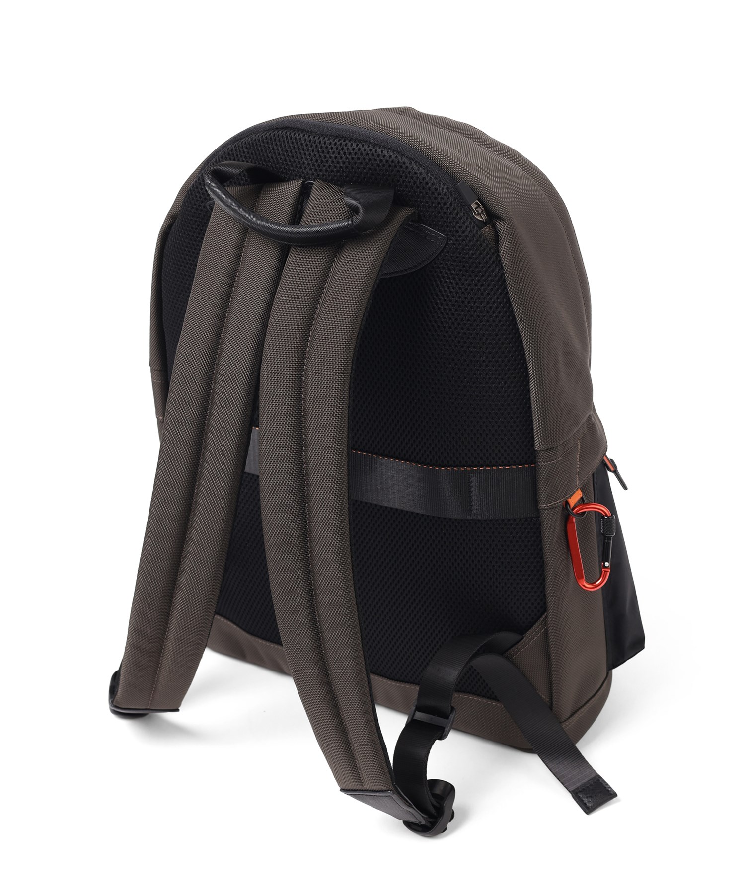 メインルームにはA4ファイルが入るサイズ感で、13.3インチPC対応のクッションポケットが2つ備わっております。細かなポケット類も豊富に備わっているので、小物類を整理して収納できます。また、背面にはキャリーケースに通すセットアップベルトが備わっているので、出張にも最適なリュックです。