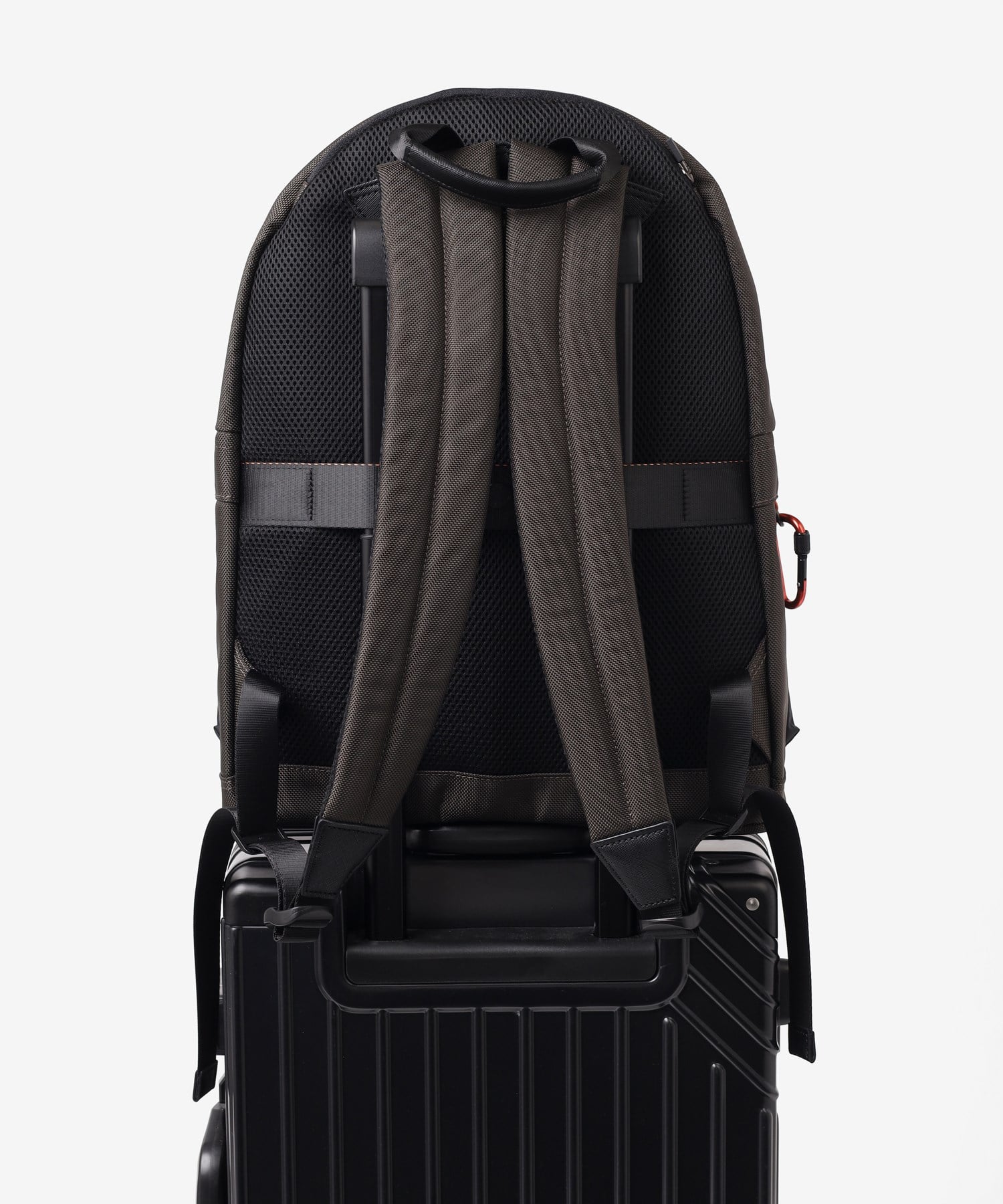 13.3インチPC対応のクッションポケットや、小物の整理に最適なポケット類が充実しています。さらには、キャリーケースに通すセットアップベルトが備わっているので、出張にも最適なリュックです。