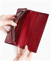 メインルームには札入れ、小銭入れ、フリーポケットが3、カード段が10、そして背面にもオープンポケットがあり、十分な収納力を持っています。