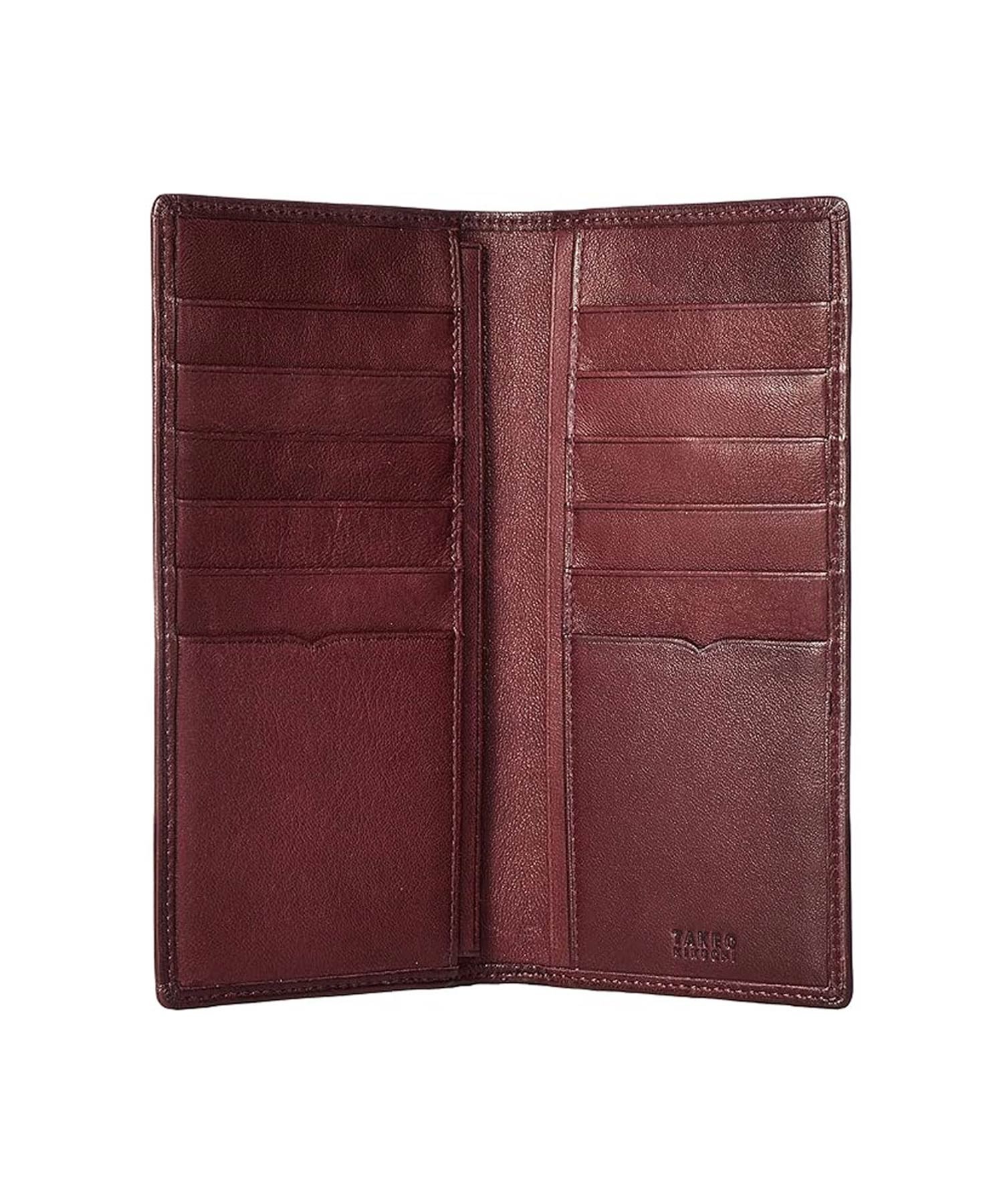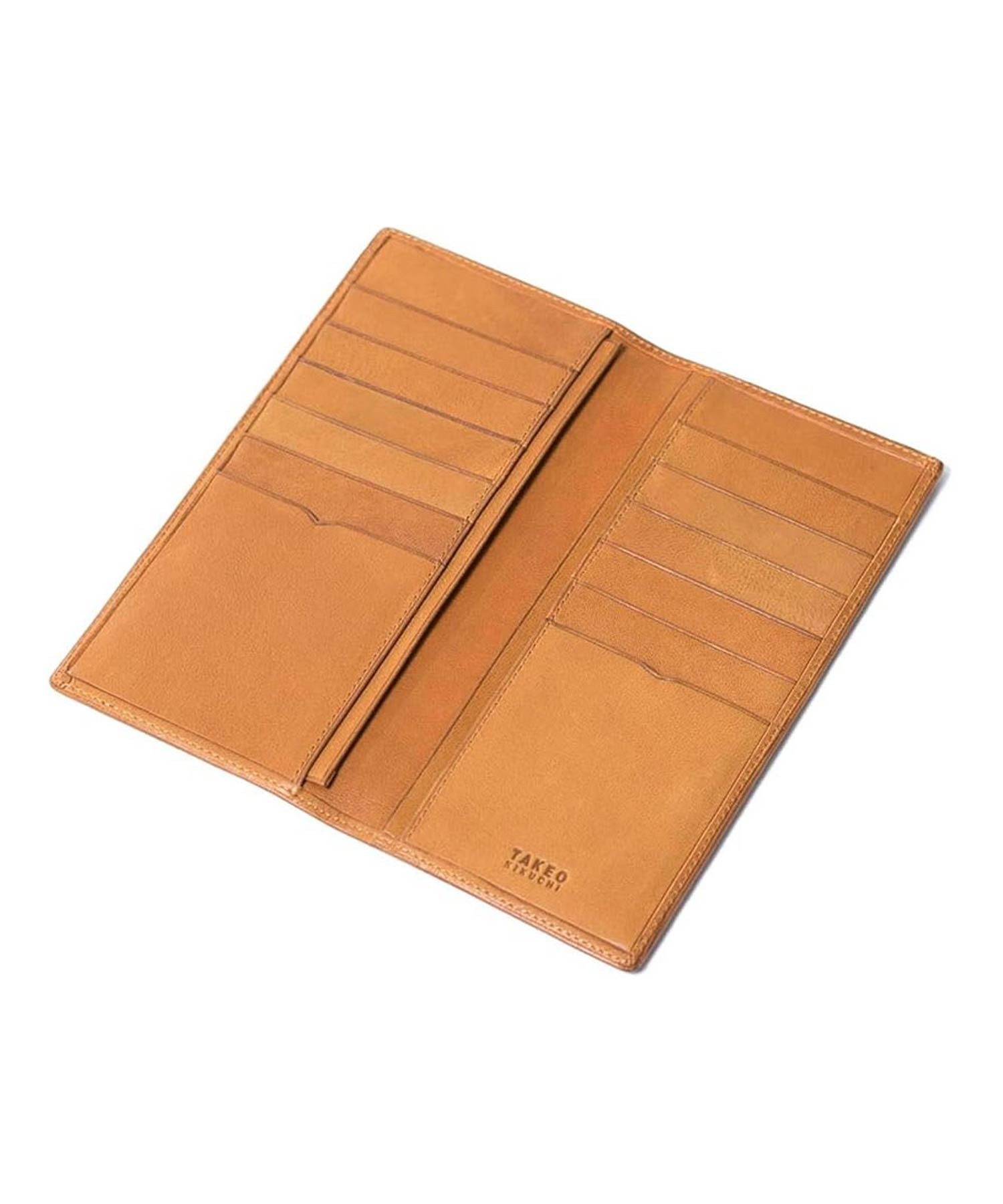 タケオキクチのもっちりとした手触りの長財布。純札仕様のためスリムなつくりですが、収納力は抜群です。小銭入れは別で持ち歩くという方にぴったりの薄マチ長財布です。