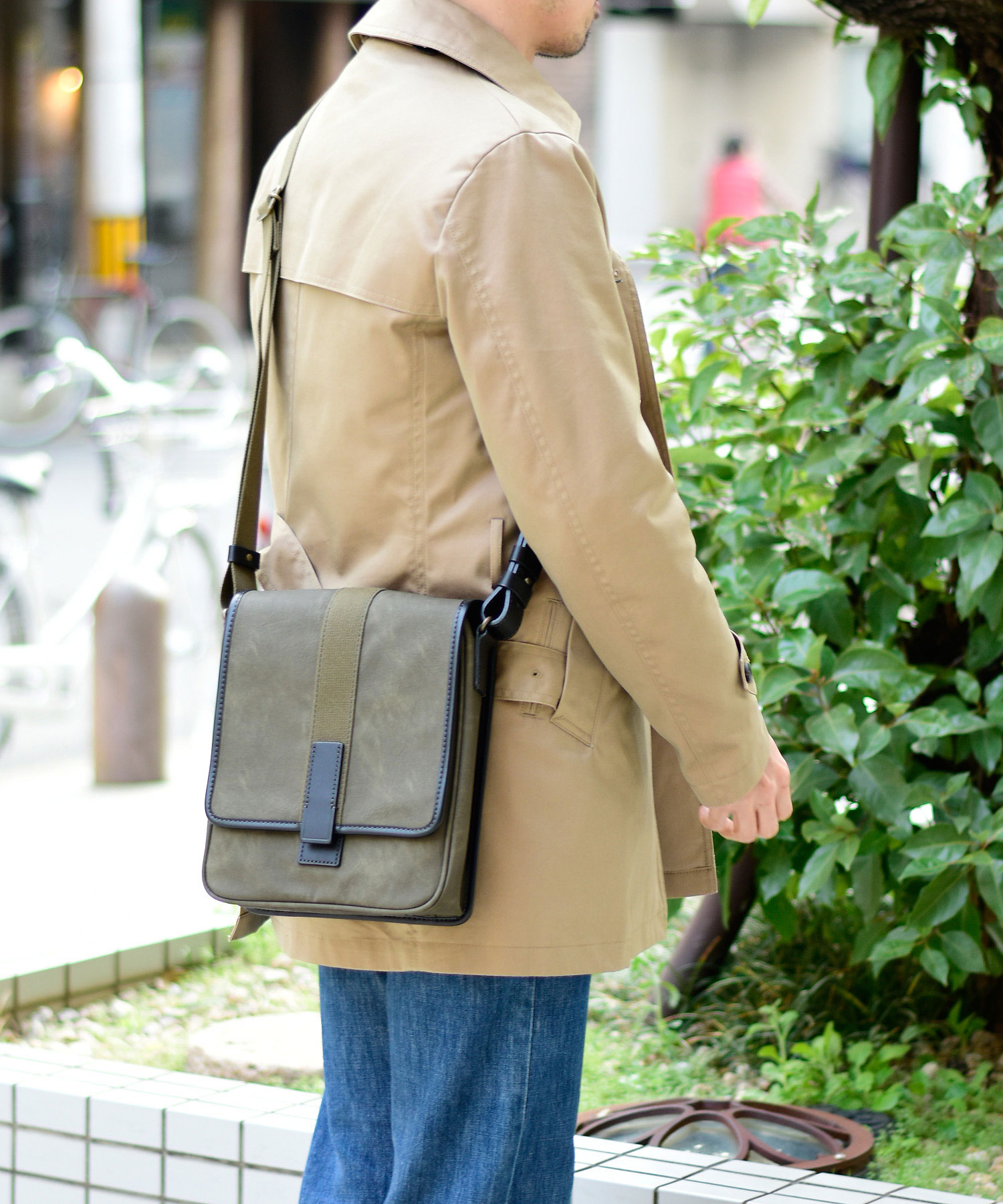 ON・OFFのシーンで対応可能、ビジネスカジュアルなタケオキクチのショルダーバッグ。
