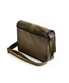 フラップを開けるとすぐにファスナーポケット(1)があります。フラップにはマグホックが付いていますので、フラップを閉じればほぼ自動で本体と密着致します。 そしてメインにはファスナーポケット(2)と、マチ付きミニポケット(3)、オープンポケット(4)も付いています。本体外側の背側にはオープンポケットがあり、メモ等をさっとしまうのに便利です。A4ファイルやペットボトルも収まる収納力抜群のタケオキクチのショルダーバッグです。