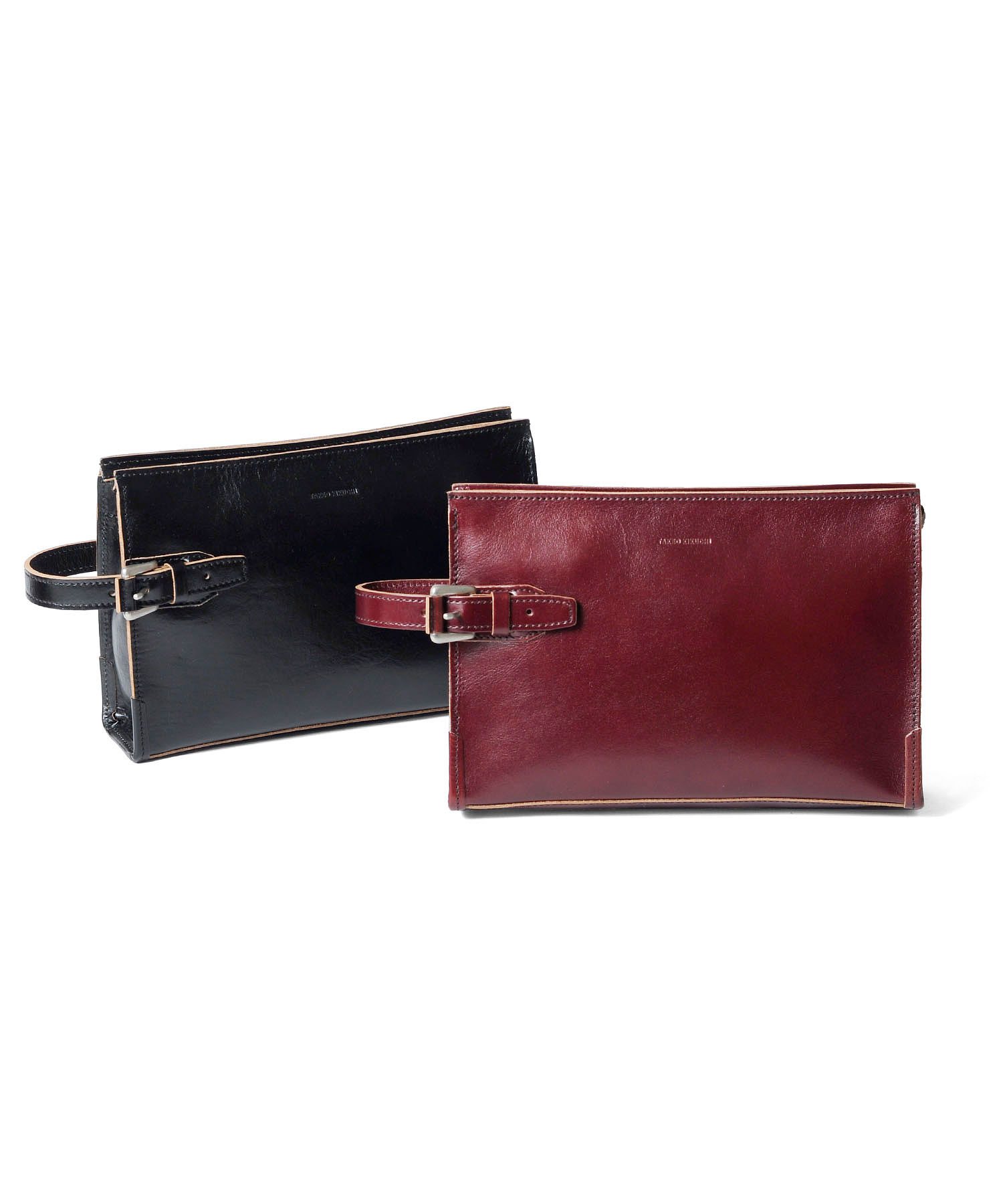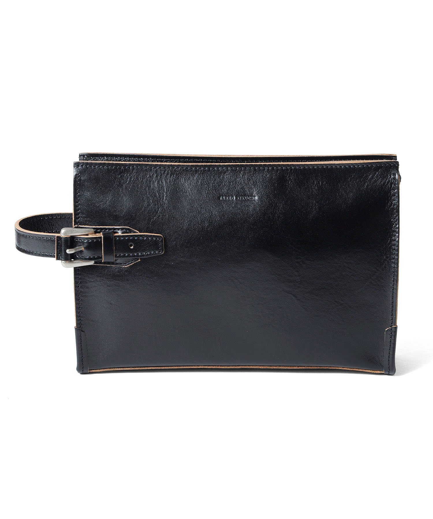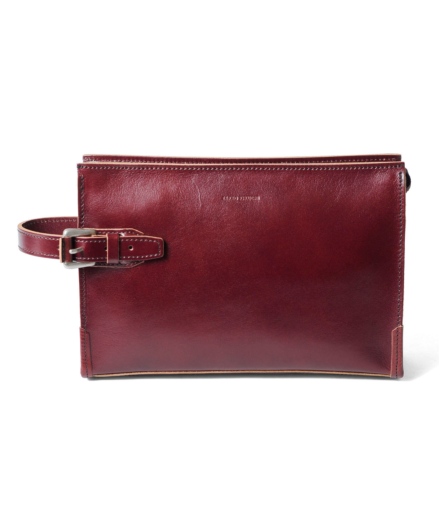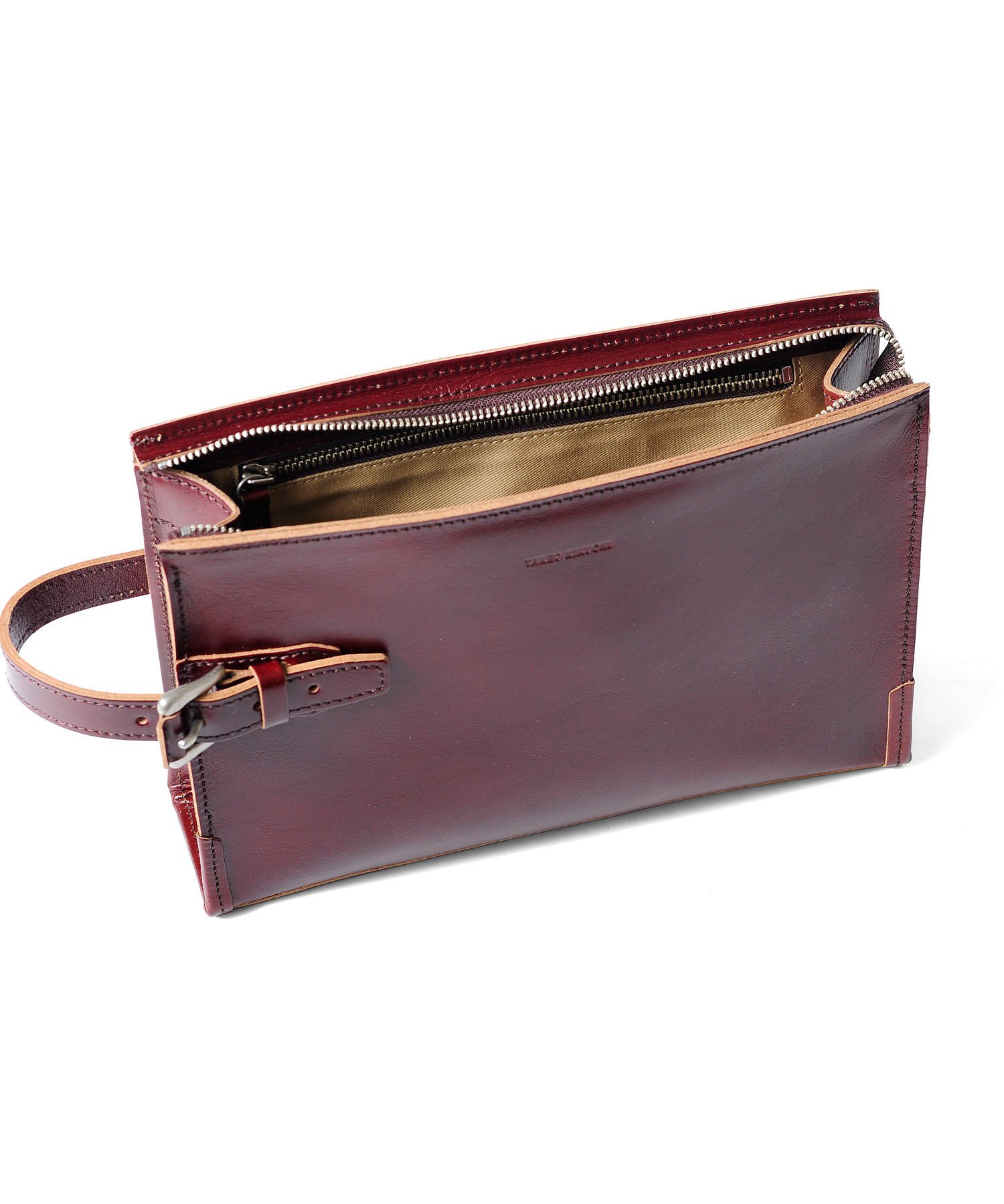 素材感がポイントのタケオキクチのメンズバッグ。 天然皮革ならではの素材感を最大限に活かすため、エッジを切り目で仕上げてナチュラルな革の色をデザインのポイントに仕上げました