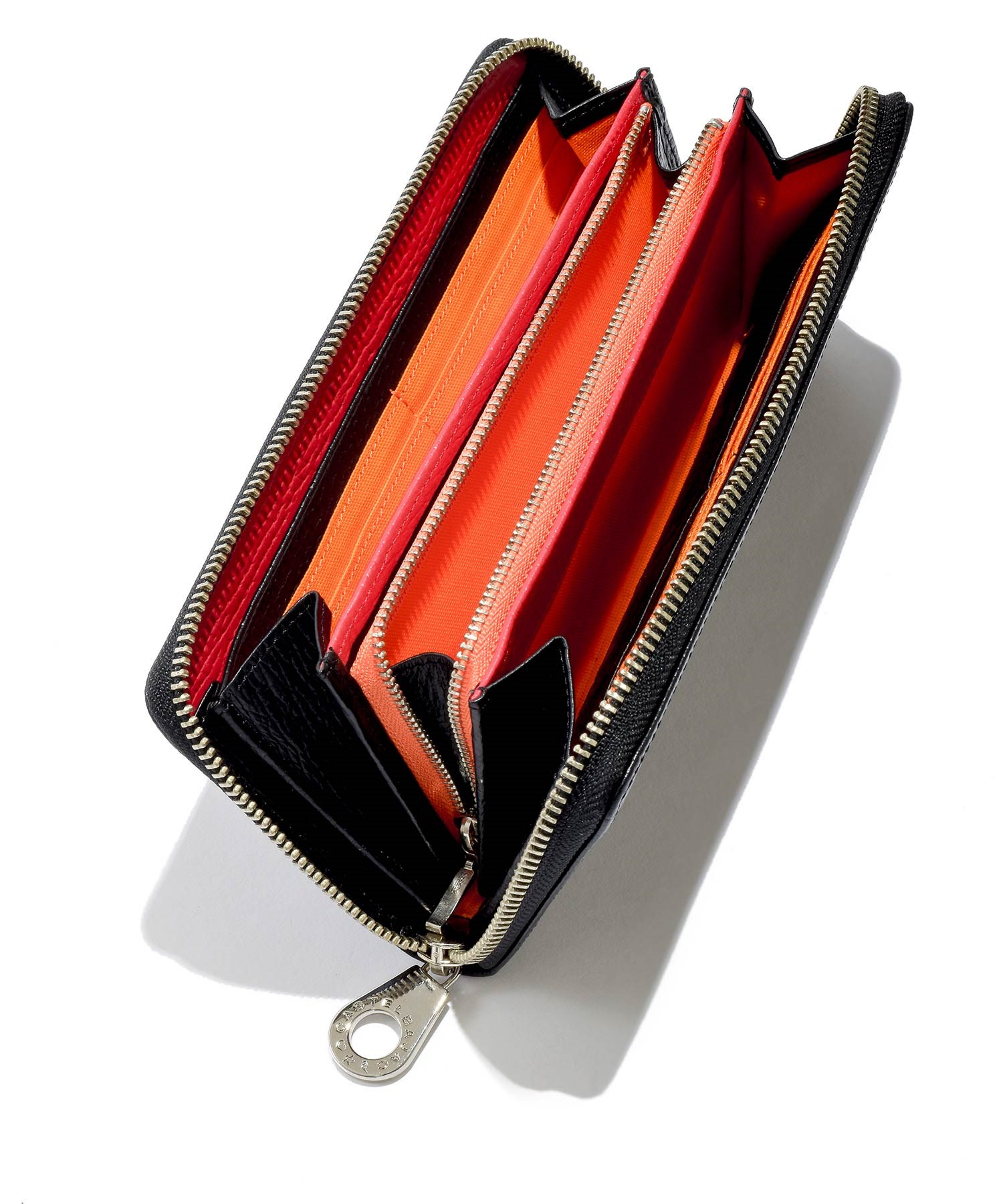 カステルバジャックの家紋ロゴを大胆に型押しした、ピッコロシリーズのラウンドファスナー長財布。本体素材には型押し牛革を使用。型押し素材で傷が目立ちにくく、ヘビーユースできる素材です。鮮やかな発色を表現するために顔料を使用していますので色落ちの心配もありません。