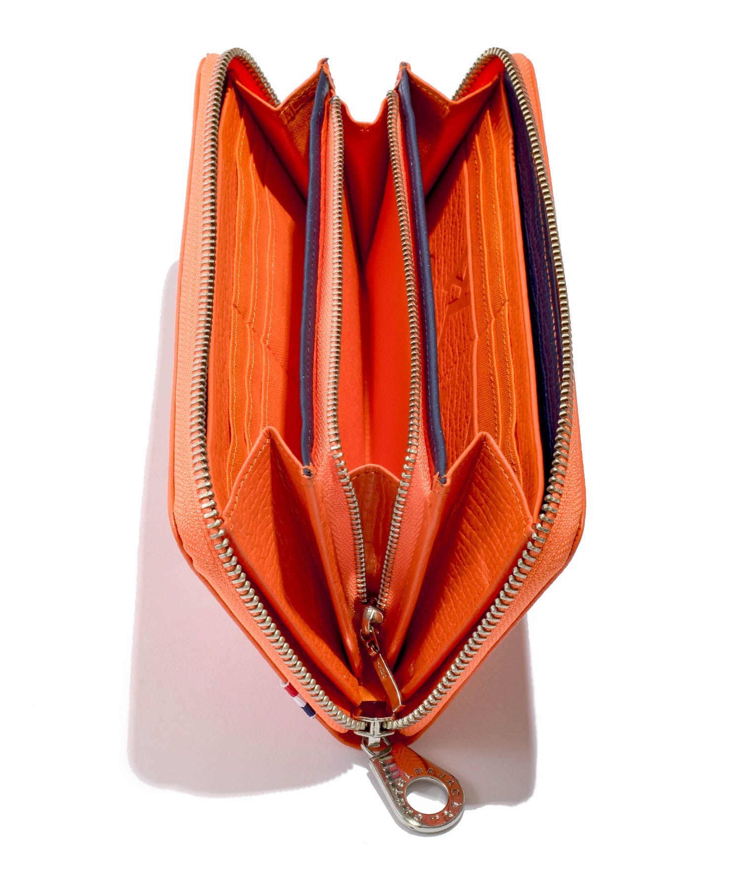 長財布の端につけられたトリコロールの織りネームもアクセントに。