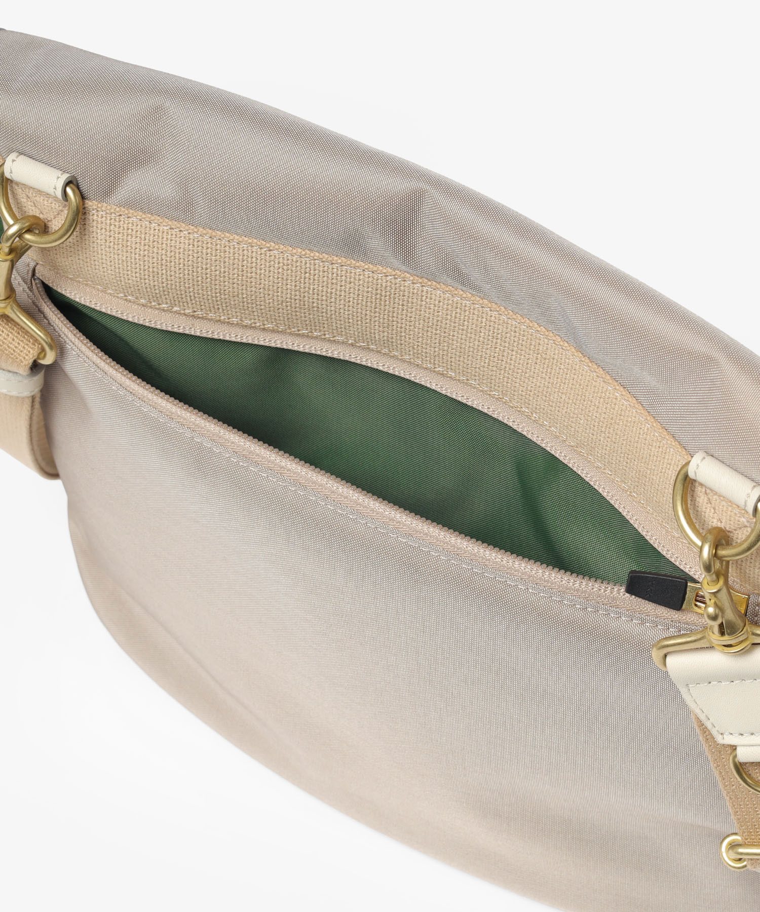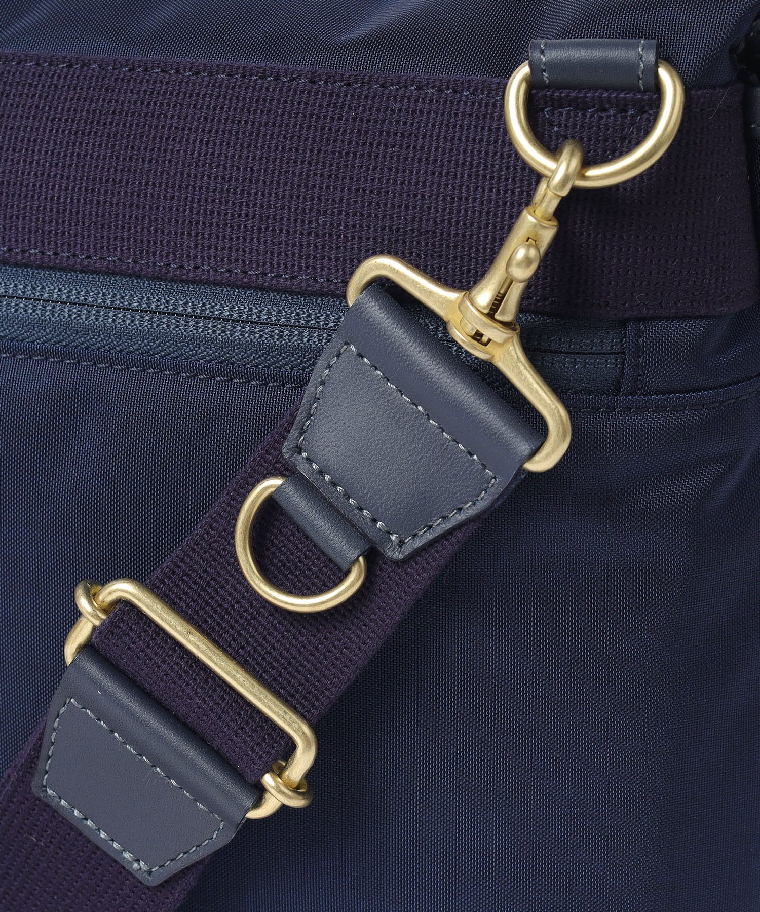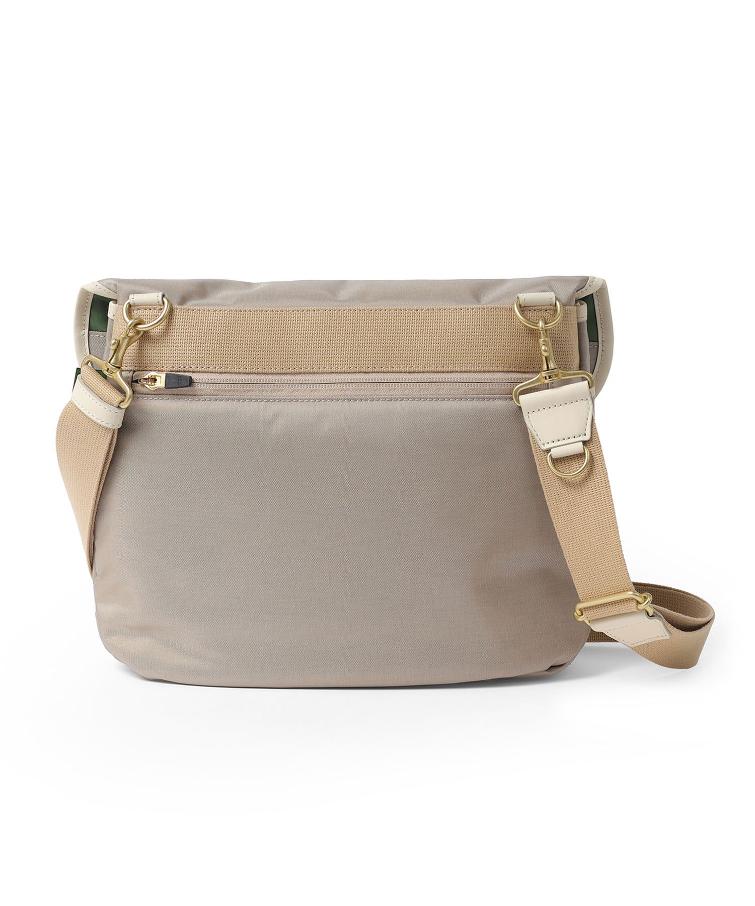 付属の革には、SILVER LAKE CLUB定番のオイルレザーを使用しています。油分を多く含むことで水分が浸透しにくく、使い込むほどに風合いが深まる経年変化(エイジング)を楽しめます。アイコンでもあるギボシ仕様は、頑丈さと機能性を兼ね備えたデザインのアクセントになっています。また、ショルダーベルトには、イヤホンなどの小物を取り付けられる便利なDカンを備え、実用性にも配慮しています。