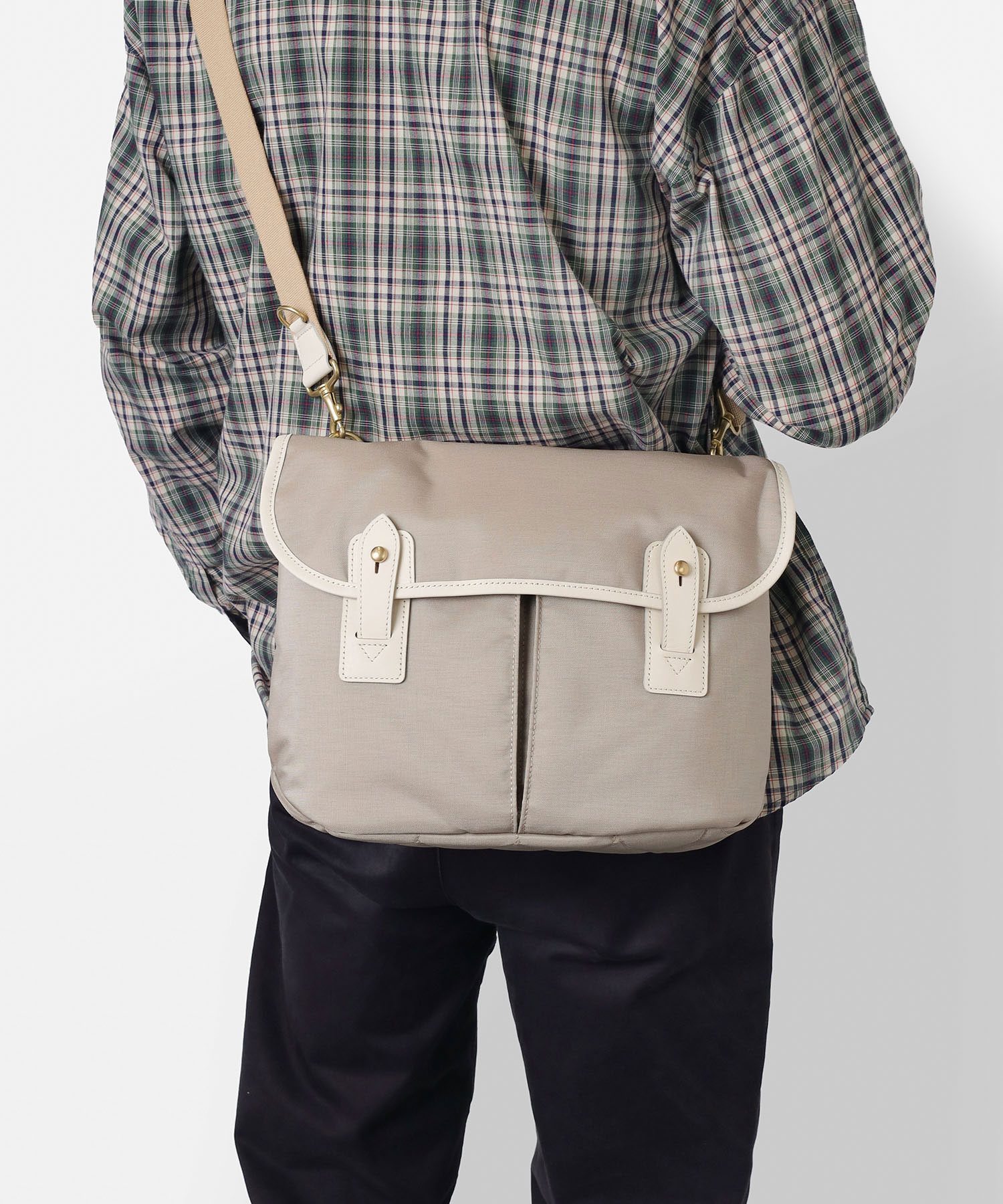 英国テイストのフィッシングバッグやハンティングバッグ、ツールバッグのディテールを取り入れた、SILVER LAKE CLUBのショルダーバッグ。B5サイズに対応し、タウンユース向けにアレンジされた、トラディショナルで軽量なカジュアルバッグです。