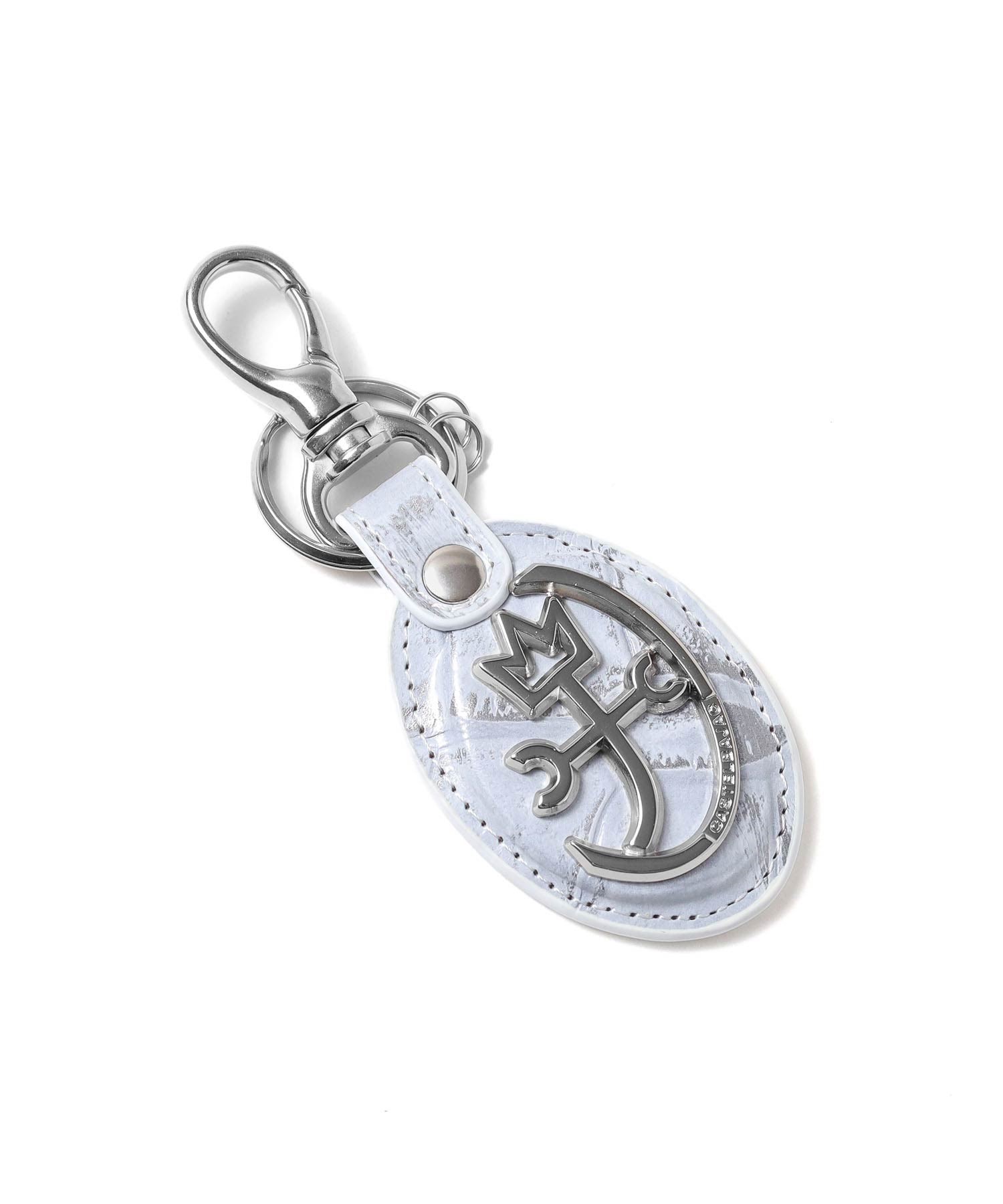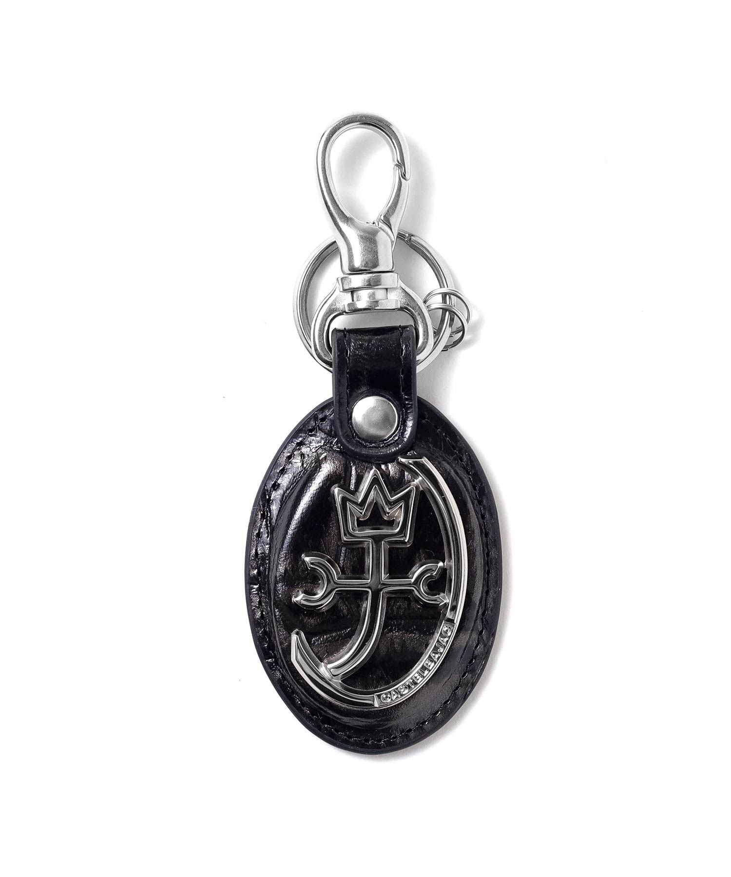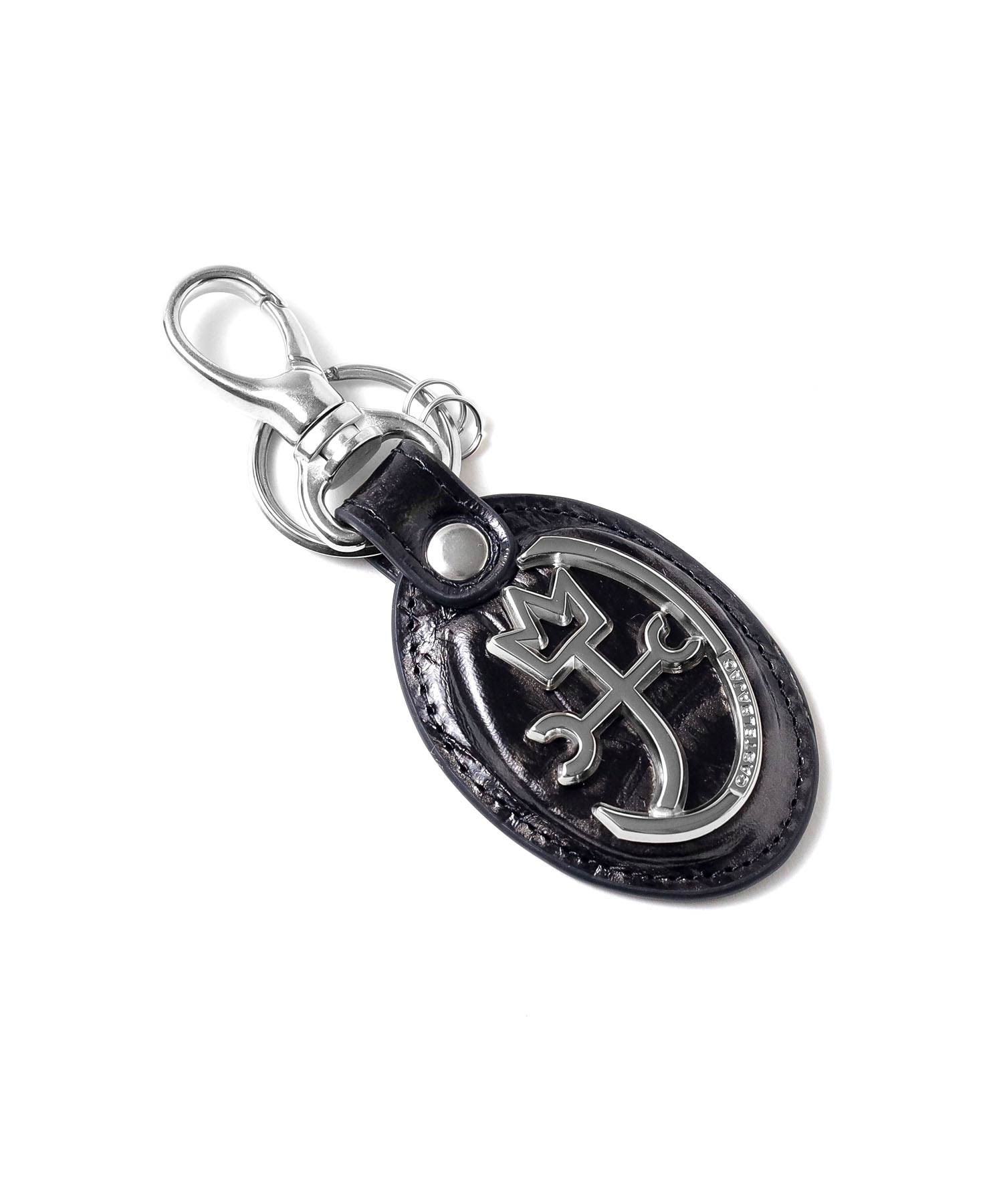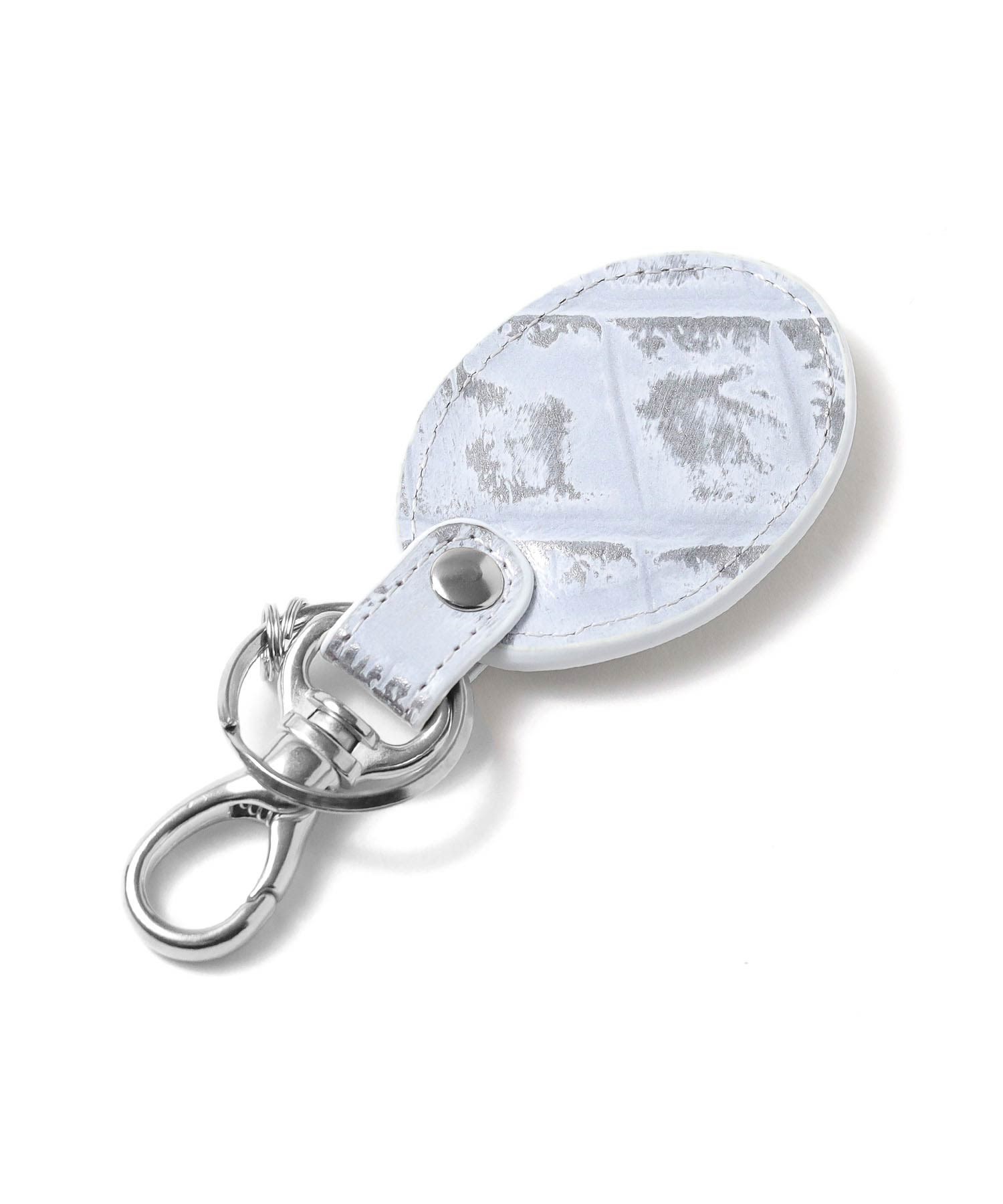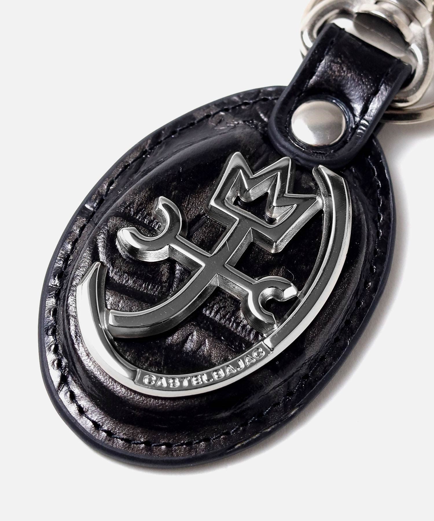 POPなイメージのあるカステルバジャックとは一味違う、ビンテージ物のような深みのあるキーホルダー。 本体素材にはタンニンでしっかりと鞣されたコシのある牛革を使用しています。そこにメタル箔を貼り、クロコの型押しを施し、色を抜き取ることでビンテージ感あるデザインに仕上げました。