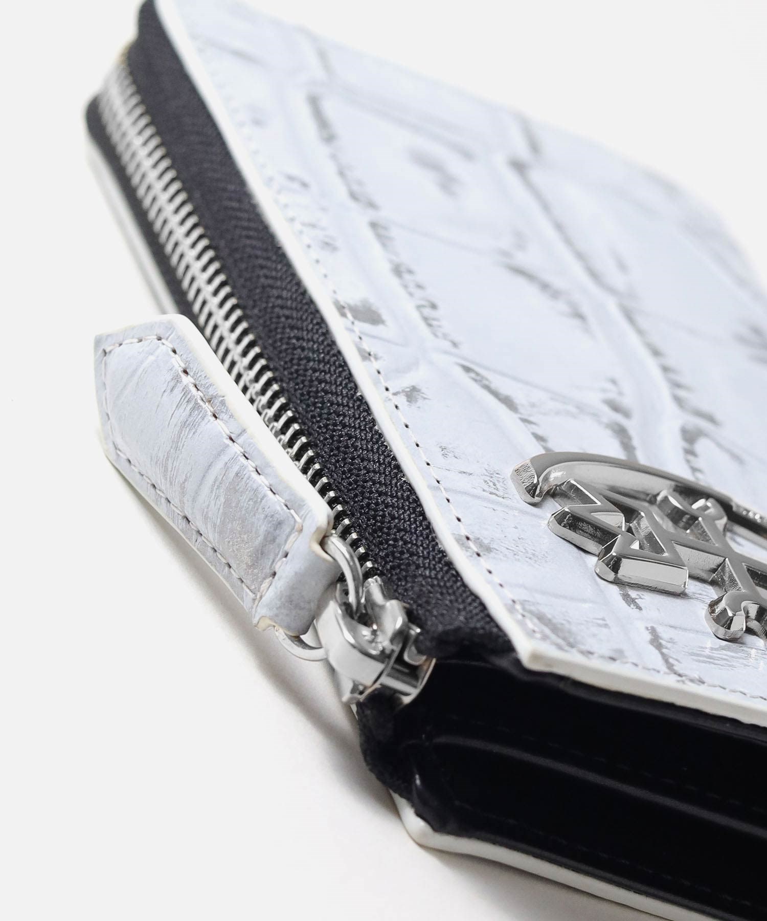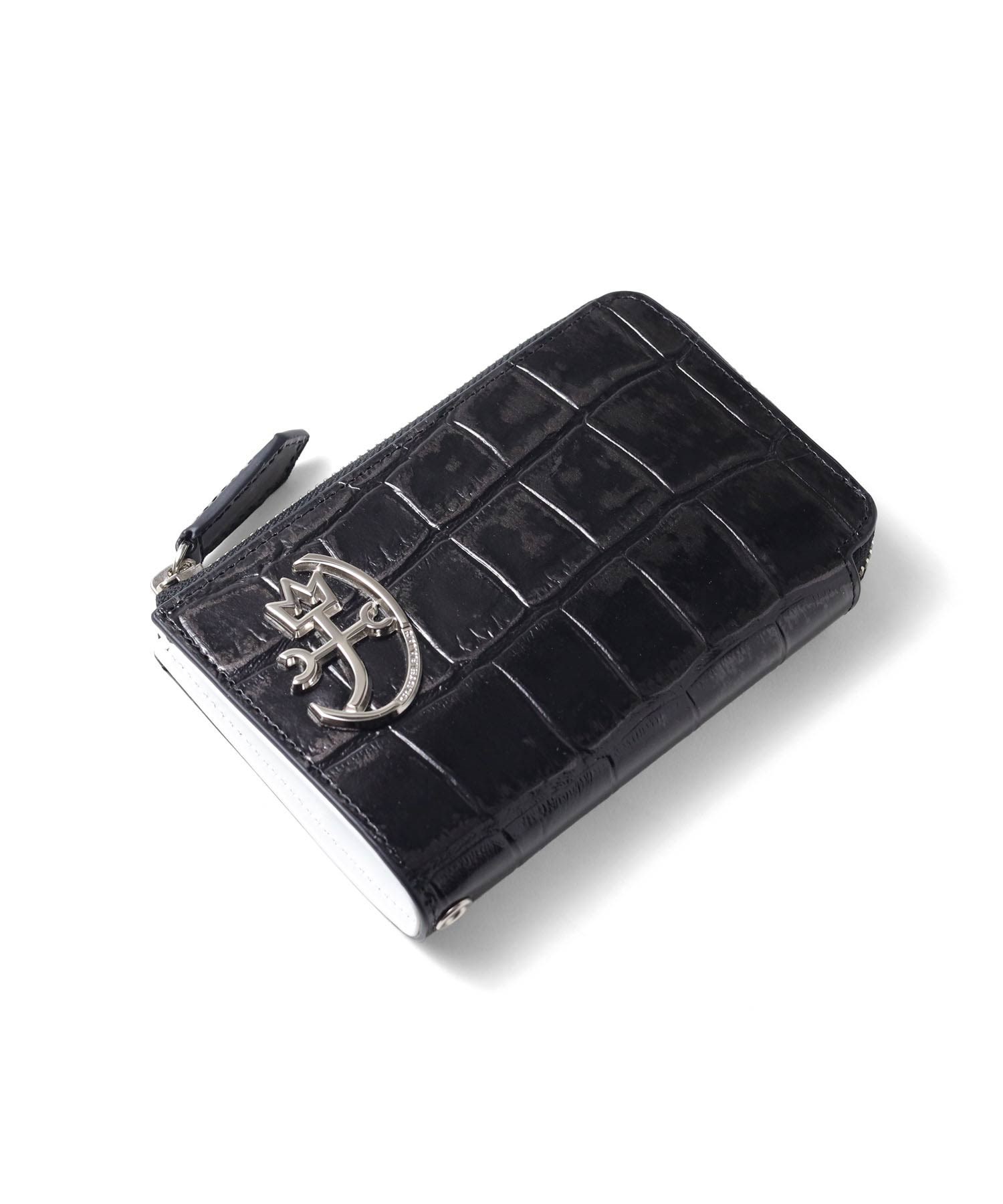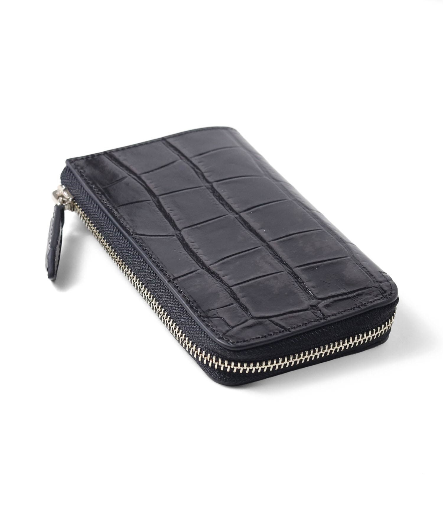 本体素材にはタンニンでしっかりと鞣されたコシのある牛革を使用しています。そこにメタル箔を貼り、クロコの型押しを施し、色を抜き取ることでビンテージ感あるデザインに仕上げました。
