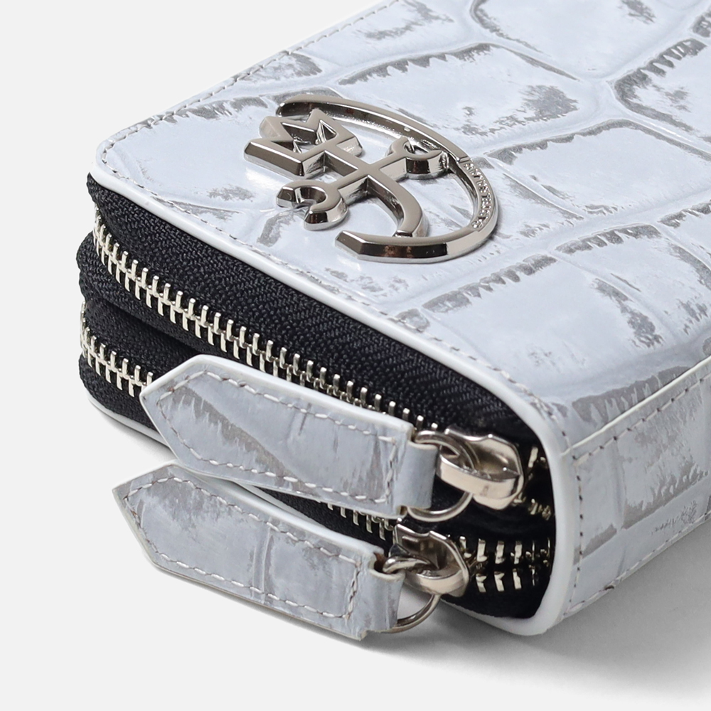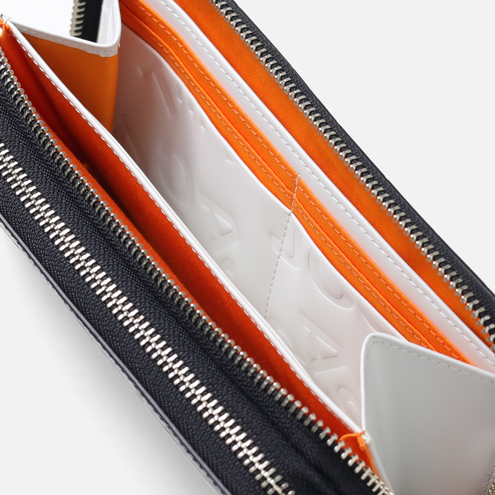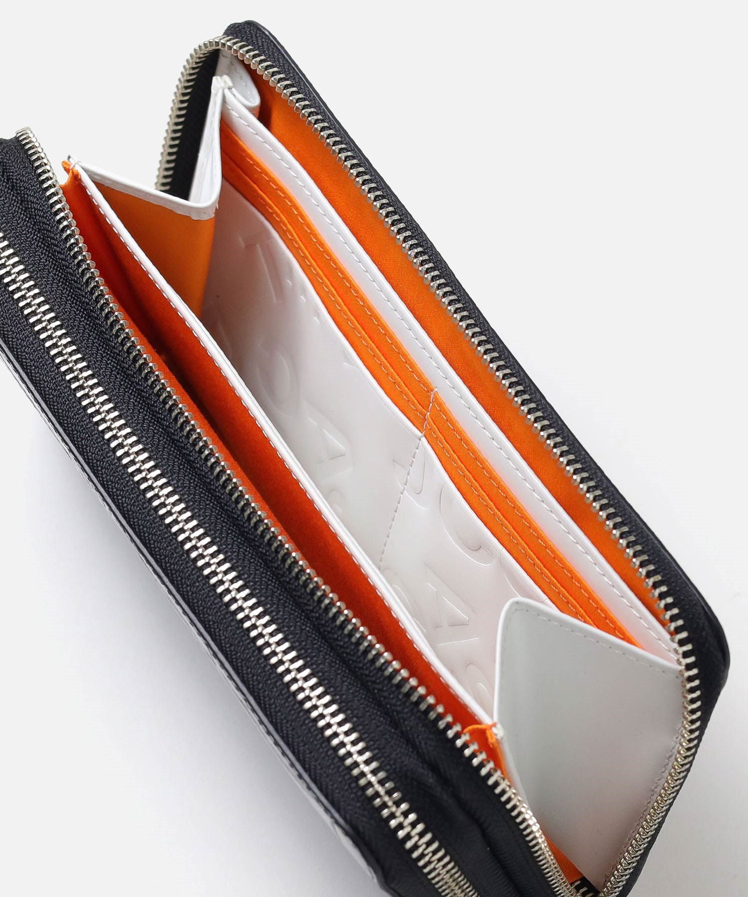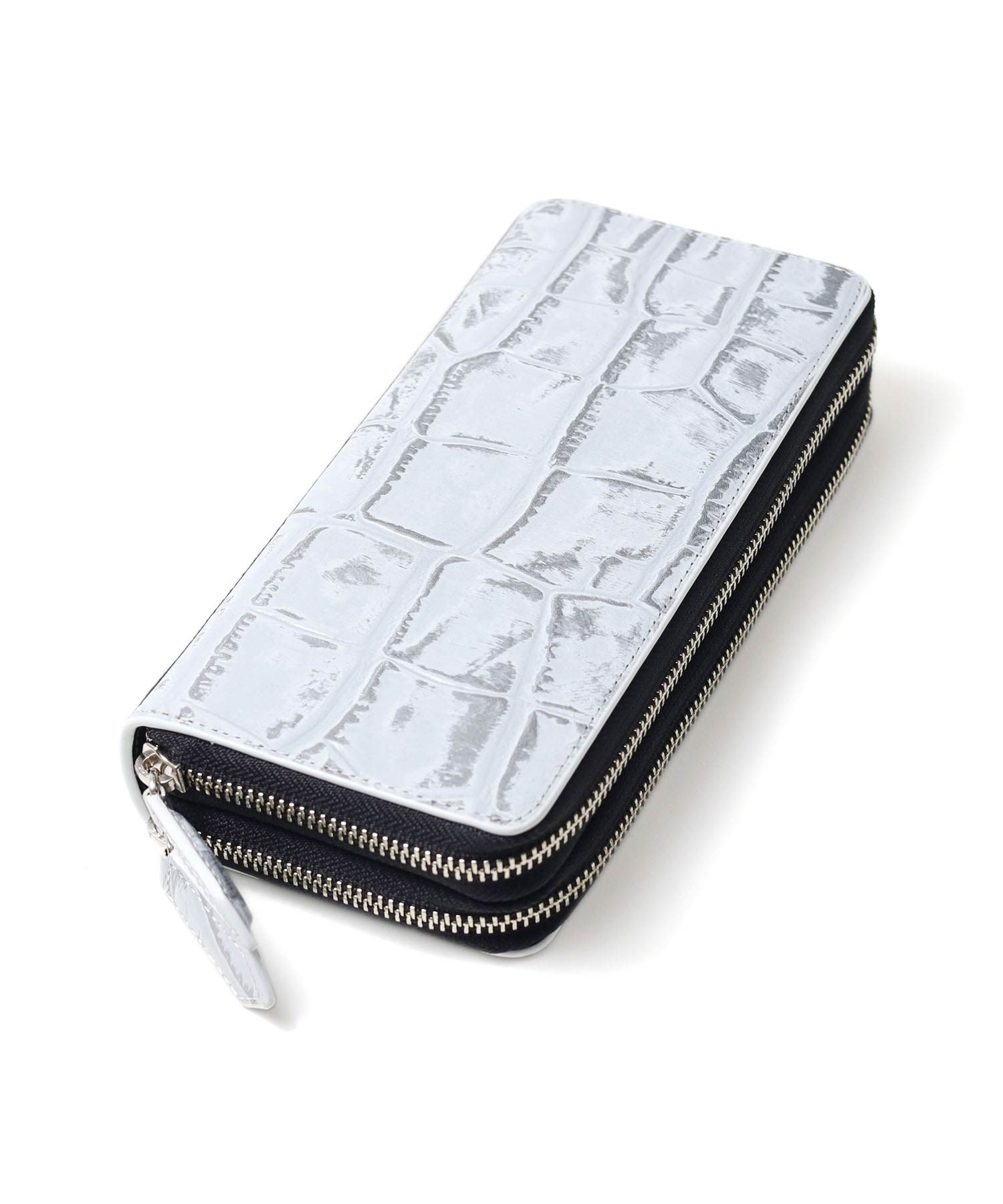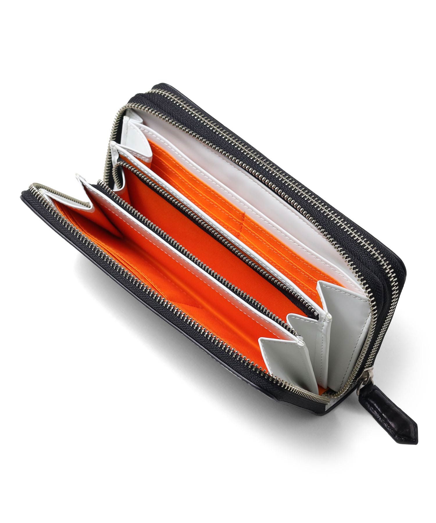 POPなイメージのあるカステルバジャックとは一味違う、ビンテージ物のような深みのある長財布です。ビンテージ風に仕上げるためにメタル箔を施したデザインがポイント。また、内装と外装は、モノトーンのカラーコンビに仕上げています。ダブルファスナータイプで、前室にはスマートフォンの収納が可能な大容量仕様になっています。