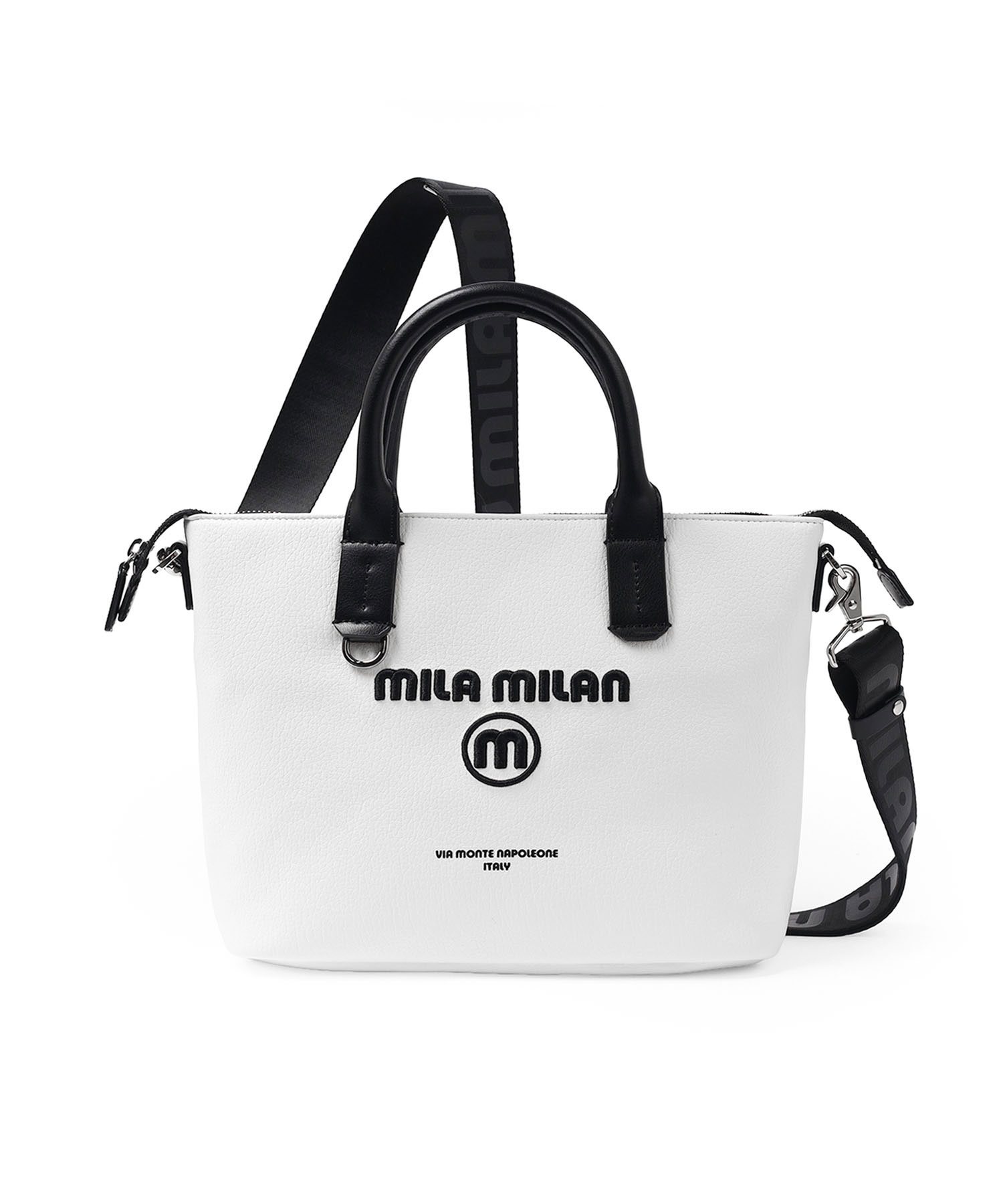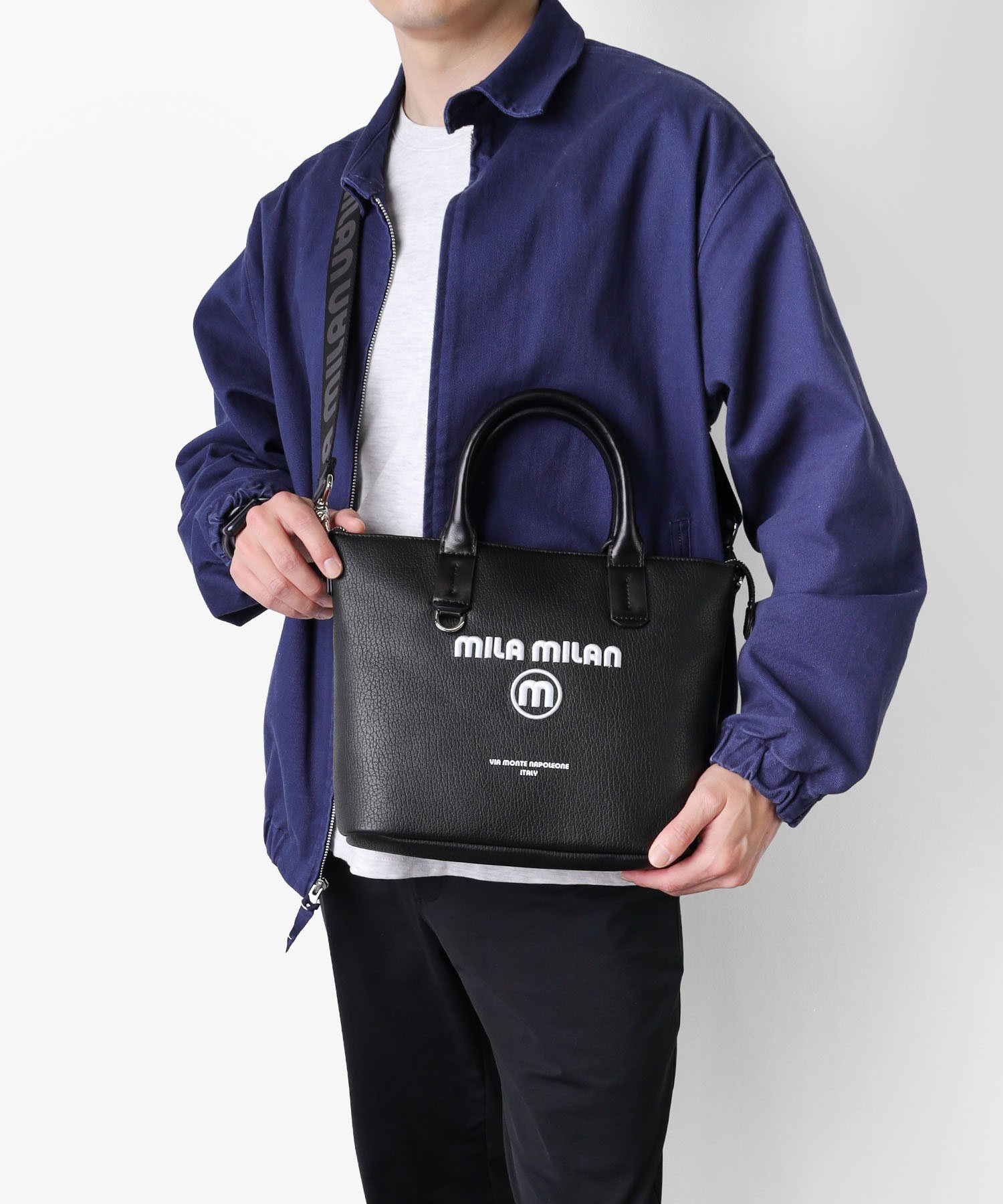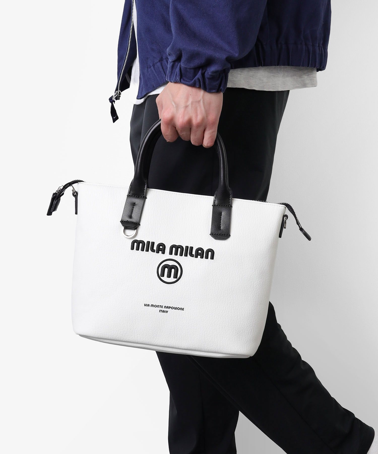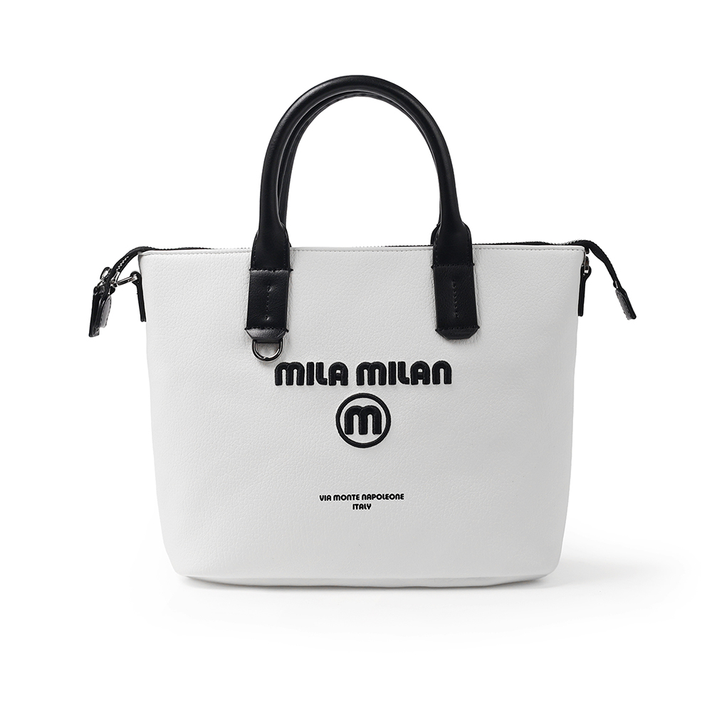 無駄を削ぎ落とした美しさを追求したモード感漂うミラ・ミランの2WAYミニトートバッグ。ショルダー紐の着脱が可能な2WAY仕様で、ミニマルなデザインに現代的な機能性をさりげなく落とし込みました。 遊ぶように仕事をする、しなやかな感性を持つ大人たちへ。ビジネスにも対応しながら、オンとオフの境界を軽やかに越え、日常に自然と溶け込みます。ユニセックスで使える、バランスの取れたフォルムとカラーリングも魅力です。 さりげない刺繍ロゴが、シンプルな中に程よい個性をプラス。主張しすぎないディテールが、持つ人のスタイルを引き立てます。