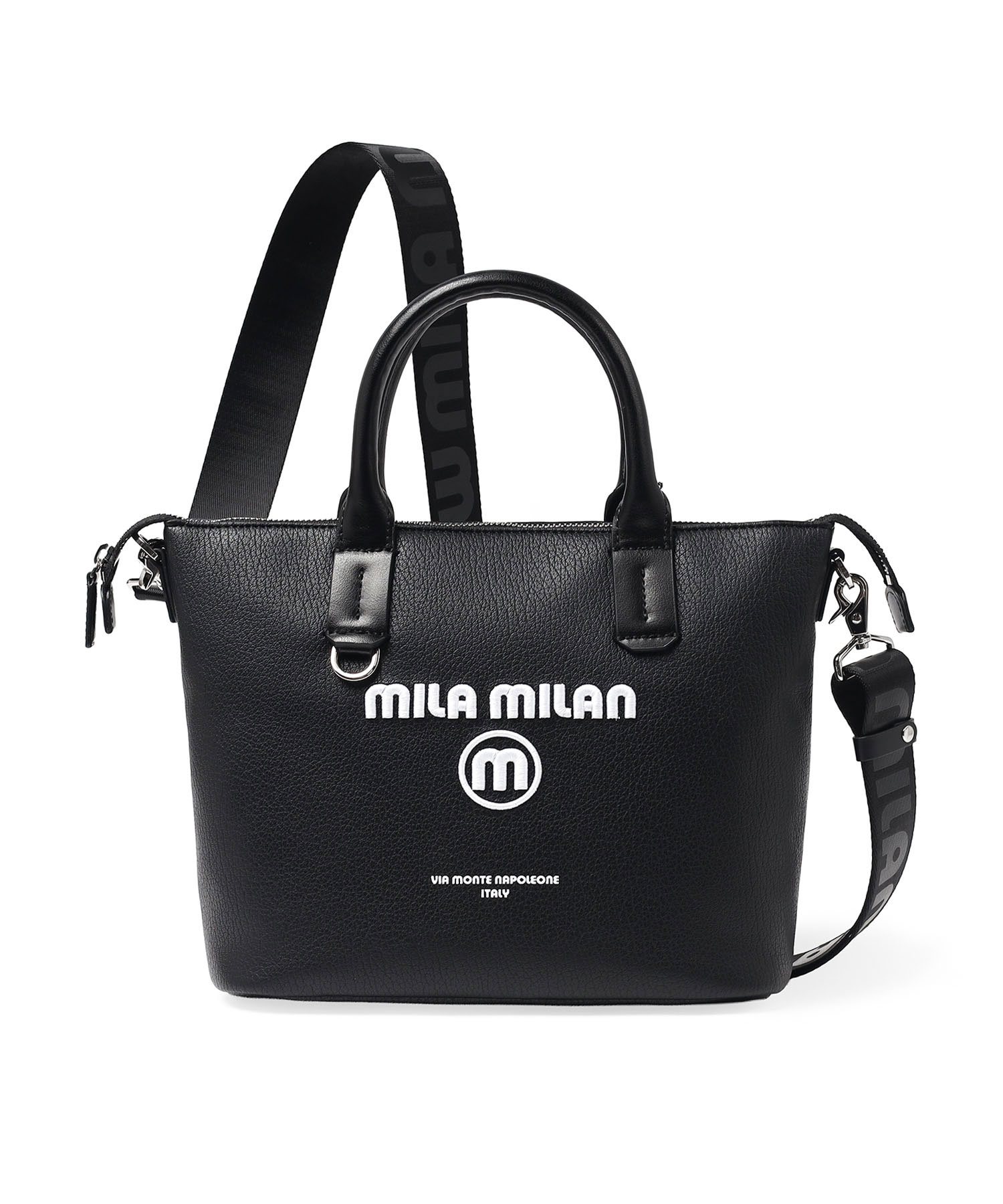 無駄を削ぎ落とした美しさを追求したモード感漂うミラ・ミランの2WAYミニトートバッグ。ショルダー紐の着脱が可能な2WAY仕様で、ミニマルなデザインに現代的な機能性をさりげなく落とし込みました。遊ぶように仕事をする、しなやかな感性を持つ大人たちへ。ビジネスにも対応しながら、オンとオフの境界を軽やかに越え、日常に自然と溶け込みます。さりげない刺繍ロゴがシンプルな中に程よい個性をプラスし、主張しすぎないディテールが持つ人のスタイルを引き立てます。