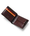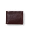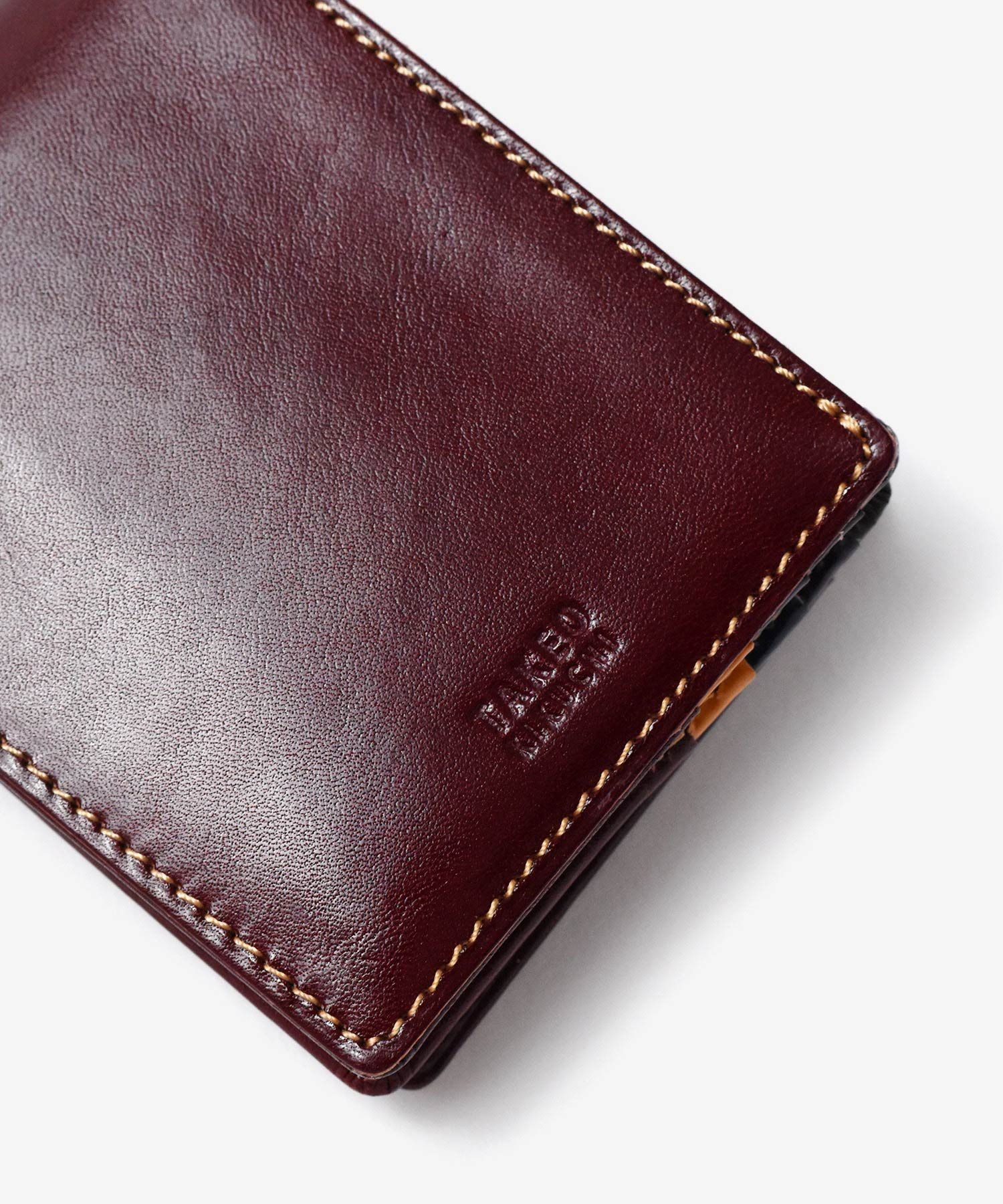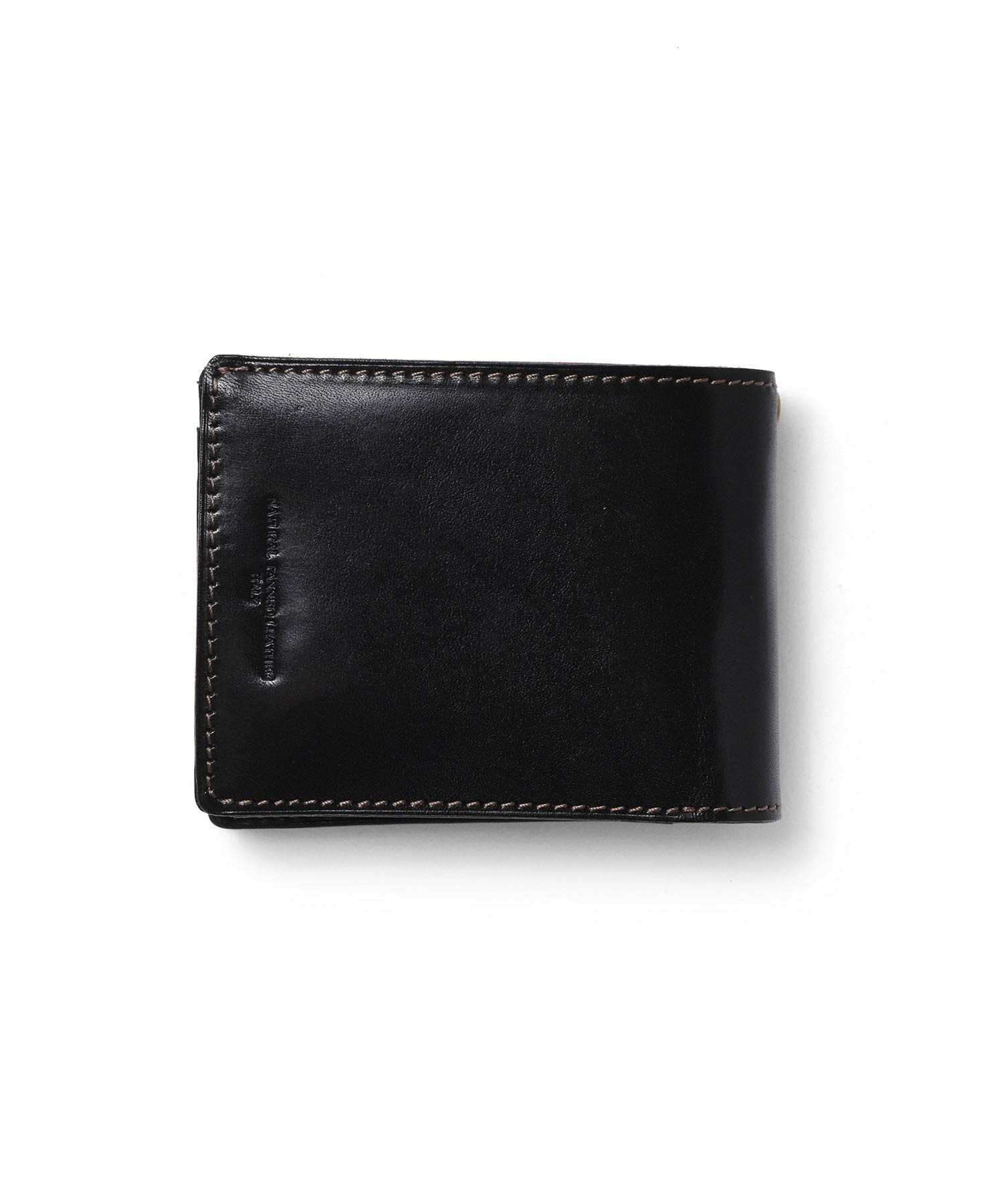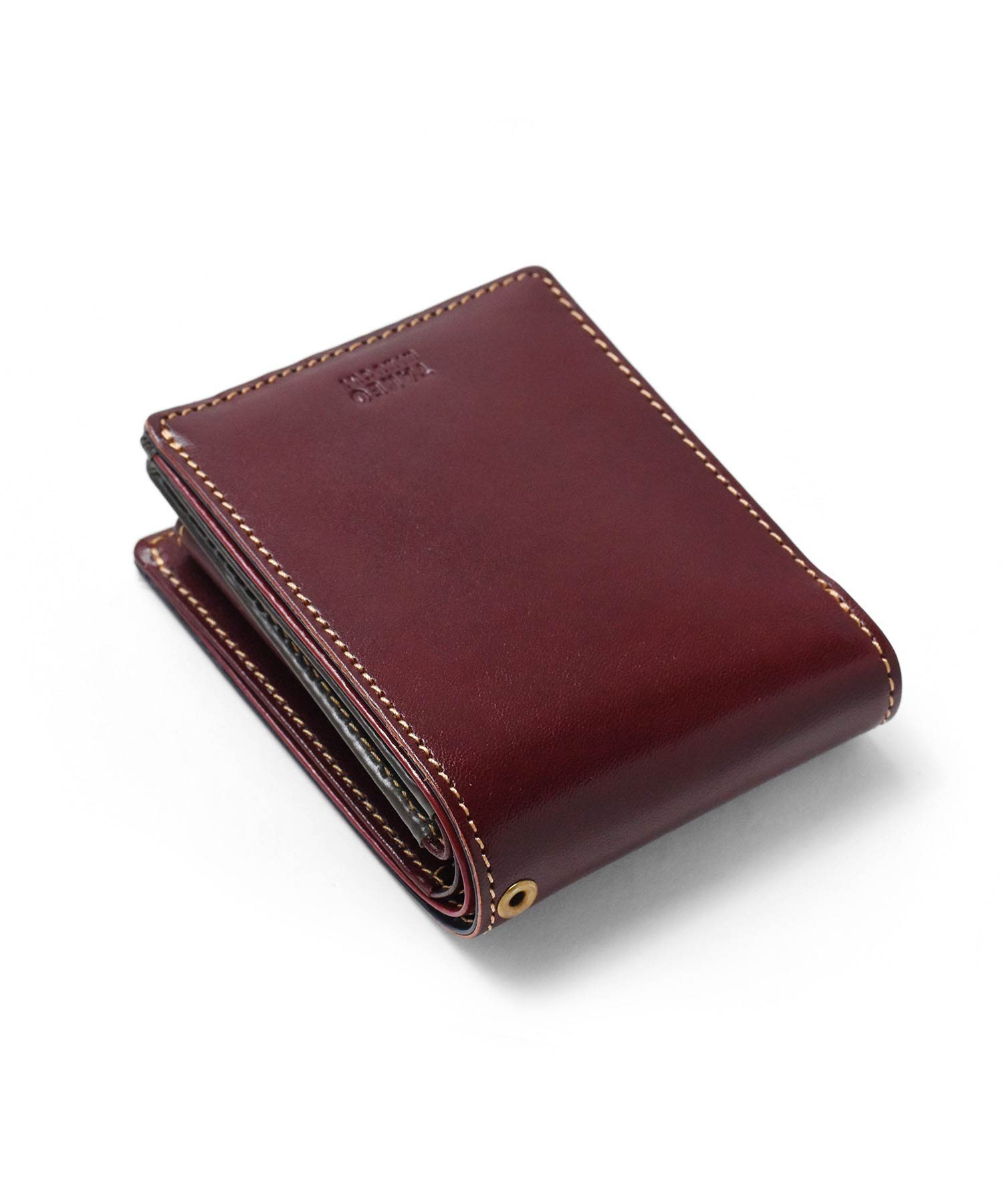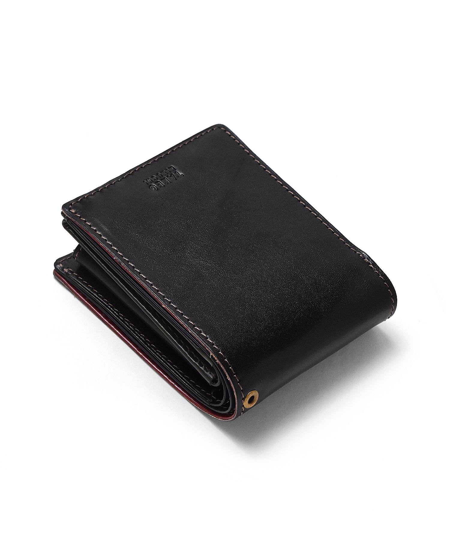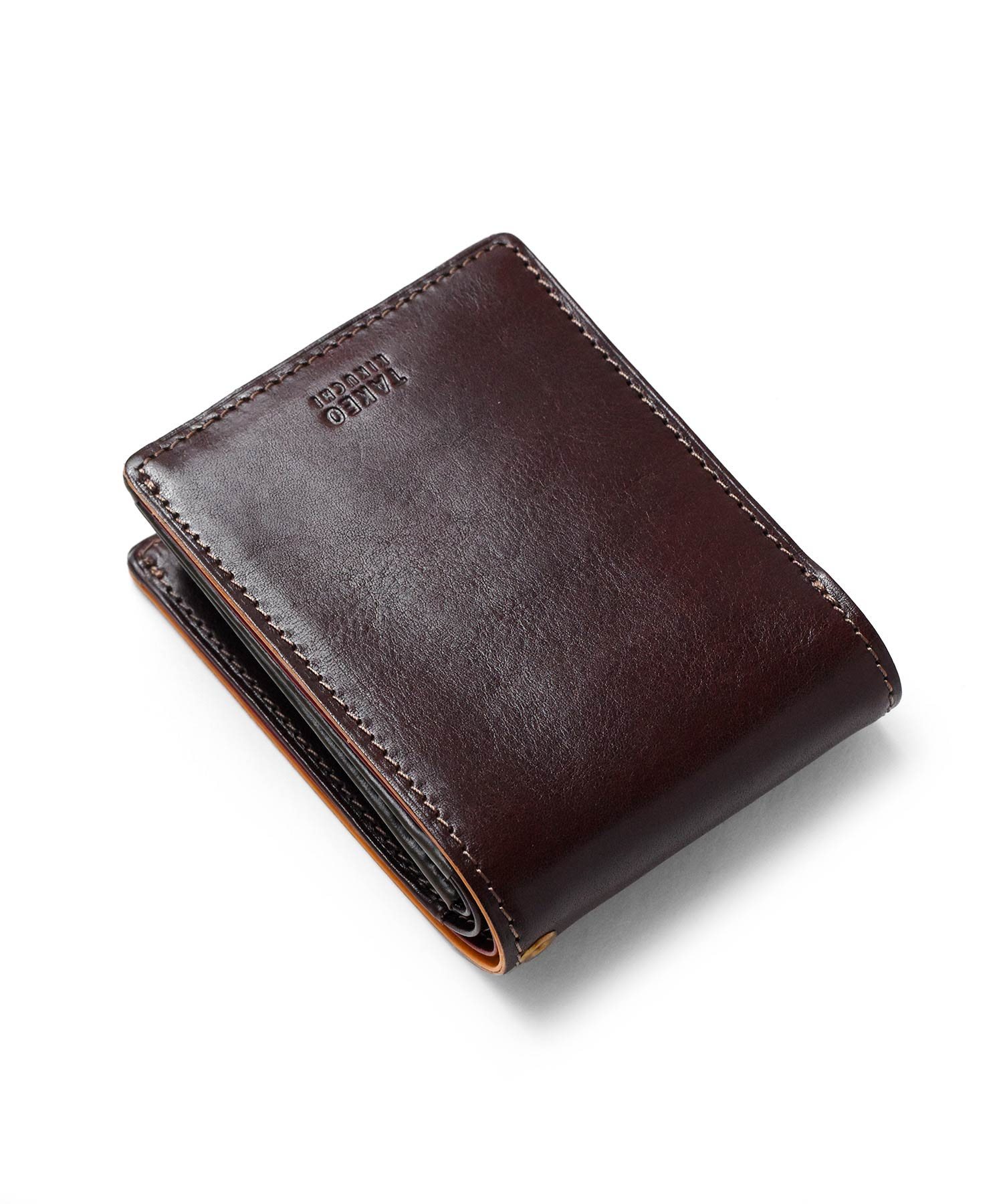 革の質感を重視したシンプルなフェイスと、カード段に配色を施したカラフルな内装とのギャップが特徴です。また、配色のカラーを使用したかがりステッチもさりげないポイントのタケオキクチの二つ折り財布です。中べら付きで、カード収納が豊富です。